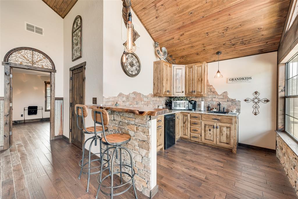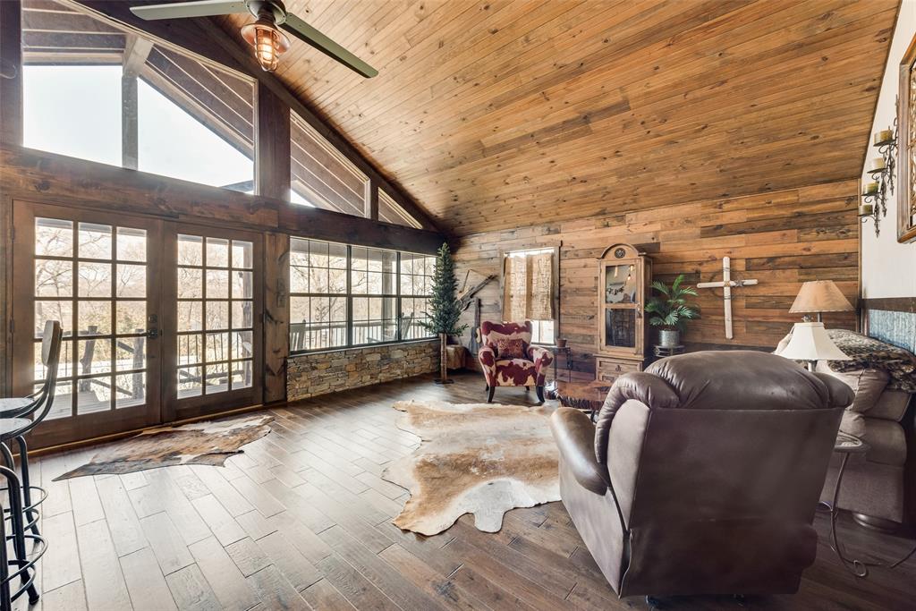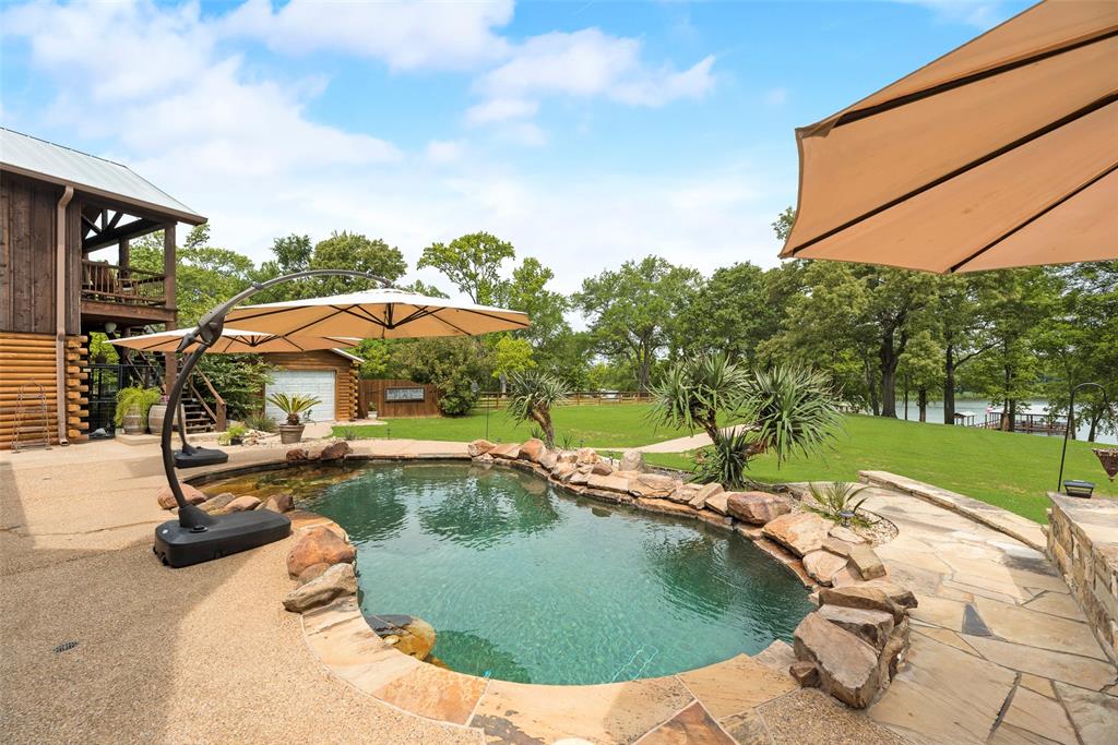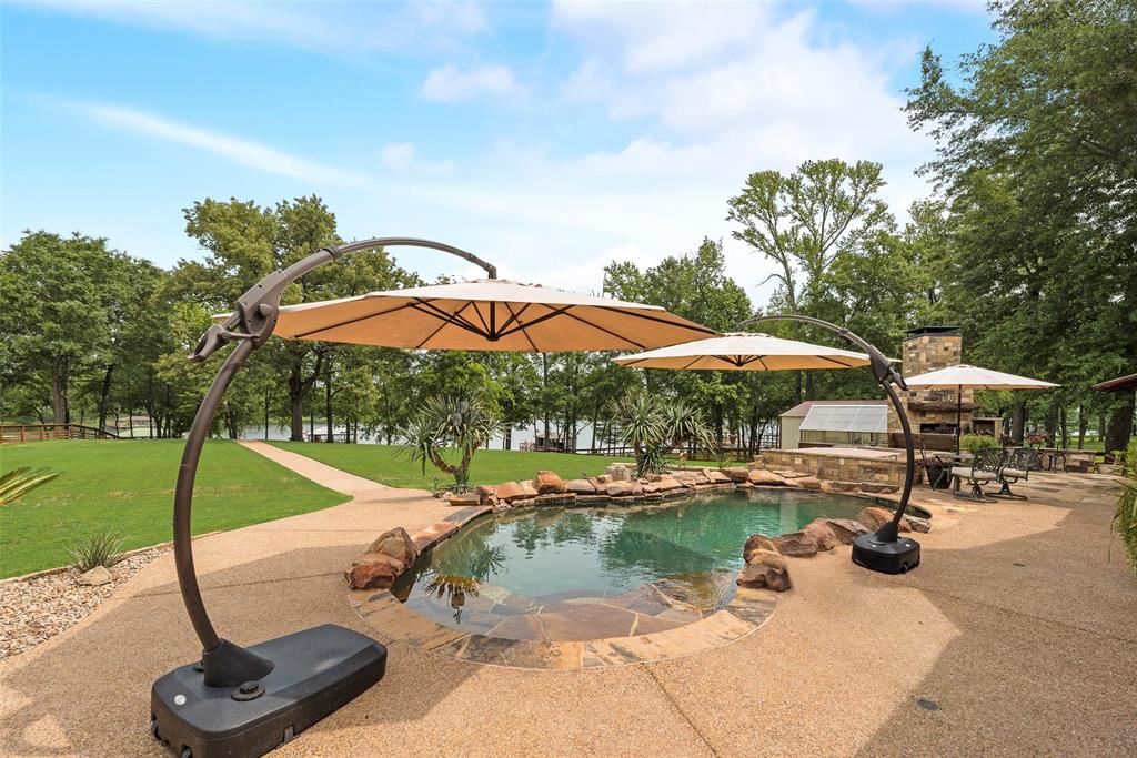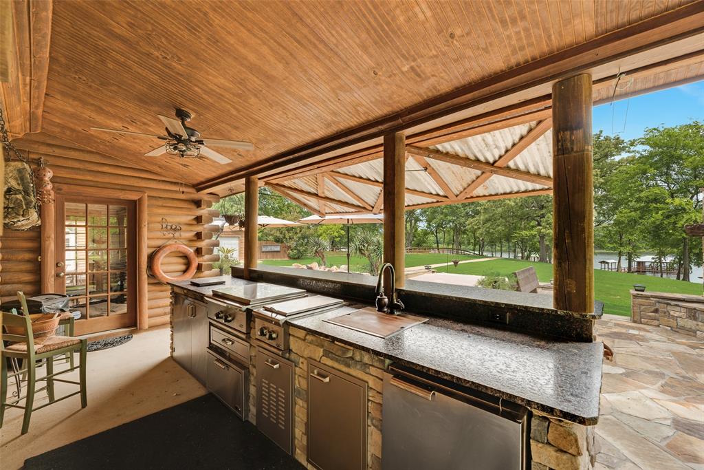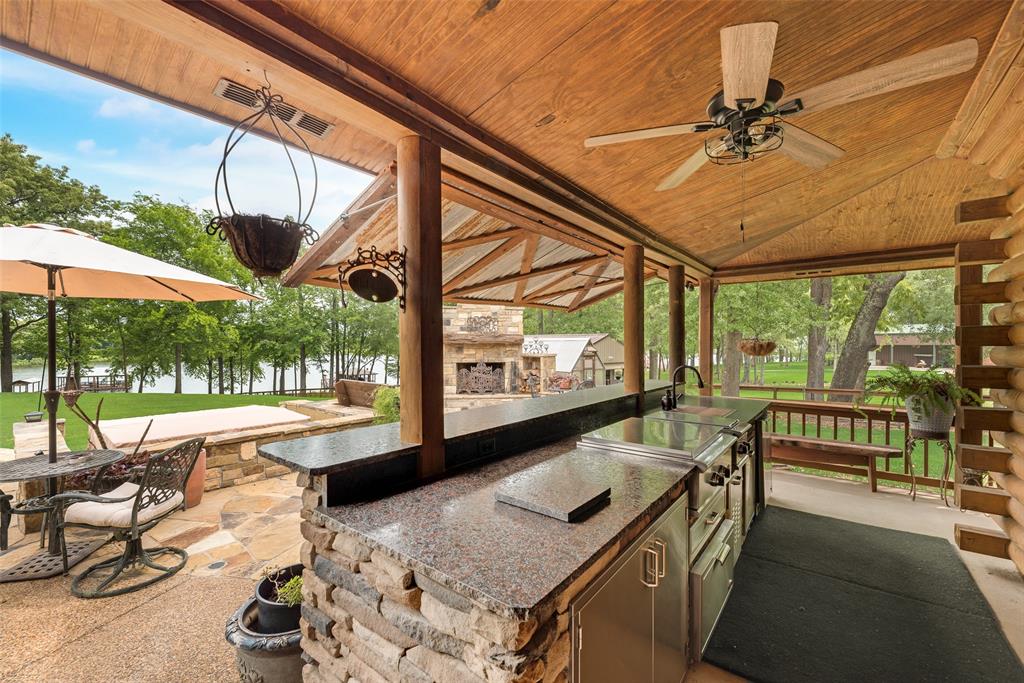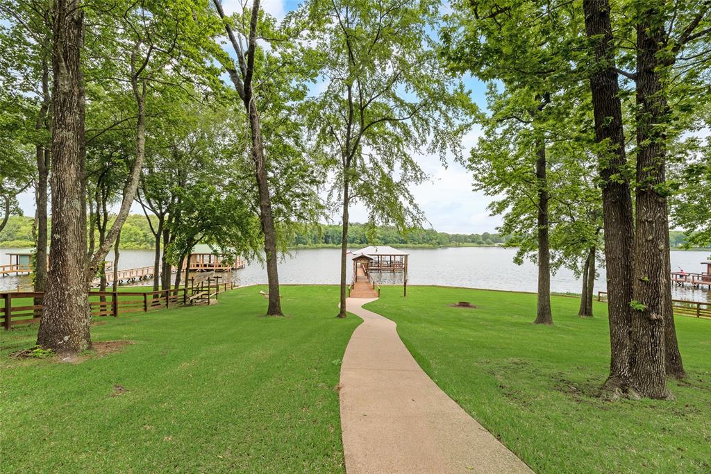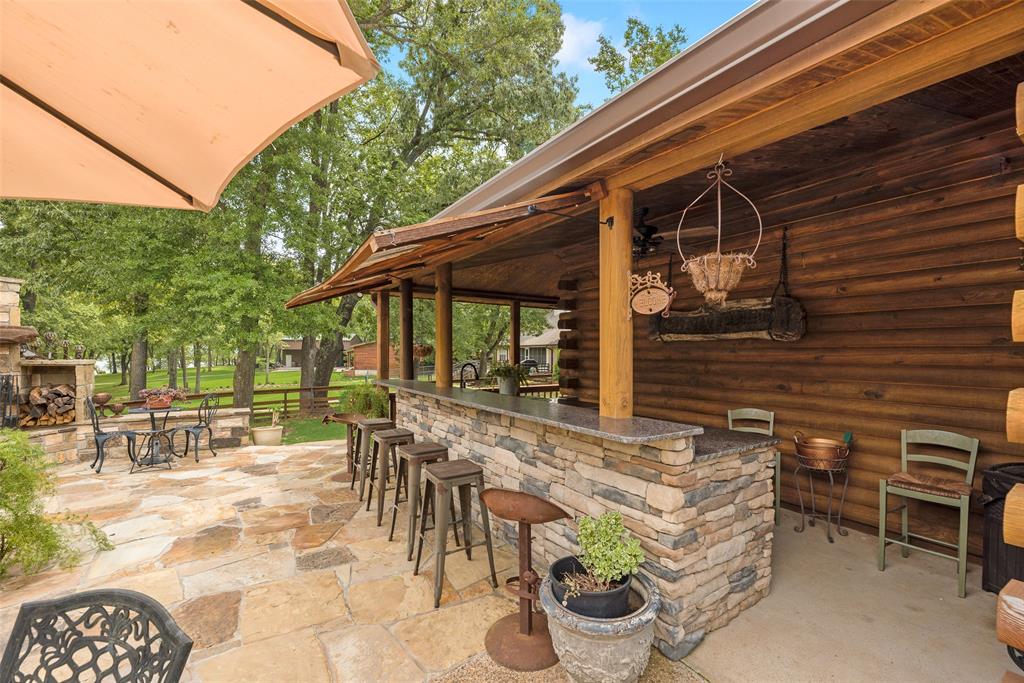 This luxury log cabin is on a deep channel, on one of the premier bass fishing lakes in Texas, Lake Fork. Sitting on 2 acres on the lake with a leaseback, just outside of Dallas; this property offers a vast amount of amenities to enjoy for any homeowner. This home has been tailored, to serve as a true escape from the city, and everyday life. As you enter through a customized electronic gate, some of the features of this property are: the amazing outdoor kitchen, that is perfect for an al fresco experience. The outdoor fireplace, which has plenty of seating, is ideal for entertaining. The slightly meandering walkway leads to an outdoor firepit fit for gatherings or roasting marshmallows. As you continue, to the upgraded dock, that is equipped with an outdoor sink and extra storage, you can sit right on the lake for the beautiful sunsets. The jewel of this property, is a separate 2-bed, 1-bath, and kitchen right above the garage that catches gorgeous lake views from the second floor. The architecture of this home is consistent with its craftsmanship inspiration throughout. The extended driveway entrance provides extra parking for vehicles and has a pickle ball court. The wrap around porch allows you to always enjoy the fresh air and being right on the lake. This property truly embodies the essence of a resort retreat. Every detail has gone into this property, thus making it one of a kind. Please see attached for upgrade list
