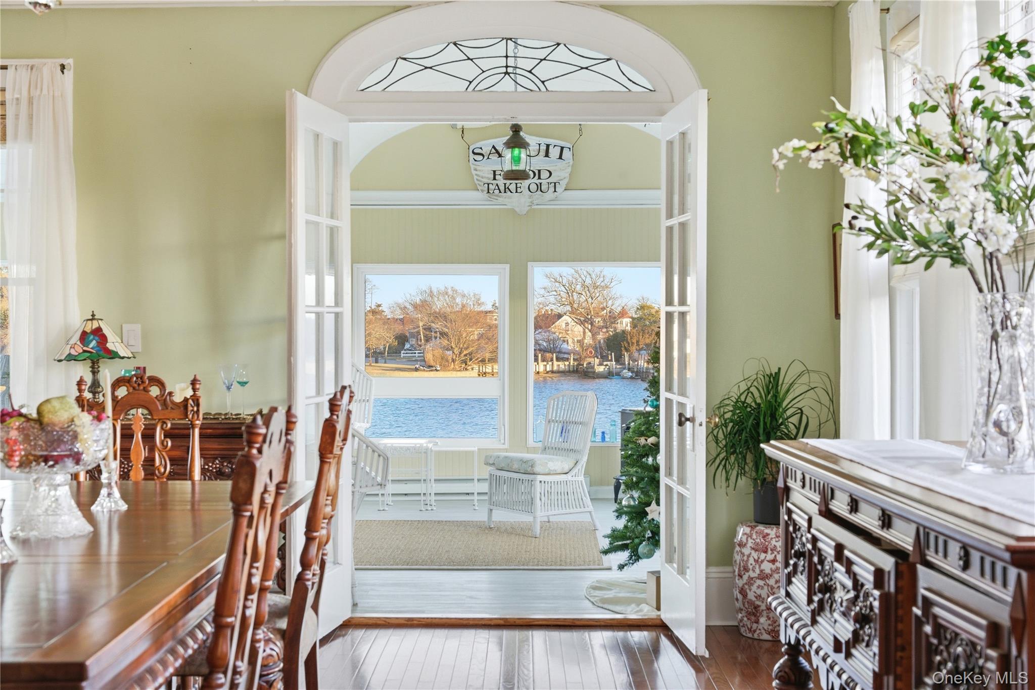 A rare opportunity to own a true riverfront classic in the heart of South Amityville Village. This iconic 1920s colonial was designed around its waterfront setting, offering uninterrupted river views from nearly every room and a lifestyle that feels immersive, serene, and timeless. The expansive riverfront deck replaces the traditional backyard, creating a front-row seat to daily boating activity, changing seasons, migrating birds, glowing morning light, and spectacular sunrises that unfold over the water, with the added benefit of docking your boat just steps from your door for spontaneous sunset cruises, weekend adventures, and effortless waterfront living. Nearly every window frames the river. All main living spaces and bedrooms enjoy waterfront views, with only one bathroom not facing the water, making this home feel as though it is floating above the river itself. The sunroom is a particularly special vantage point, offering panoramic water views that invite you to pause, breathe, and take it all in. Inside, the home’s historic character remains beautifully intact, with original leaded glass windows, coffered ceilings, built-in cabinetry, and a rare dual-sided original fireplace that anchors the main living areas. These details speak to the craftsmanship of a bygone era while creating warm, elegant spaces for modern living. A walk-around attic with full river views offers exceptional potential for future living space or retreat, making this property as flexible as it is charming. Featured in My Amityville by author Doug Robinson, this home is not just a residence, it is part of the village’s architectural and cultural story. Located on one of South Amityville’s most coveted waterfront blocks, it reflects the enduring appeal of a community where homes are cherished and passed through generations. Thoughtfully lifted and raised after Hurricane Sandy, the home offers added resilience, peace of mind, and a low flood premium, ensuring that its beauty and strength can be enjoyed for many years to come. This is more than a waterfront home. It is a front-row experience of river life, village history, and timeless design, all in one extraordinary setting.