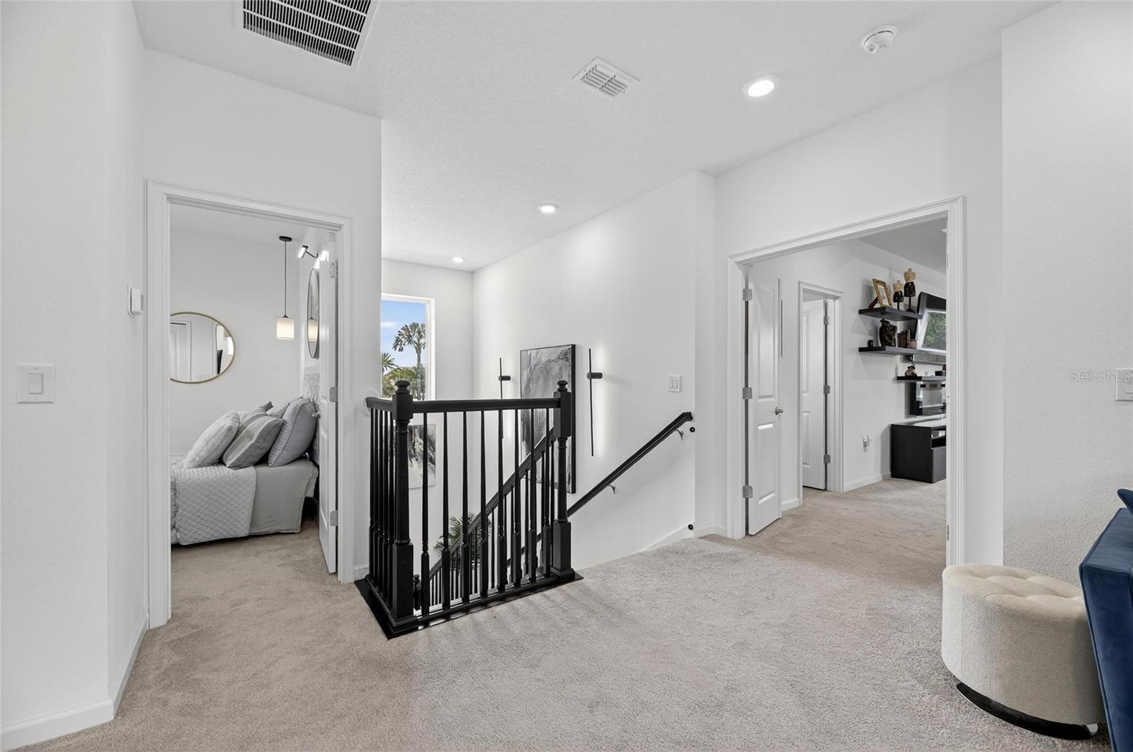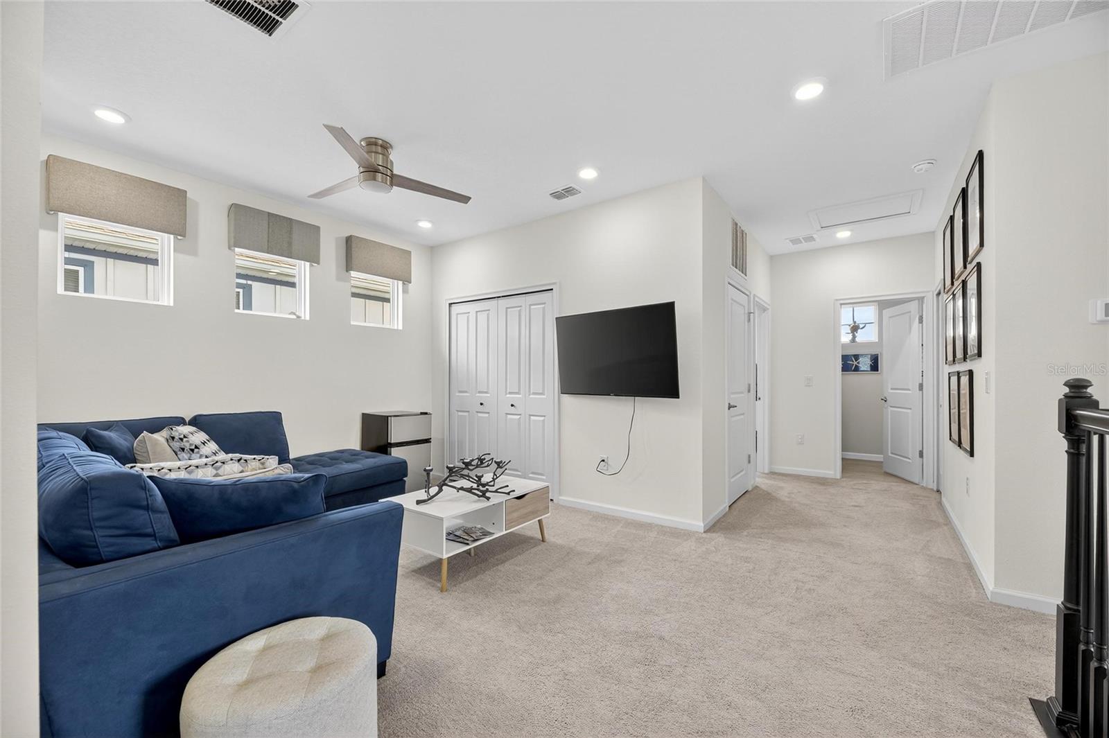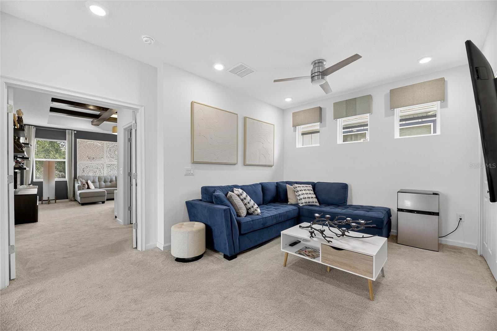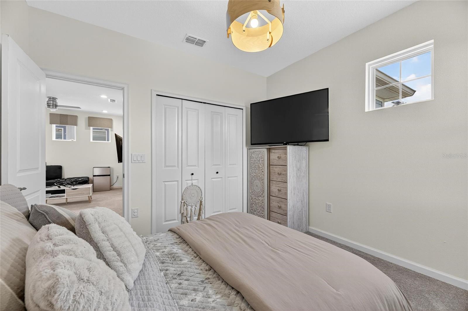 Upstairs, the spacious primary suite includes a coffered ceiling, statement wall, upgraded lighting, a massive walk-in closet, and an en-suite bath with dual vanities and a large walk-in shower with floor-to-ceiling tile. The second floor also includes a versatile loft, laundry room, and two additional bedrooms.