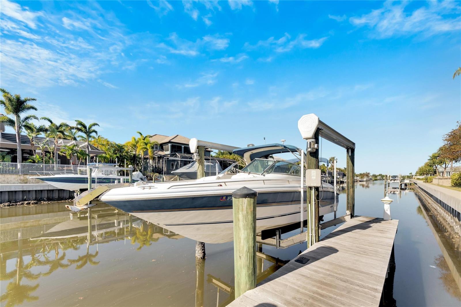 Outdoors, enjoy direct access to Tampa Bay from your private dock—complete with water, electric, and a 16,000 lb boat lift that accommodates up to a 50-ft vessel. The screened lanai and inviting front porch are perfect for entertaining or relaxing in style.
