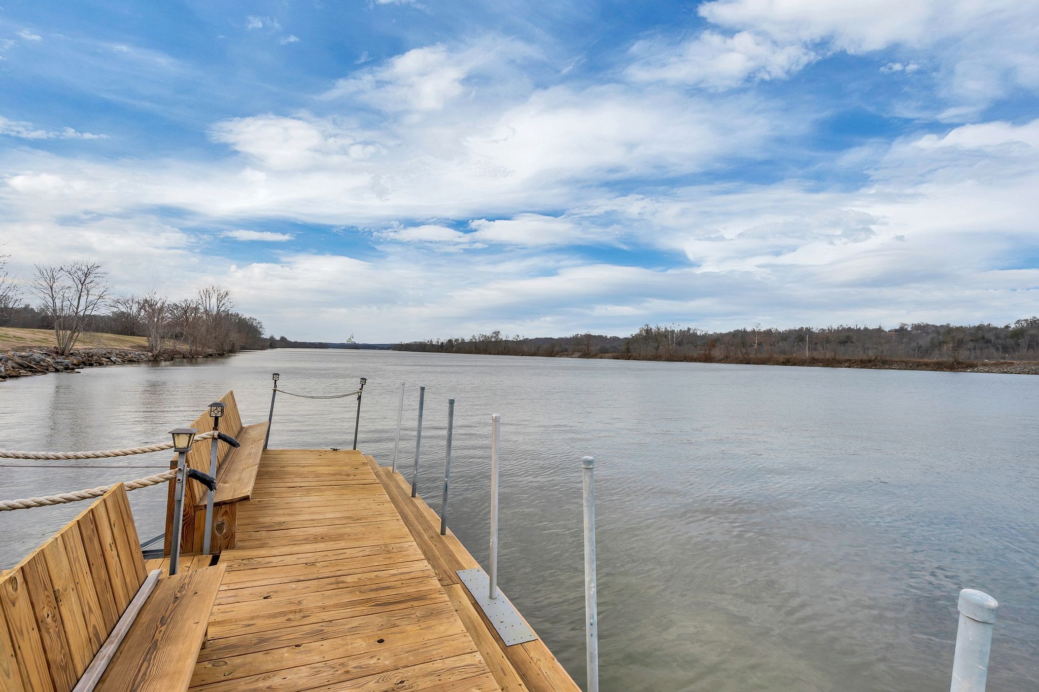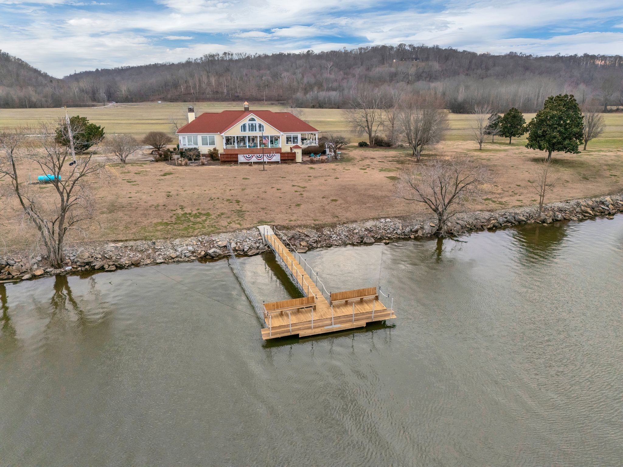 An extraordinary opportunity to own one of Tennessee’s most remarkable waterfront estates. Set along the Cumberland River, this rare offering includes a private residence with boat dock on an incredible 56 acres with river access and boat dock with built in seats on both sides (the Army Corp of Engineers approved the construction of MULTIPLE MORE BOAT DOCKS—an almost unheard-of combination. The property also features 2 courtyards, a swimming pool, fenced pool area and sits at one of the highest elevations in Cheatham County, offering exceptional privacy and breathtaking views. 3 car garage has storage space. Enjoy the perfect balance of seclusion and convenience, located less than 45 minutes from downtown Nashville and under 10 minutes to Walmart and everyday necessities. With ample land to grow and sell your own crops or simply enjoy wide-open space, this is truly a dream property. 2200 sq ft wrap around porch offers spectacular views. HUGE unfinished basement offers future flex space. Offered for the first time since being built, opportunities like this are exceedingly rare. Showings require 24-hour notice—act quickly, as properties of this caliber do not come available often. 1% lender credit with use of preferred lender.This sale includes 2 parcels - 049 064.02 AND 049 064.00 but EXCLUDING 9 acres on which the barn and bldg is on from the hwy to the water (this is the 9 acres to the right of the 2030 Lot - the plot lines drawn on the photo includes the nine acres and storage bldg/barn, but it will not be included in the sale). Showings by appointment only please.