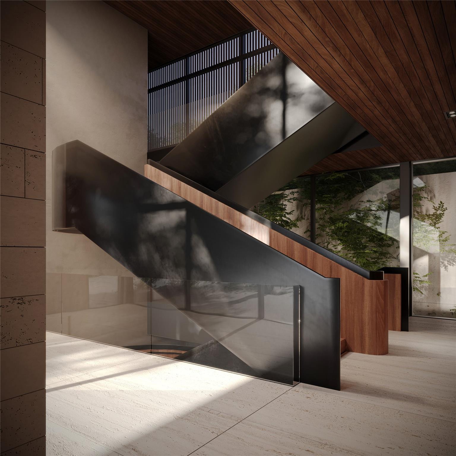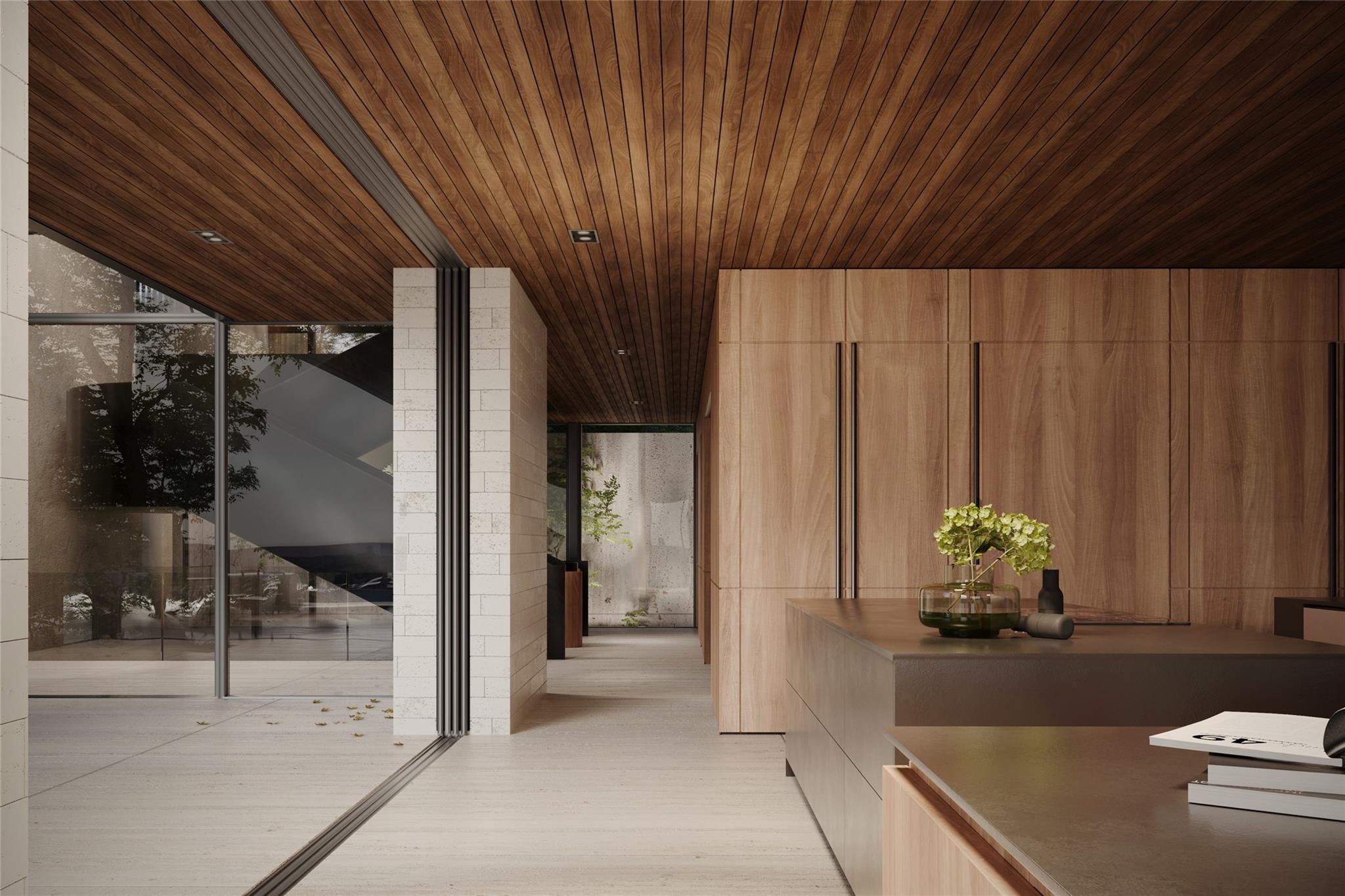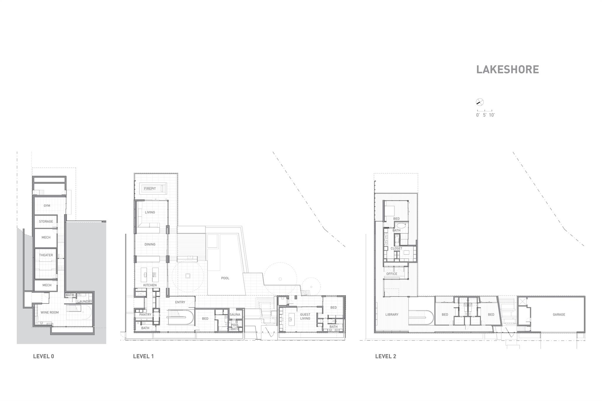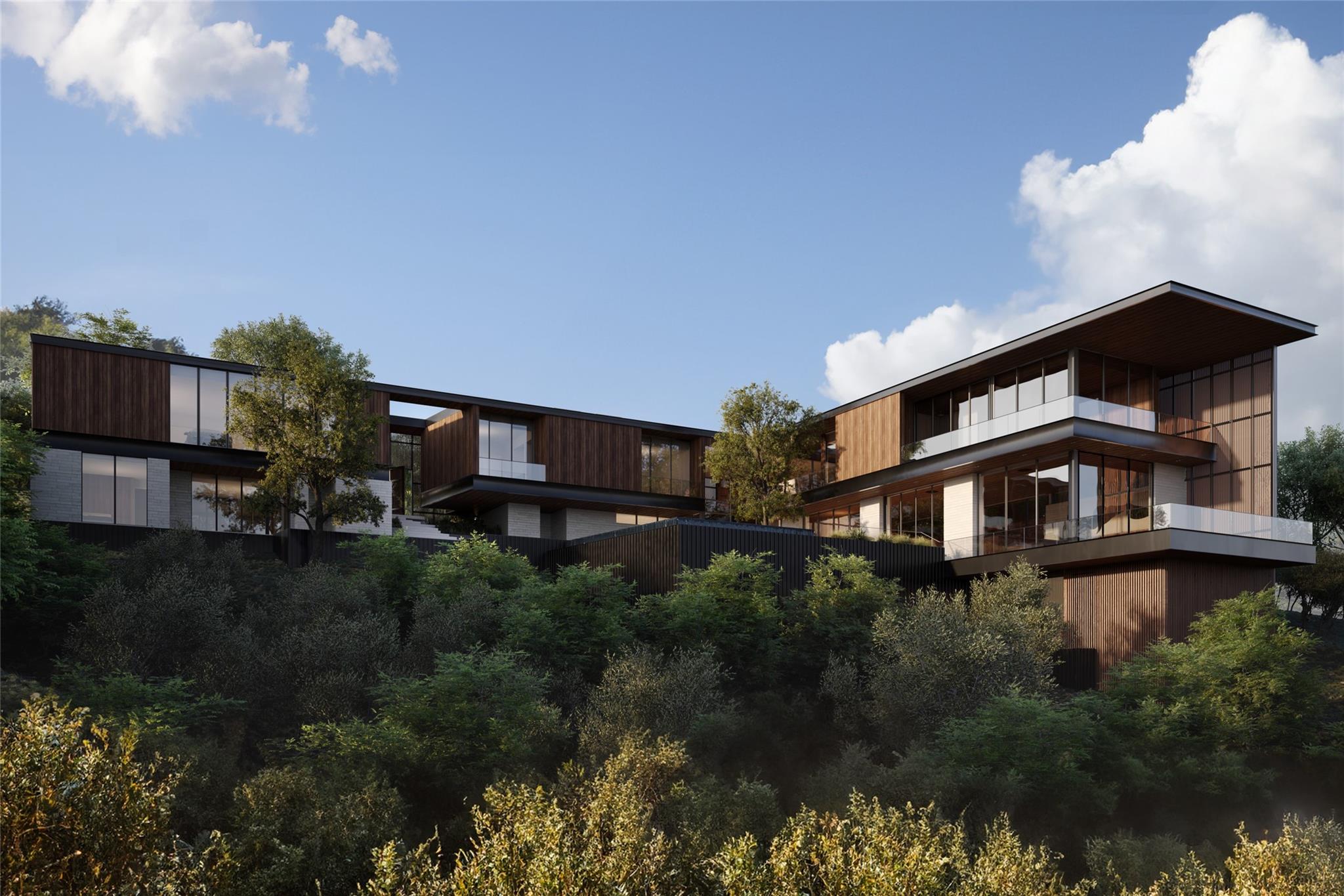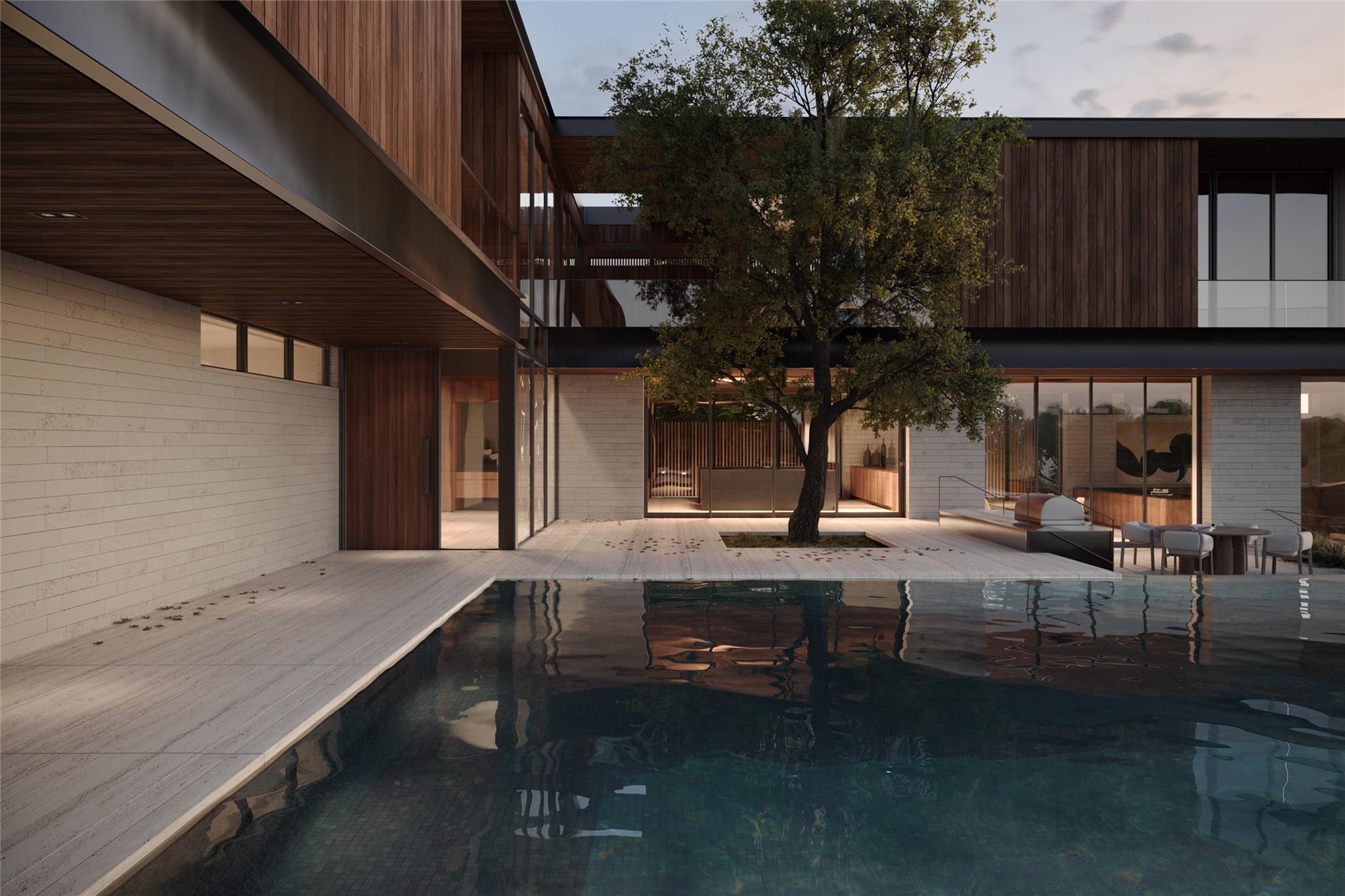 One of the very few true Lake Austin waterfront lots with sweeping, unobstructed views of the downtown Austin skyline, 2007 Lakeshore Drive pairs rare city vistas with a calm no-wake stretch of water—an extremely scarce pairing on the lake. Offered with a fully realized, permitted architectural vision by Matt Fajkus Architecture, the design anticipates an approximately 13,860 sq ft contemporary estate with ~10,327 sq ft of conditioned living space and ~3,533 sq ft of covered outdoor areas and four car garage. Embedded into the hillside, the proposed residence uses intersecting wood and stone volumes and long horizontal roof planes to unify interior and exterior and to choreograph movement down the slope, revealing the lake and skyline in a series of dramatic framed vistas. Conceived as a series of terraced pavilions stepping toward the water, the main residence is oriented to capture panoramic downtown and lake views from almost every principal room. The planned program includes five bedrooms, six full and two half baths, and a detached ~1,200 sq ft guest suite for guests or staff. An owners’ level spans a wrap-around balcony with outdoor shower, private meditation deck, library, and office, while a sculptural staircase connects split-level living, kitchen, and dining areas to expansive entertaining terraces. At the water’s edge, the existing “Filtered Frame Dock” by Matt Fajkus Architecture anchors the property as a completed, award-winning work of architecture. Engineered with a minimal footprint and a sculptural steel canopy, the dock’s upper-deck lounge is designed to frame the lake while modulating sun, shade, and breeze throughout the year. Recognized with multiple national and international design awards and featured in leading design publications, it is one of the most celebrated residential docks on Lake Austin.