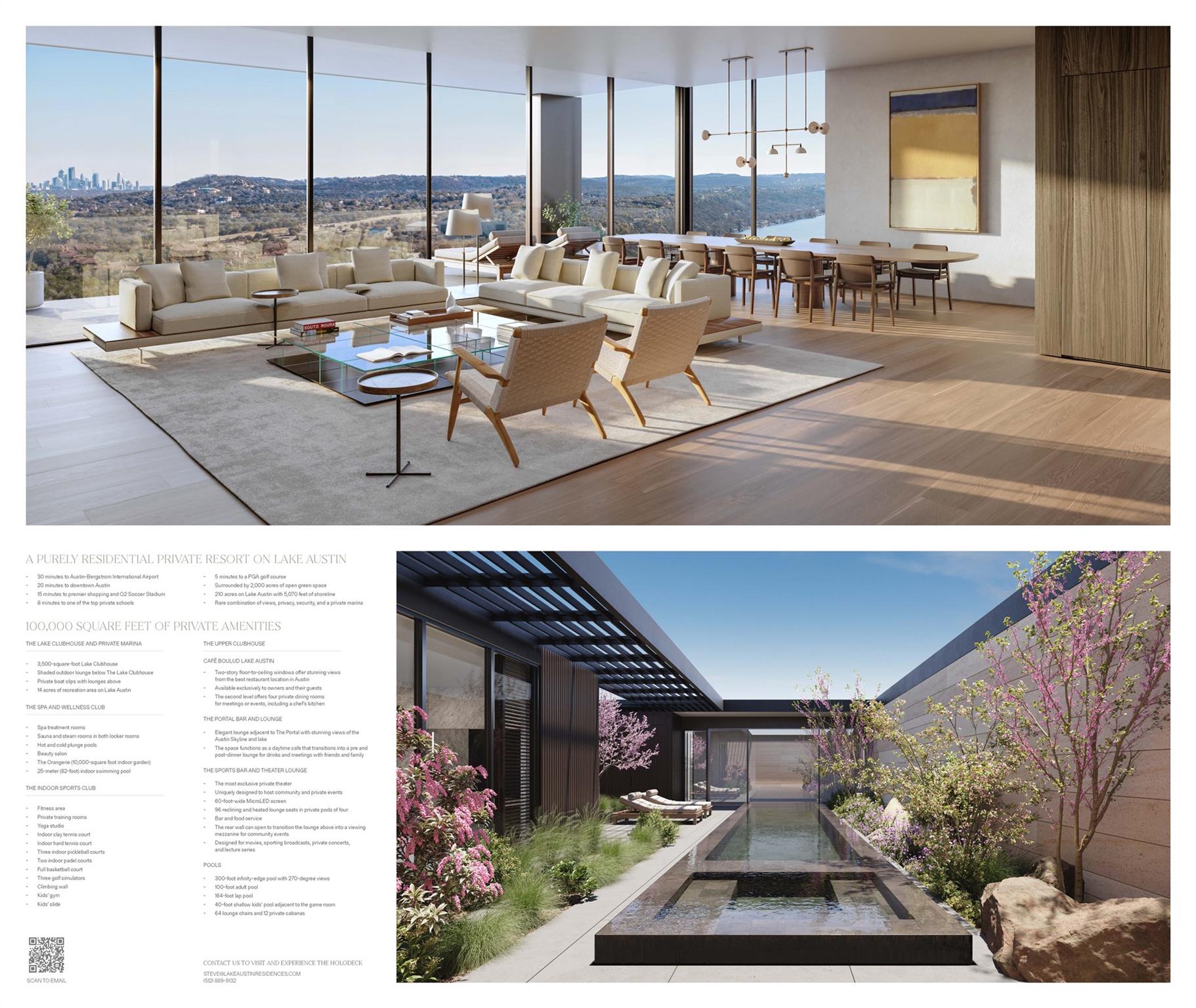 Four Seasons Lake Austin Secures Full Capitalization as of July 2025, planned vertical construction start Fall 2025. We are proud to present The Villas at Four Seasons Private Residences Lake Austin, an unparalleled offering of only 28 stand-alone residences, each poised with 180 panoramic views on the most coveted location along the serene shores of Lake Austin. These custom-designed single-family homes range from 5,600 to 6,000 interior square feet and are available completed starting at $12 million and up to $18 million depending on the location of the home site. The larger of the two floorplans, the Aspen Villa plan has been meticulously designed to include an extensive pool, expansive shaded terrace, private garage, elegant guest suite, wine room, valet closet, and more. Enjoy breathtaking panoramic views of the skyline, the iconic 360 bridge, lush ACC golf course, and the most serene Lake Austin views from your private sanctuary. The first of these exceptional estates to be built will be delivered by the end of 2026, meticulously crafted by one of Austin’s most renowned and respected builders. Tax and assessed values are estimates for illustration purposes only. All figures should be independently verified.