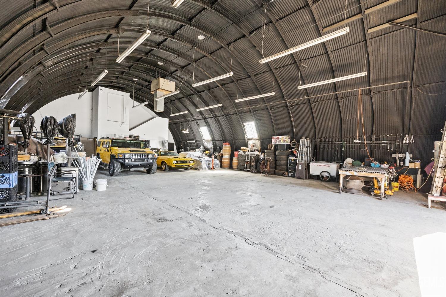 Introducing a one-of-a-kind commercial building that's sure to impress! The large 2 story building has lots of store front frontage and is attached to a steel arch quonset hut with a power rolling steel door, making it perfect for manufacturing ,storage space and a banquet hall for events, on a large lot. The front part of this property features 2 floors, with office suites, and 4 bathrooms, making it an ideal investment for entrepreneurs and business owners alike. Whether you're looking to establish a new business venture, expand your existing operations, or simply invest in a prime commercial property, this building has everything you need to succeed. And that's not all - this property also includes 3 additional parcels, two vacant lots, all of the parcels are zoned M-1 and a 2 bed/1 bath house, providing even more endless possibilities and opportunities for development, expansion, truck parking and rental income.