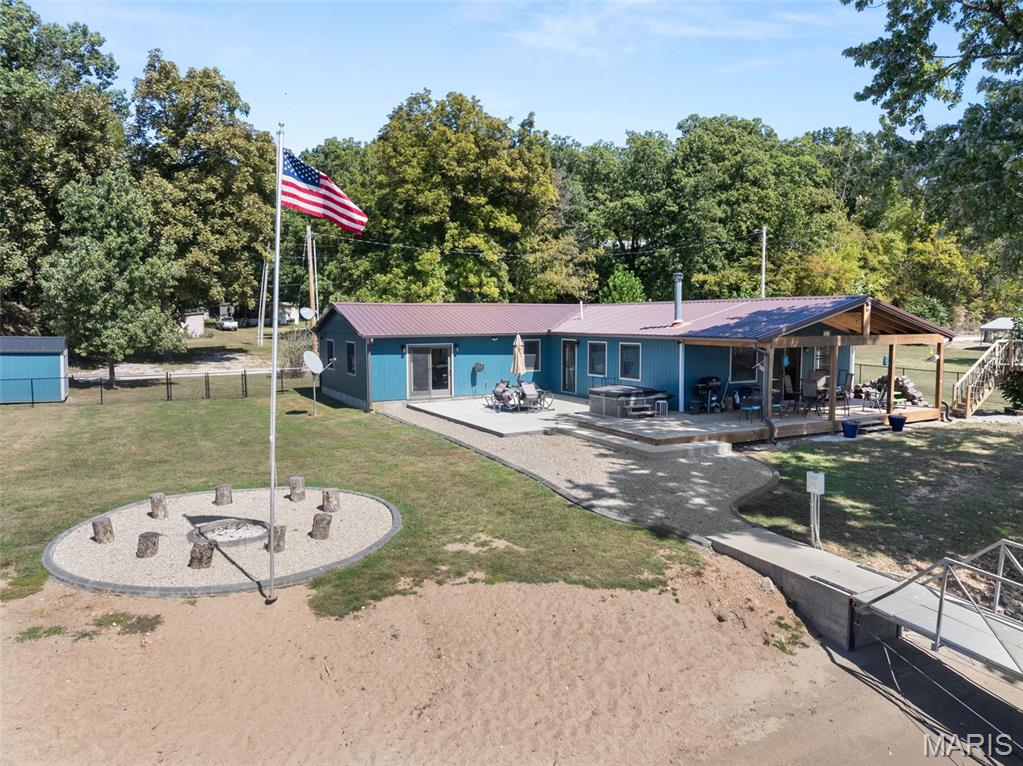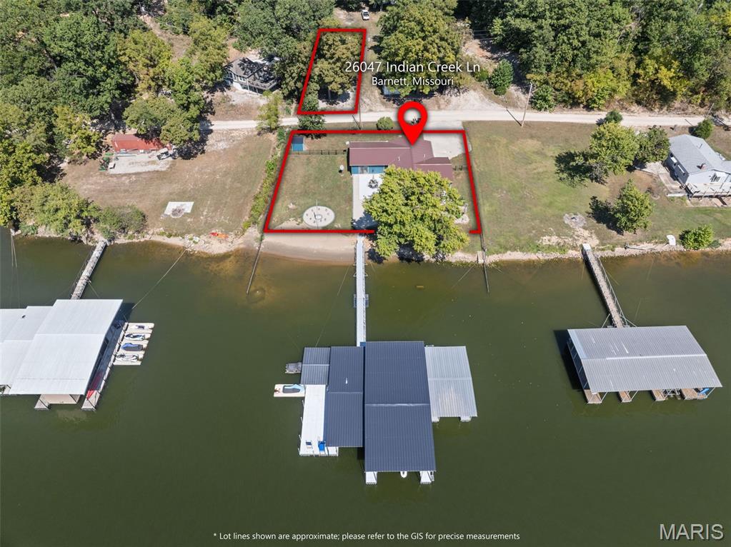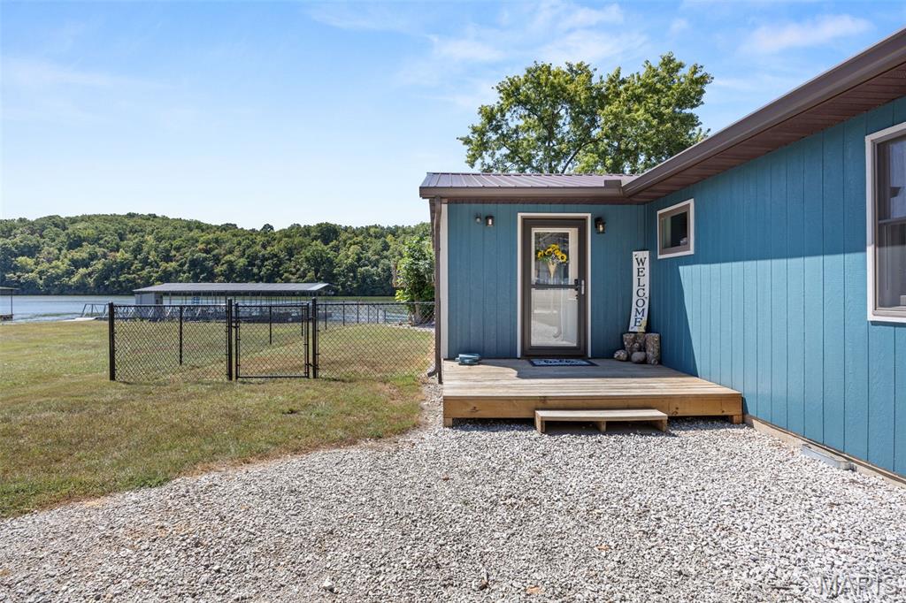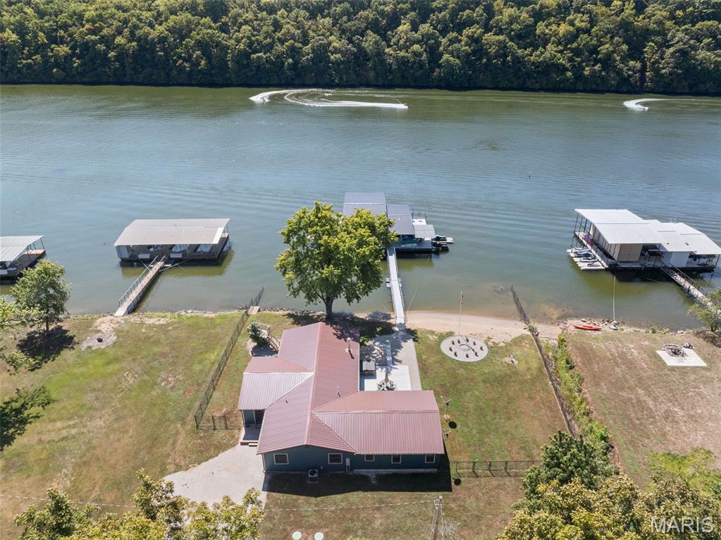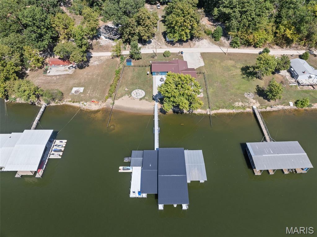 LAKEFRONT HOME on a FLAT LOT in Barnett,MM6-Gravois Arm! Welcome to your dream lake retreat! This 3-bed, 2-bath ranch home is brand new from the foundation up in 2020 & is true 1-level living w/ all the luxury features of new construction. This property is a rare gem on a gentle lot w/ over 100 feet of shoreline. Step inside to find an open-concept layout w/ vaulted ceilings, rustic wood beam accents, & a cozy stone fireplace. The heart of the home is the stunning kitchen, featuring custom cabinetry w/ crown molding, soft-close drawers & doors, stainless steel appliances, & a large center island. The outdoor living space is a true oasis w/ a hot tub, fire pit, sandy beach, Pelican Perch tree house, & fenced yard. The incredible 3-well dock includes: 18x50 slip, 12x30 slip, 10x28 slip, 2 PWC lifts, Wet steps, high-dive platform, & a spacious swim area. Additional highlights include: Metal roof, Covered & open concrete patios, & Bonus second-tier lot w/ plenty of space to build a garage. Just a short boat ride to Coconuts & Jolly Rogers, this location offers the perfect mix of tranquility & convenience. Clean, modern, & move-in ready – this is lake living at its finest.