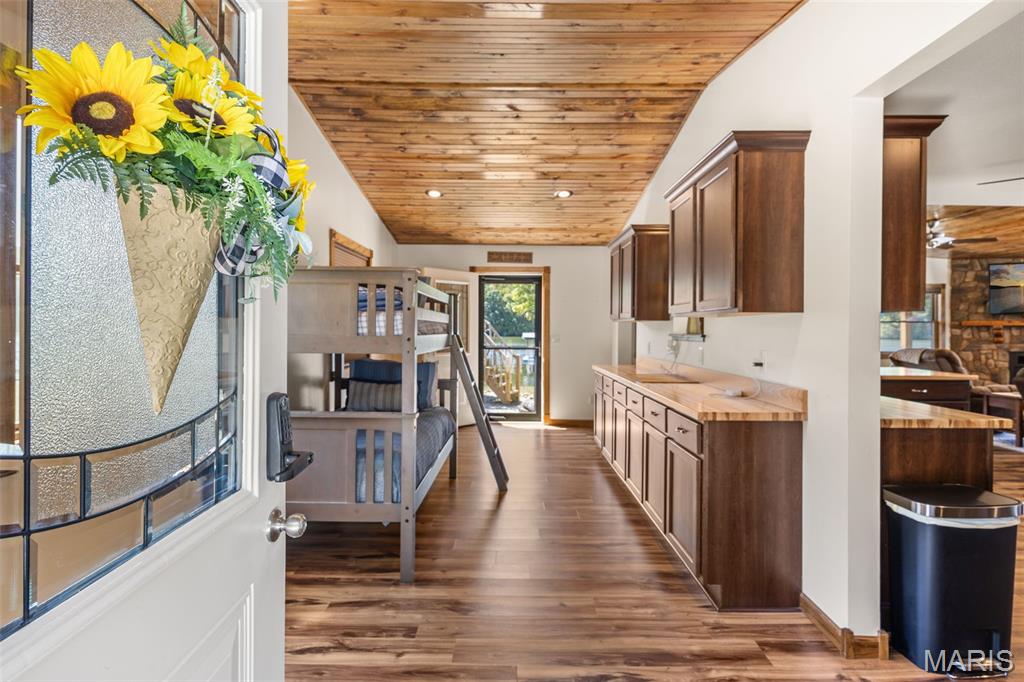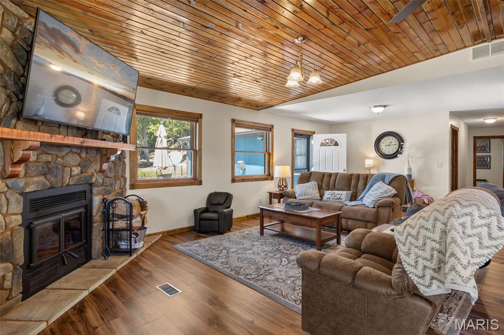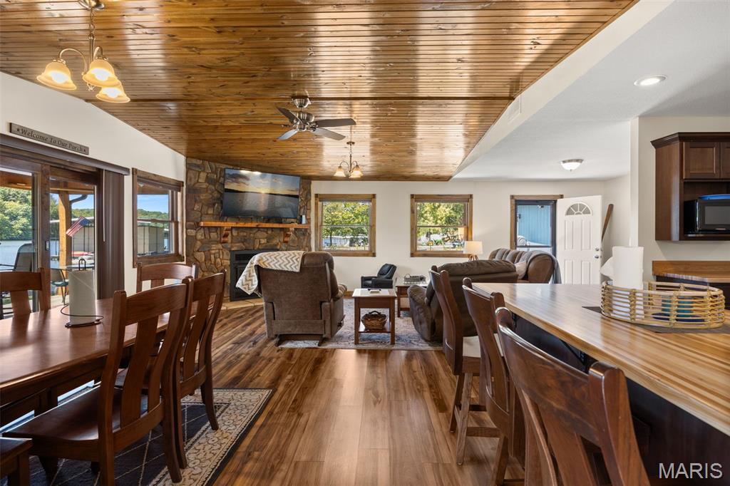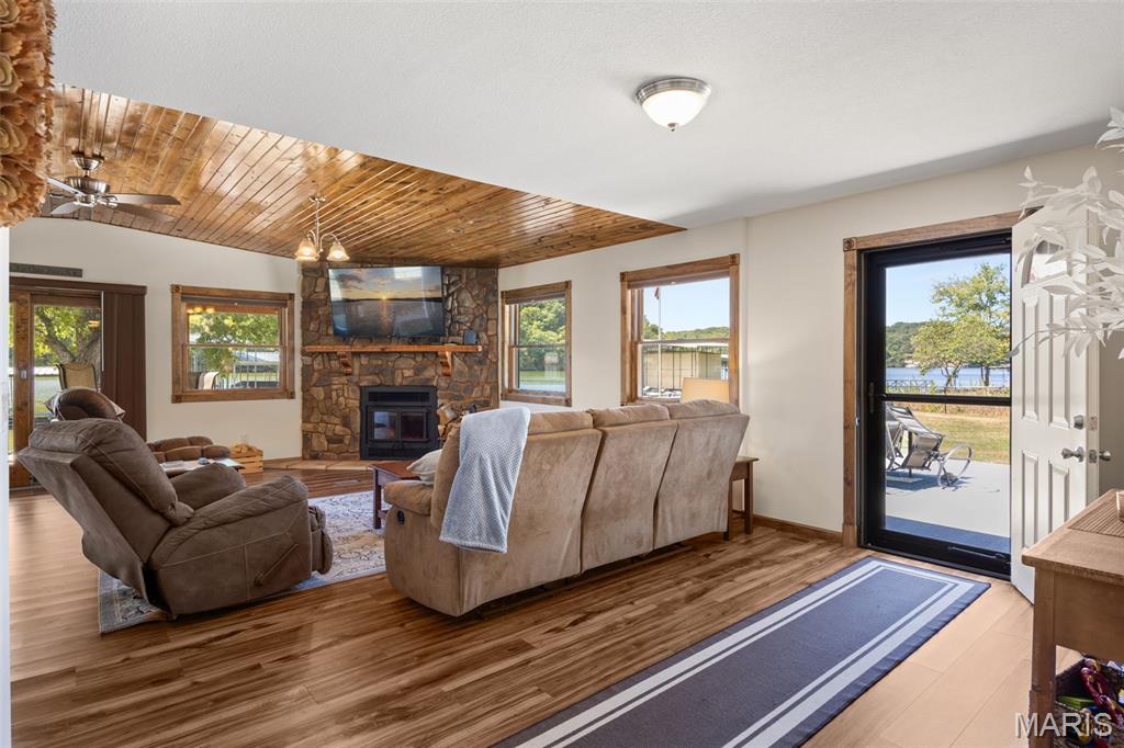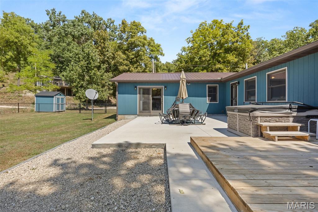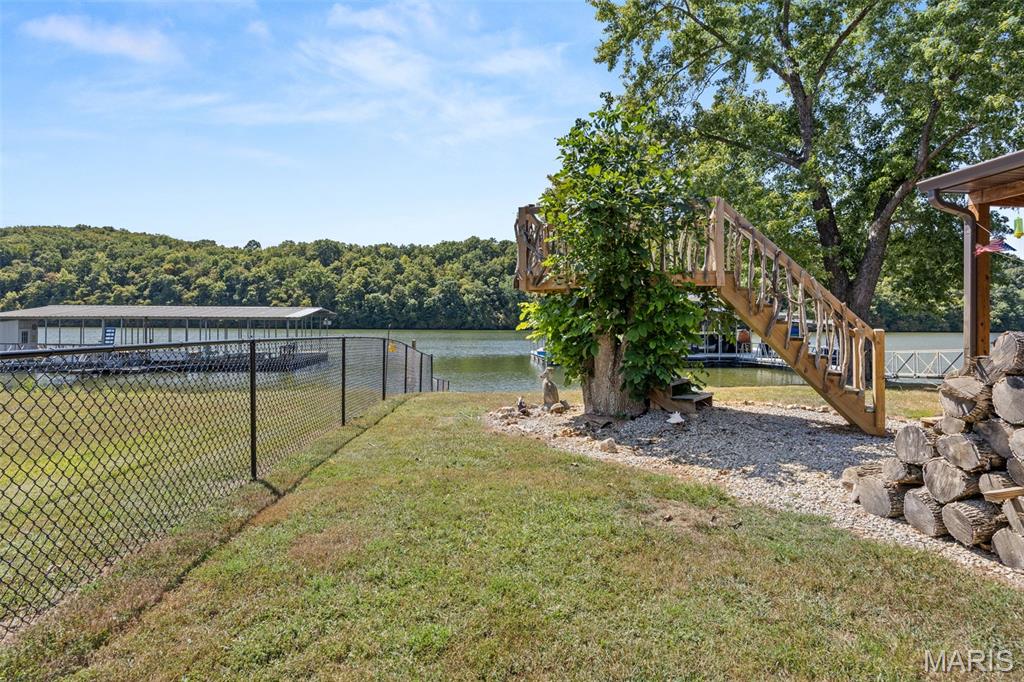 LAKEFRONT HOME on a FLAT LOT in Barnett,MM6-Gravois Arm! Welcome to your dream lake retreat! This 3-bed, 2-bath ranch home is brand new from the foundation up in 2020 & is true 1-level living w/ all the luxury features of new construction. This property is a rare gem on a gentle lot w/ over 100 feet of shoreline. Step inside to find an open-concept layout w/ vaulted ceilings, rustic wood beam accents, & a cozy stone fireplace. The heart of the home is the stunning kitchen, featuring custom cabinetry w/ crown molding, soft-close drawers & doors, stainless steel appliances, & a large center island. The outdoor living space is a true oasis w/ a hot tub, fire pit, sandy beach, Pelican Perch tree house, & fenced yard. The incredible 3-well dock includes: 18x50 slip, 12x30 slip, 10x28 slip, 2 PWC lifts, Wet steps, high-dive platform, & a spacious swim area. Additional highlights include: Metal roof, Covered & open concrete patios, & Bonus second-tier lot w/ plenty of space to build a garage. Just a short boat ride to Coconuts & Jolly Rogers, this location offers the perfect mix of tranquility & convenience. Clean, modern, & move-in ready – this is lake living at its finest.