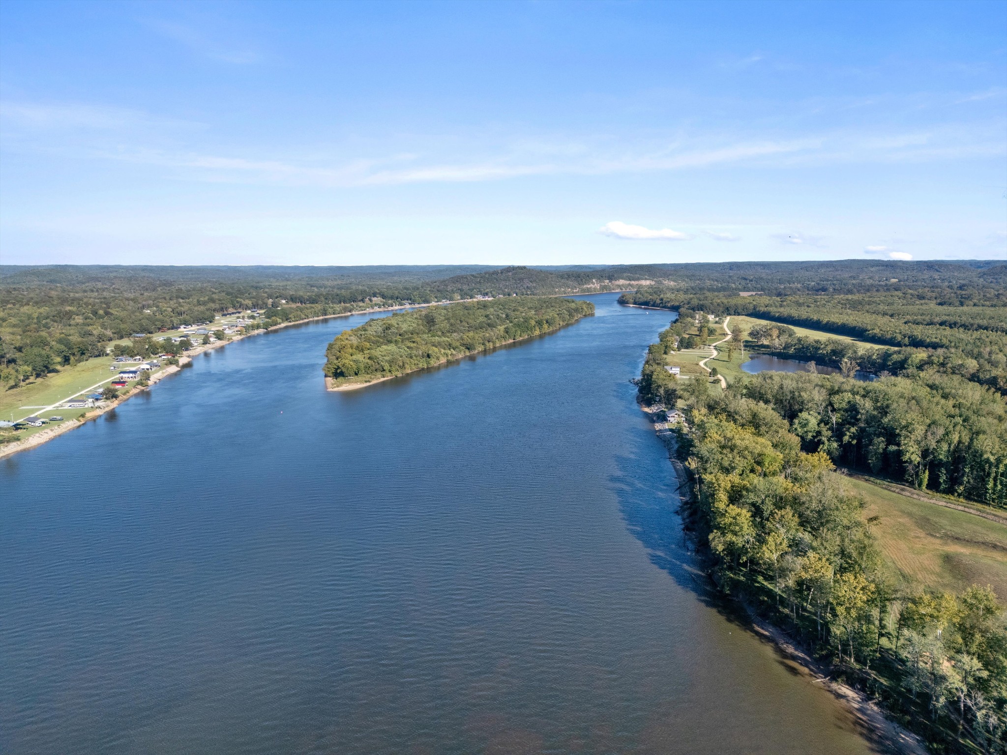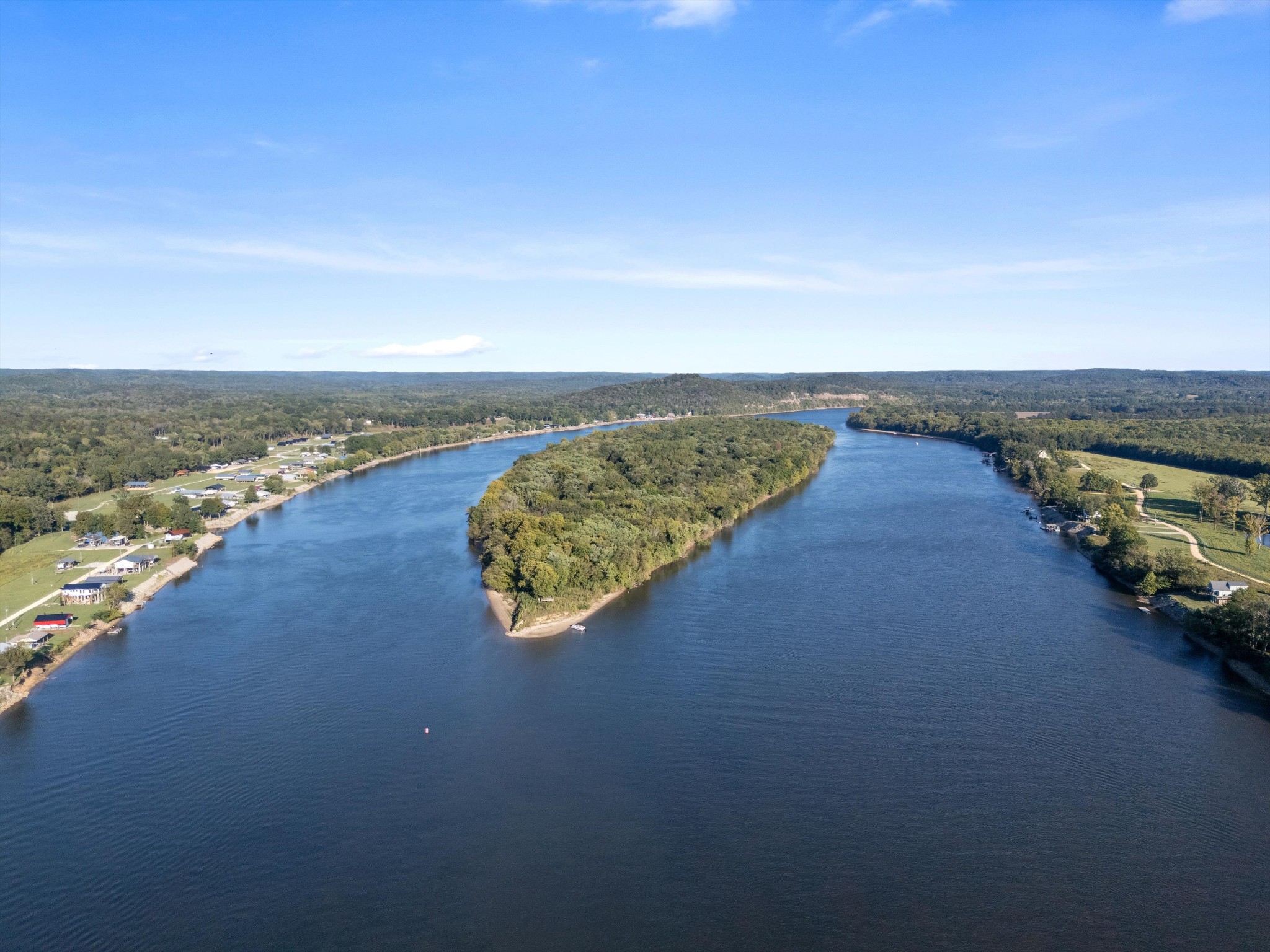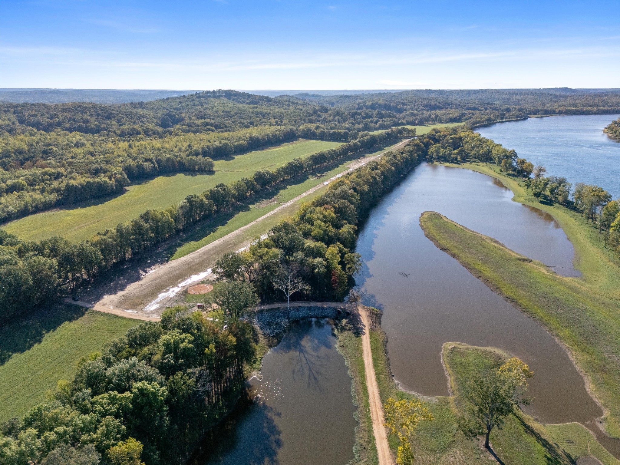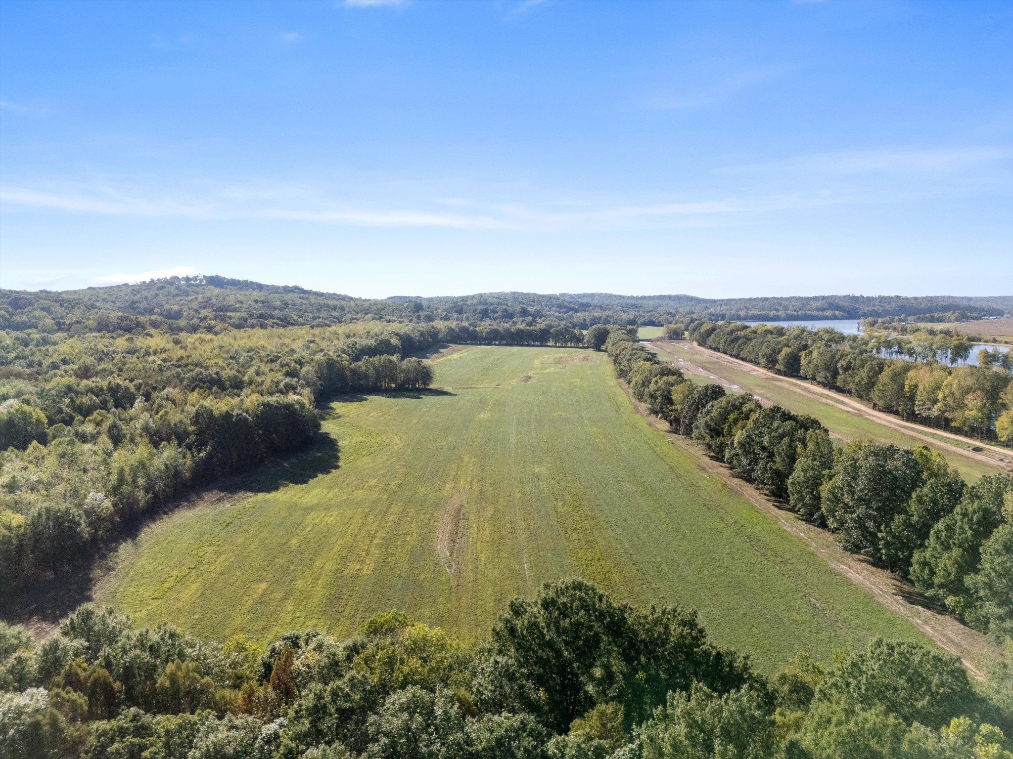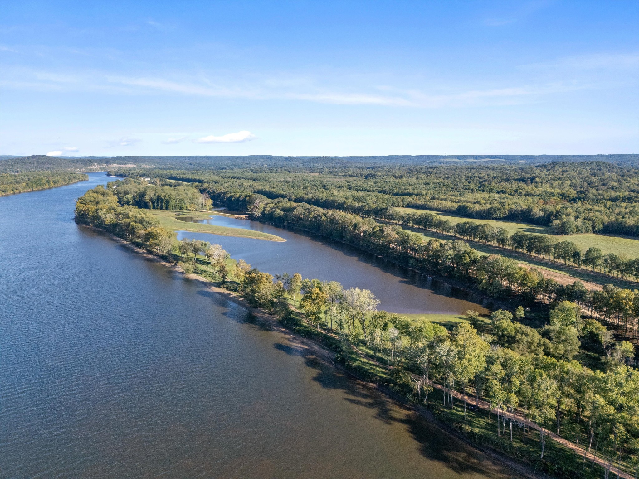 The 1,000+/- acre mainland features a mix of open pasture and hardwoods, with 300+/- acres of fertile pasture used for hay (ryegrass, fescue, orchard-grass, clover). Includes 130+/- acres of WRP easement rich with wildlife, a 38+/- acre private lake, and 13+ miles of interior roads. The 3,000ft+/- private runway (expandable to 6,000ft, grass-strip) offers 25-minute flights to Nashville or Memphis. Wooded hilltops are perfect for a 5+ bedroom estate or resort with river views. The property includes two half-acre lots on Scenic Lane, a modern tiny home on stilts, and a 148x96ft pole barn for storage.