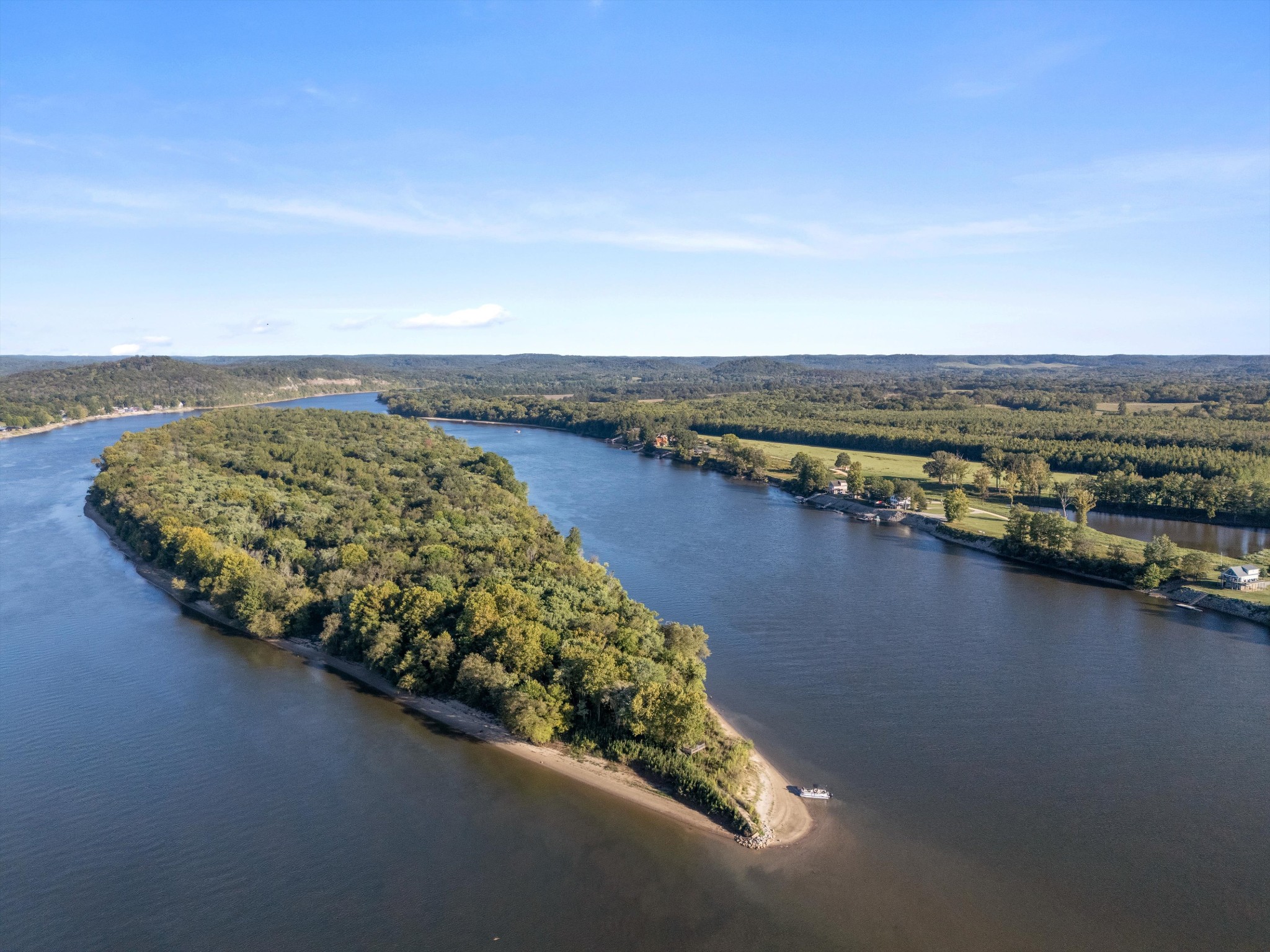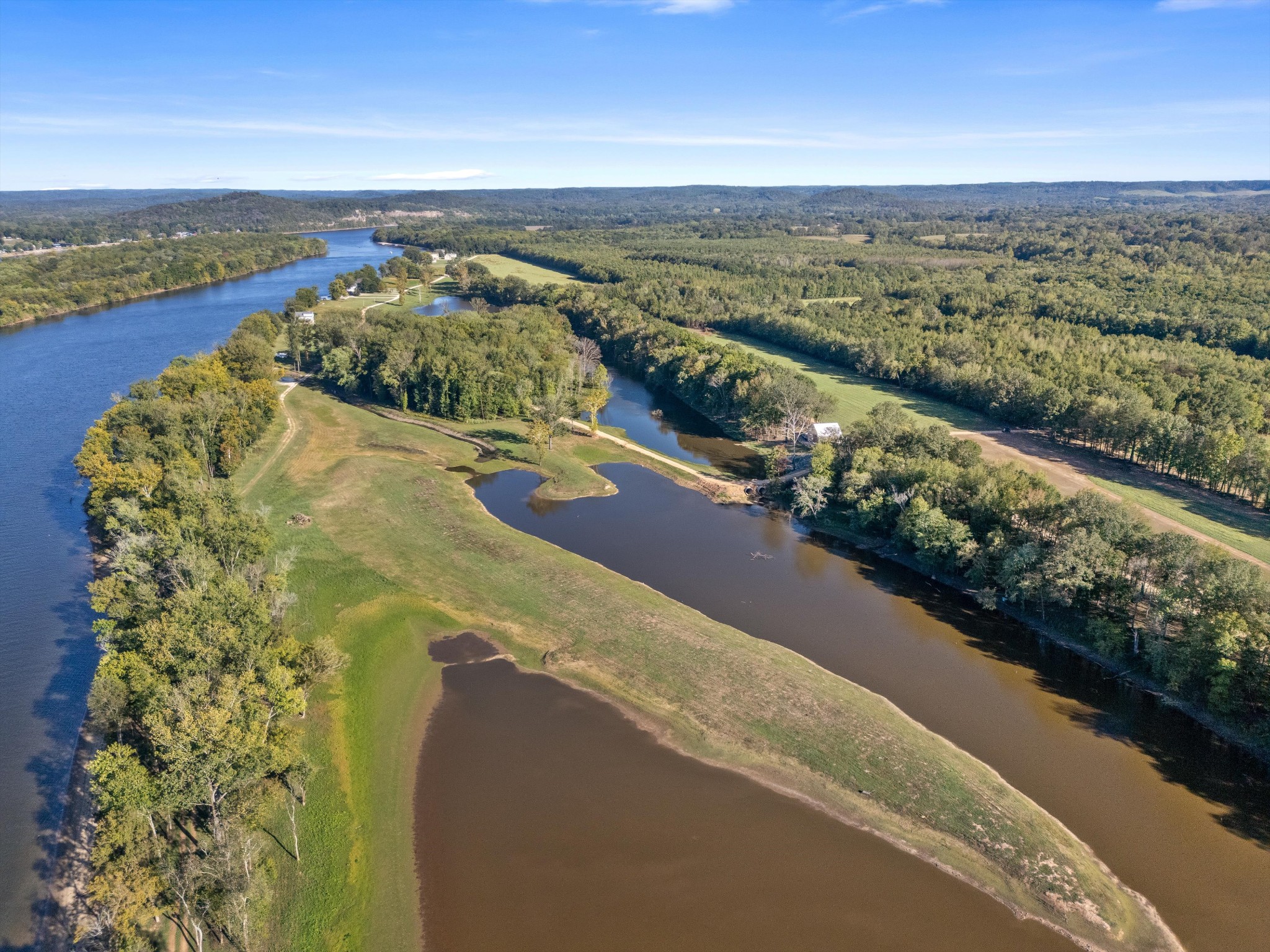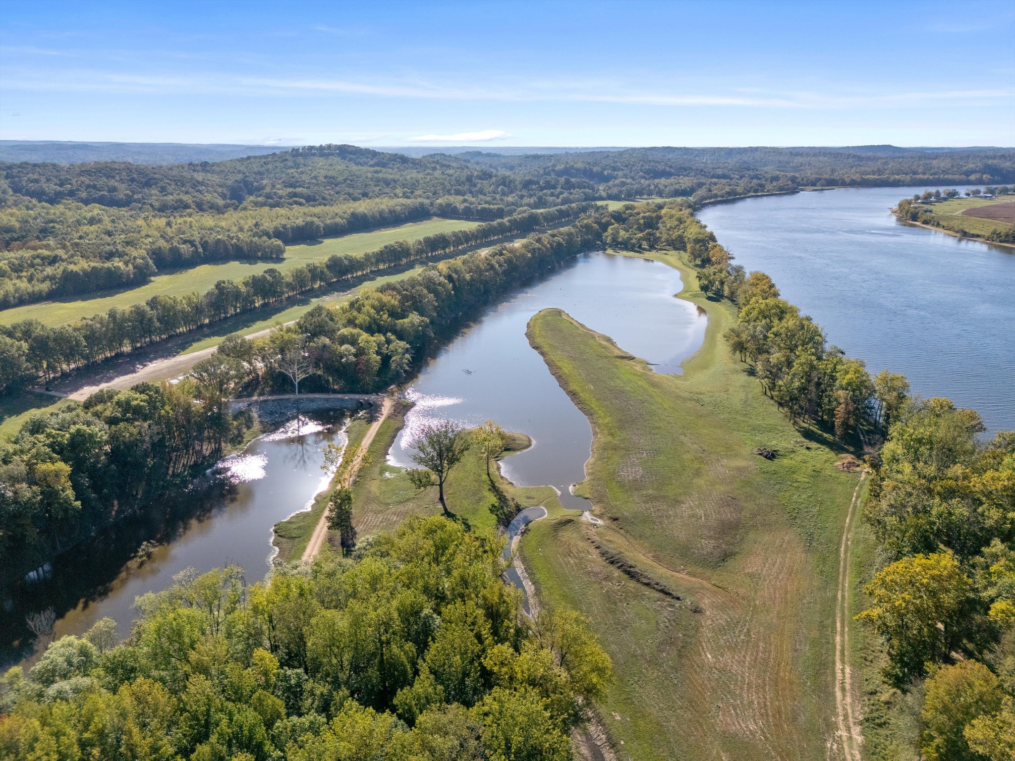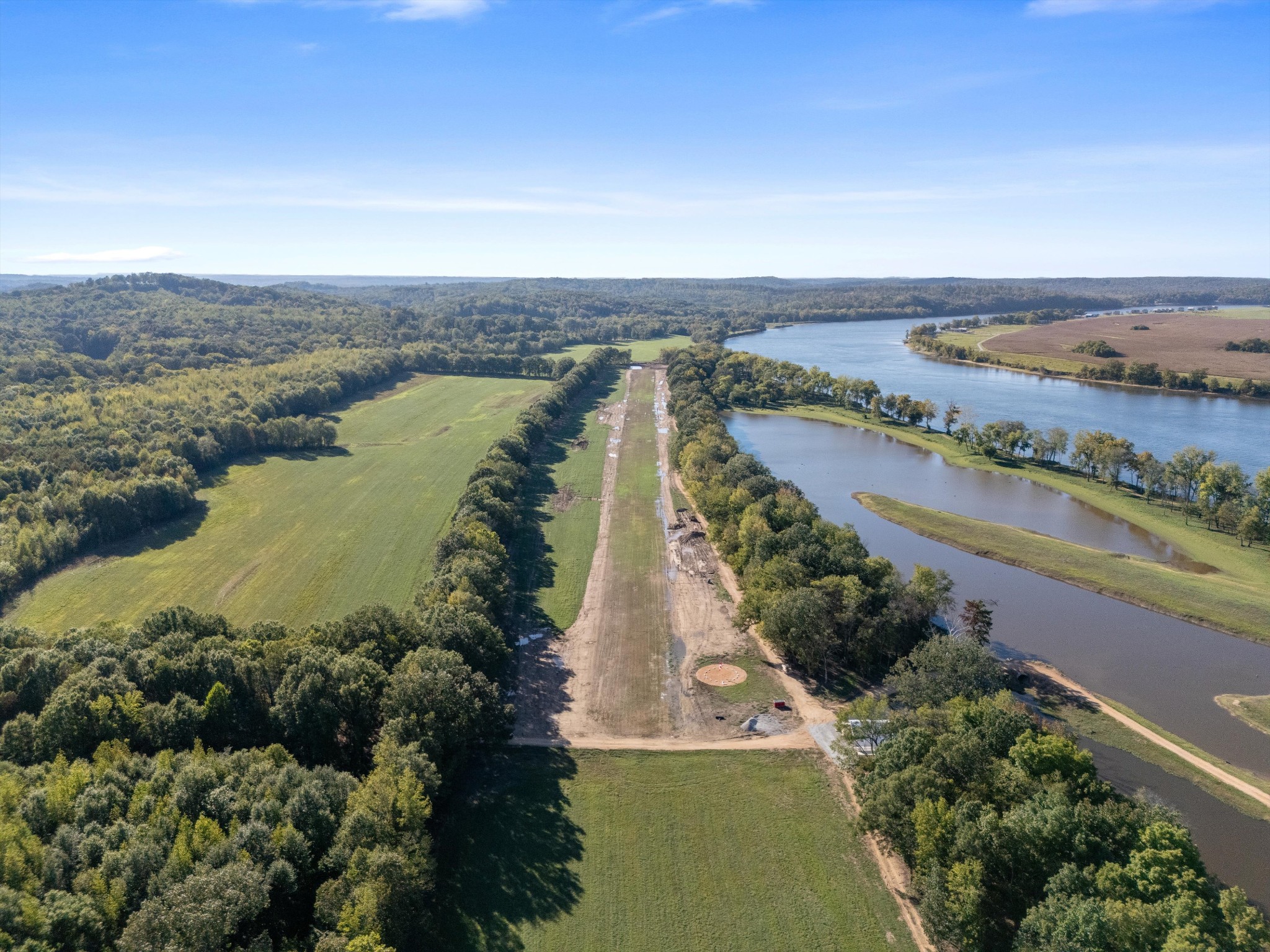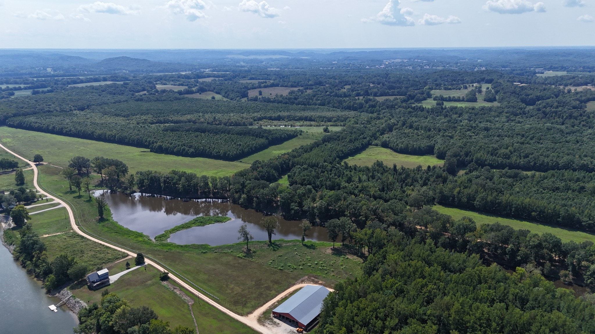 The 1,000+/- acre mainland features a mix of open pasture and hardwoods, with 300+/- acres of fertile pasture used for hay (ryegrass, fescue, orchard-grass, clover). Includes 130+/- acres of WRP easement rich with wildlife, a 38+/- acre private lake, and 13+ miles of interior roads. The 3,000ft+/- private runway (expandable to 6,000ft, grass-strip) offers 25-minute flights to Nashville or Memphis. Wooded hilltops are perfect for a 5+ bedroom estate or resort with river views. The property includes two half-acre lots on Scenic Lane, a modern tiny home on stilts, and a 148x96ft pole barn for storage.
