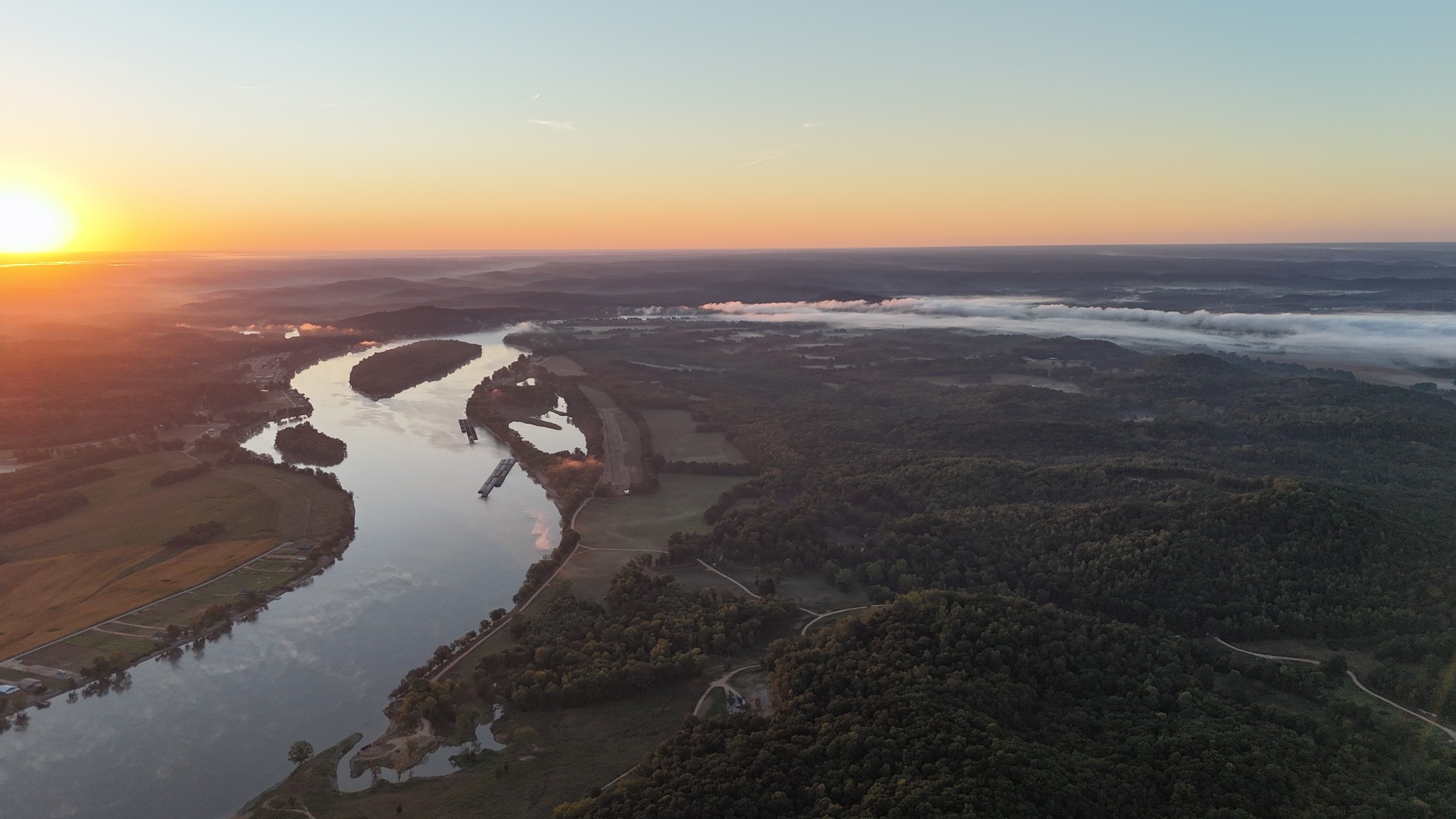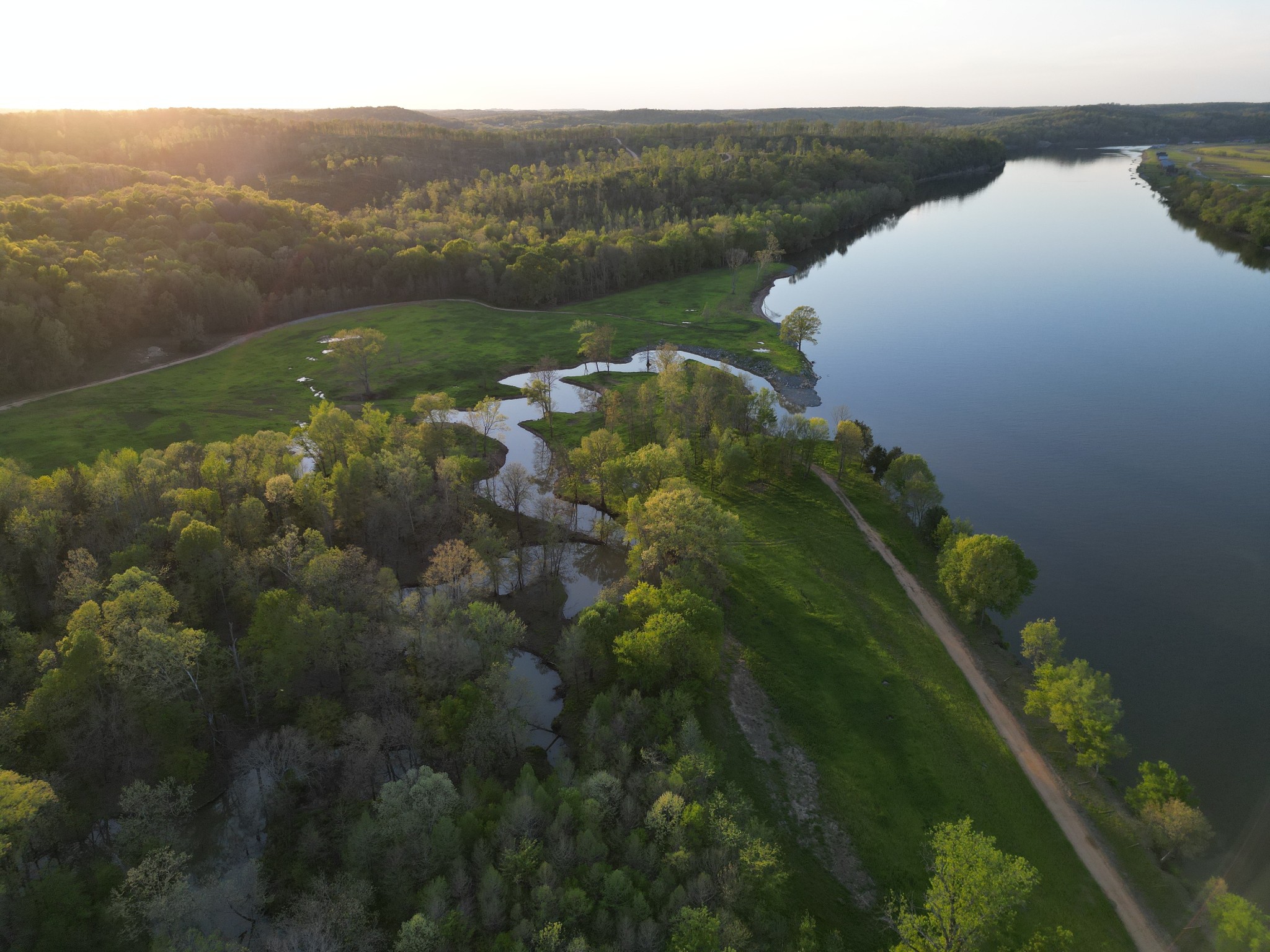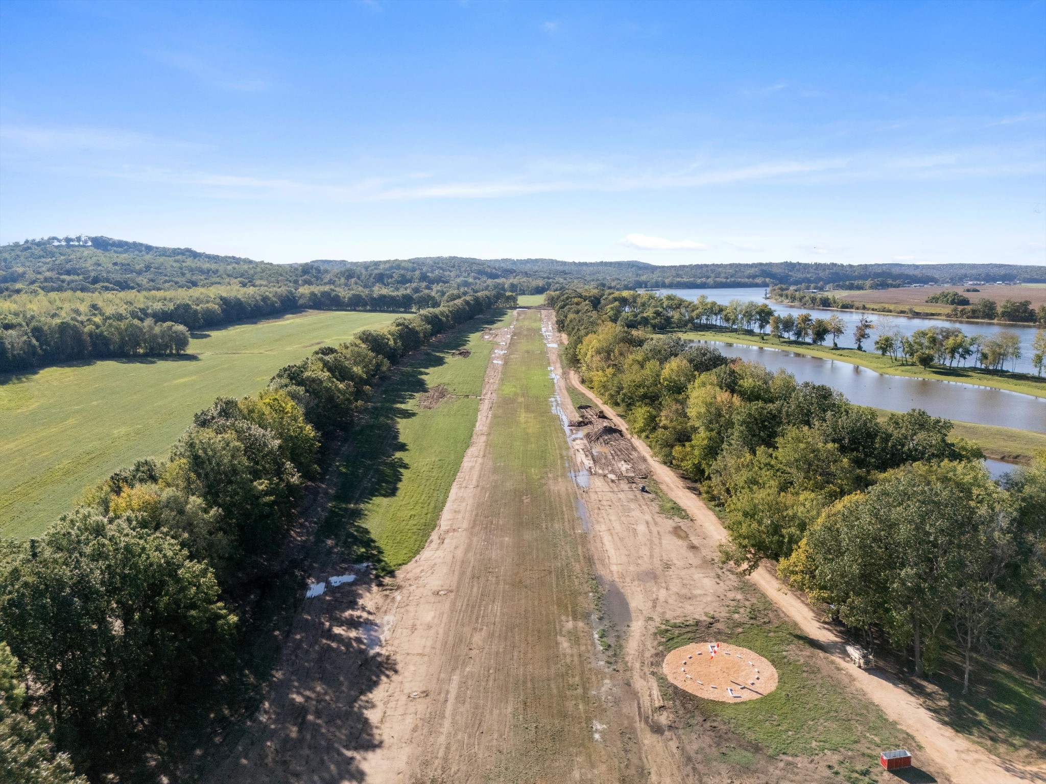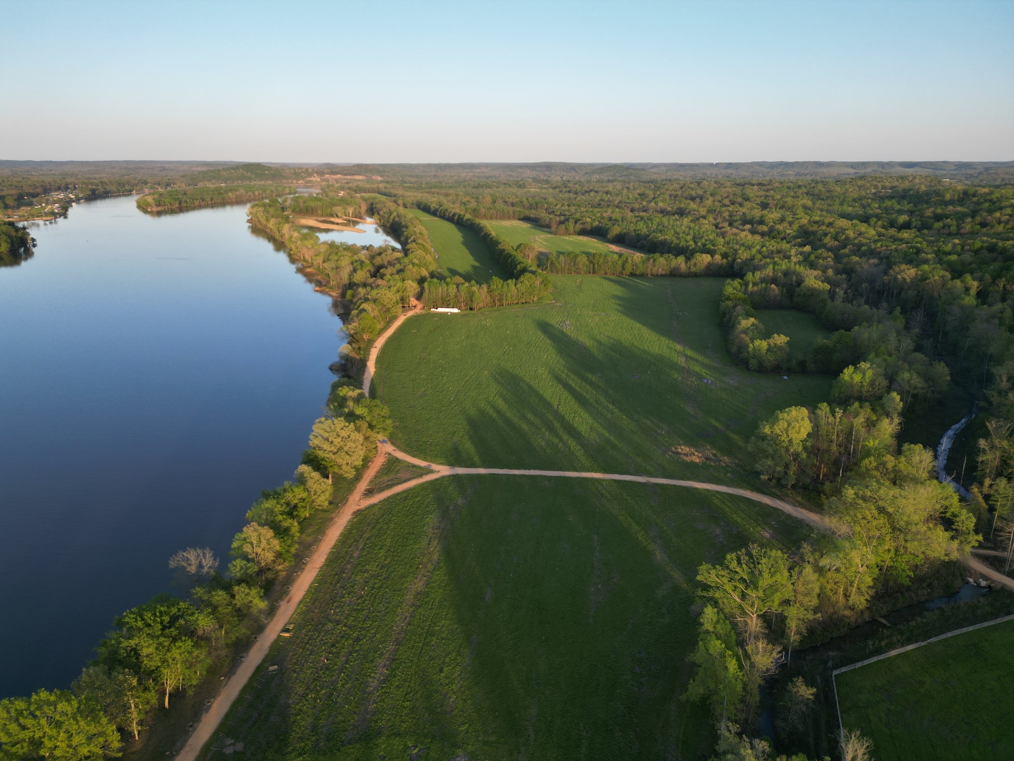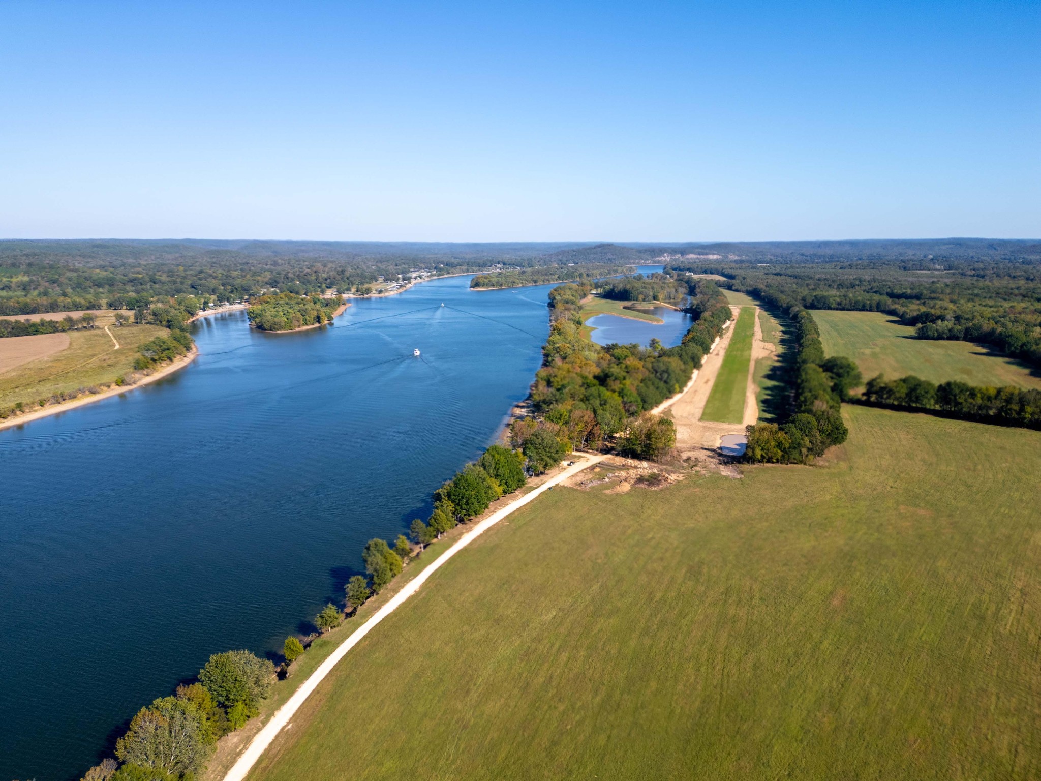 The 1,000+/- acre mainland features a mix of open pasture and hardwoods, with 300+/- acres of fertile pasture used for hay (ryegrass, fescue, orchard-grass, clover). Includes 130+/- acres of WRP easement rich with wildlife, a 38+/- acre private lake, and 13+ miles of interior roads. The 3,000ft+/- private runway (expandable to 6,000ft, grass-strip) offers 25-minute flights to Nashville or Memphis. Wooded hilltops are perfect for a 5+ bedroom estate or resort with river views. The property includes two half-acre lots on Scenic Lane, a modern tiny home on stilts, and a 148x96ft pole barn for storage.
