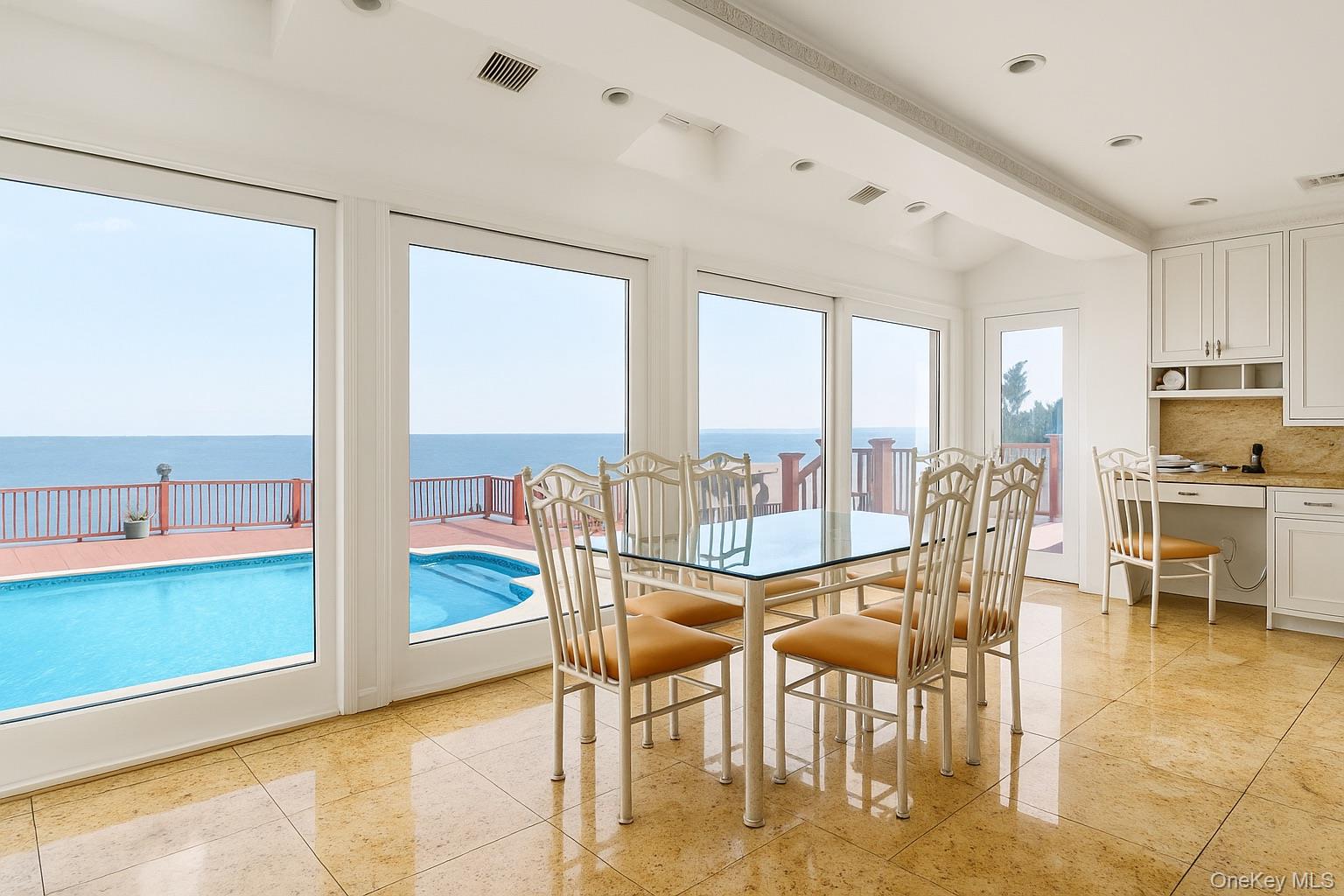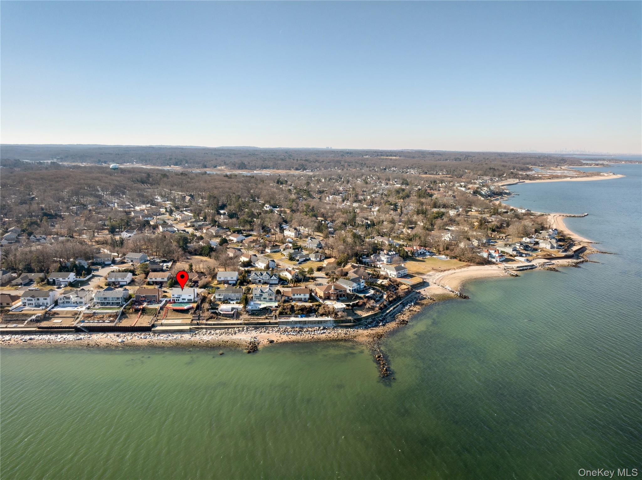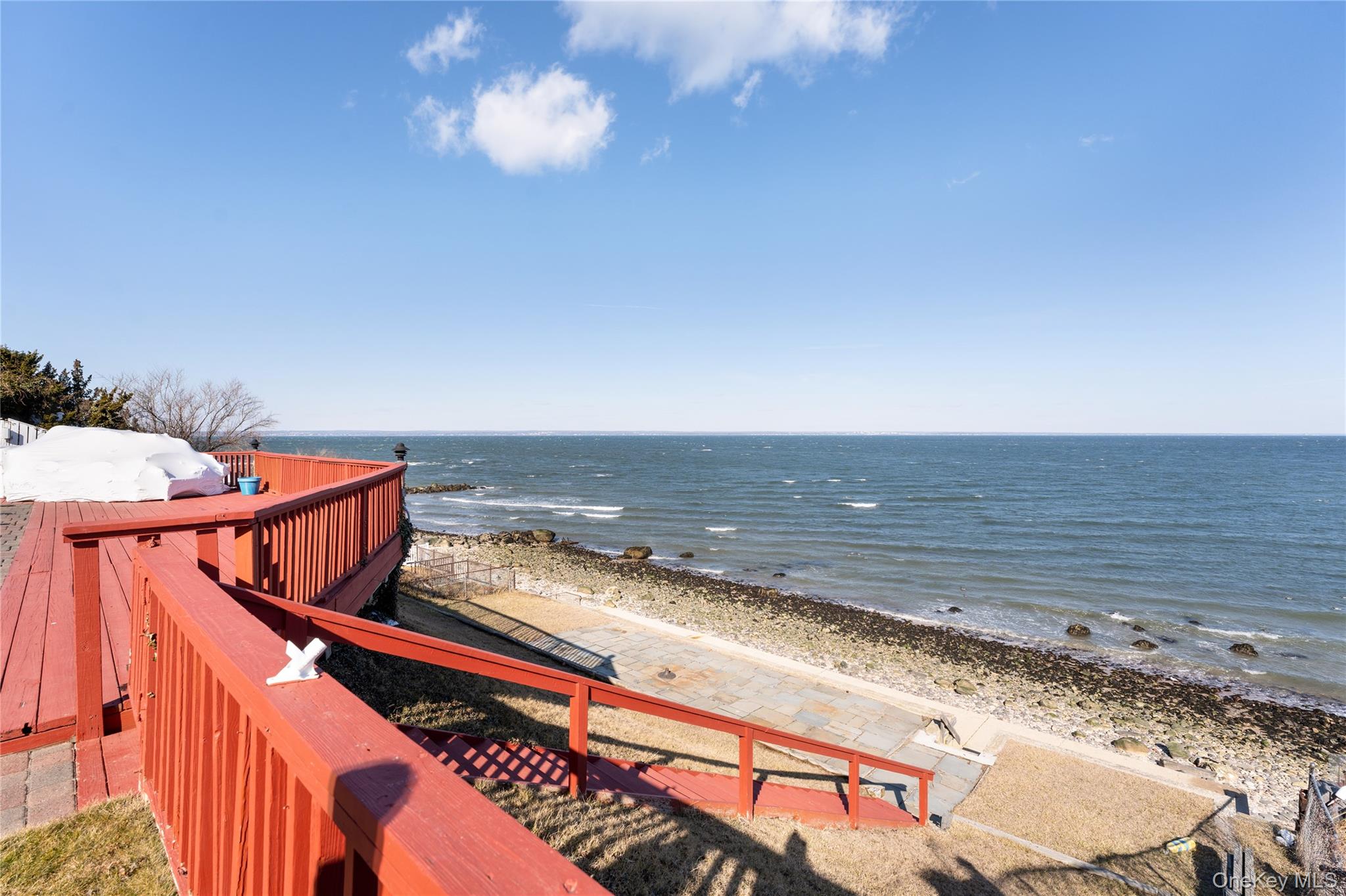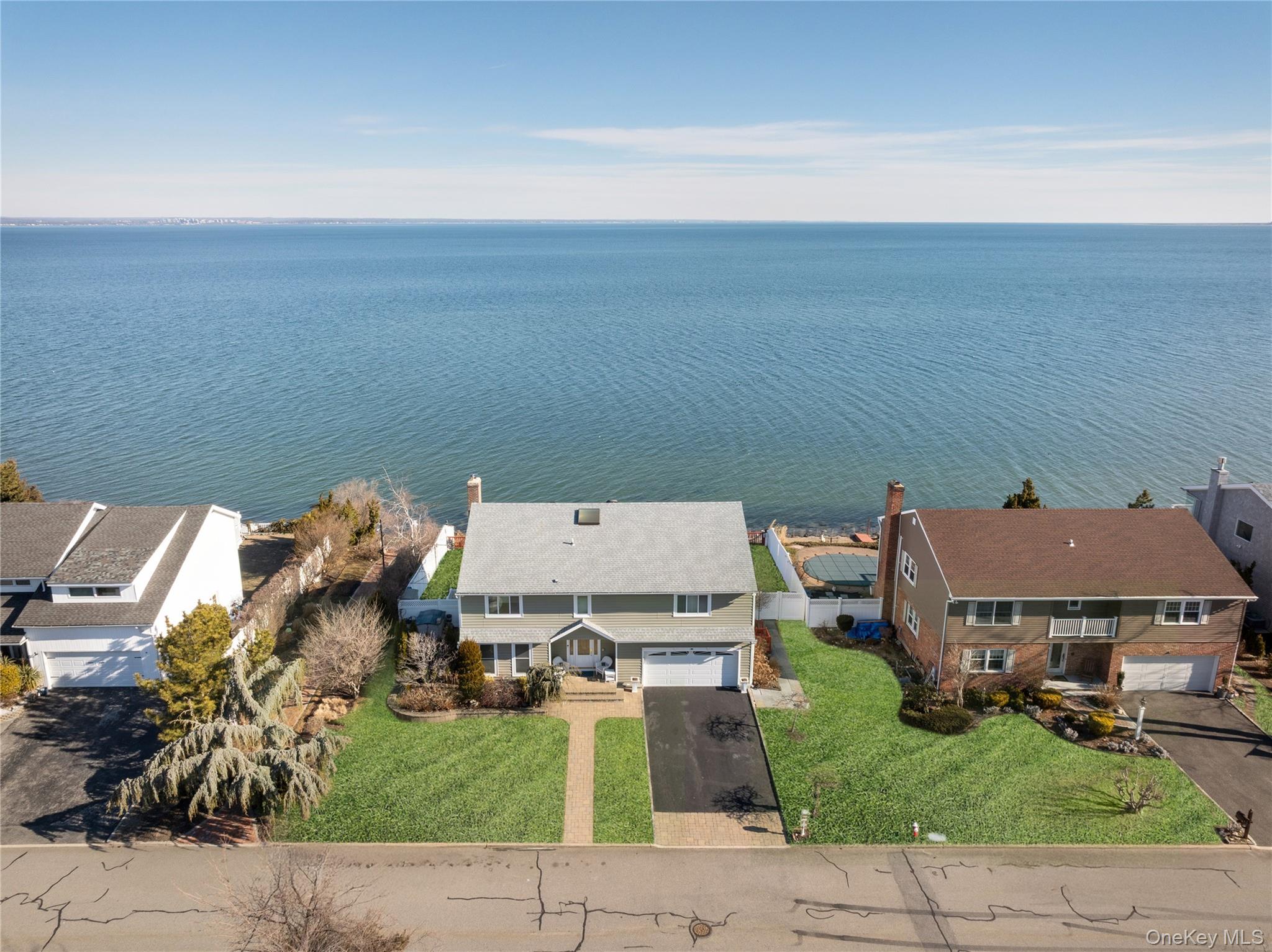 Welcome to this large colonial home, built in 1980, offering the perfect blend of modern amenities and timeless charm. Situated on an incredible property with 80 feet of private beach access, you’ll enjoy breathtaking water views of the Long Island Sound from the entire back of the home and as soon as you walk in the front door! This home is tucked away quietly in the private association of Oak Neck Point. The backyard boasts a saltwater pool with a spacious patio and diving board, ideal for entertaining or relaxing. Custom woodwork, crown molding, and exquisite cabinetry are featured throughout. Step into the grand entrance with soaring 18-foot ceilings and oversized Anderson windows, skylights, and sliders that flood the space with natural light and water views. The chef-inspired kitchen is a true highlight, featuring custom wood cabinetry, a granite countertop, and an oversized island with additional storage, perfect for preparing meals and entertaining with an open concept. The lower level features a one-bedroom apartment with a full kitchen, bathroom, and private entrance—ideal for guests, home office, or extended family. There is still a private finished basement on the main side of the home. The primary suite offers a private retreat with a spacious walk-in closet and custom built-in storage. The primary bathroom has been remodeled, providing a spa-like experience, while the hall bathroom on the upper level and the half bathroom on the main level have also been tastefully renovated. Hardwood floors to match are beneath all of the carpet on the second level.Oversized bedrooms provide ample space for your needs, and thoughtful storage solutions can be found throughout the home. The three-zone central air conditioning system was replaced in 2023. The oil burner was also completely replaced in recent years. Along with two sets of washer/dryers—one in the basement and one on the upper level. The roof and front siding has also been replaced in recent years. Outside, the property is enhanced by state-of-the-art landscaping, accent outdoor lighting, and a fully automated in-ground sprinkler system. The home also features a 2+ car garage with interior access to both the kitchen and lower level. Come tour this Gem today!