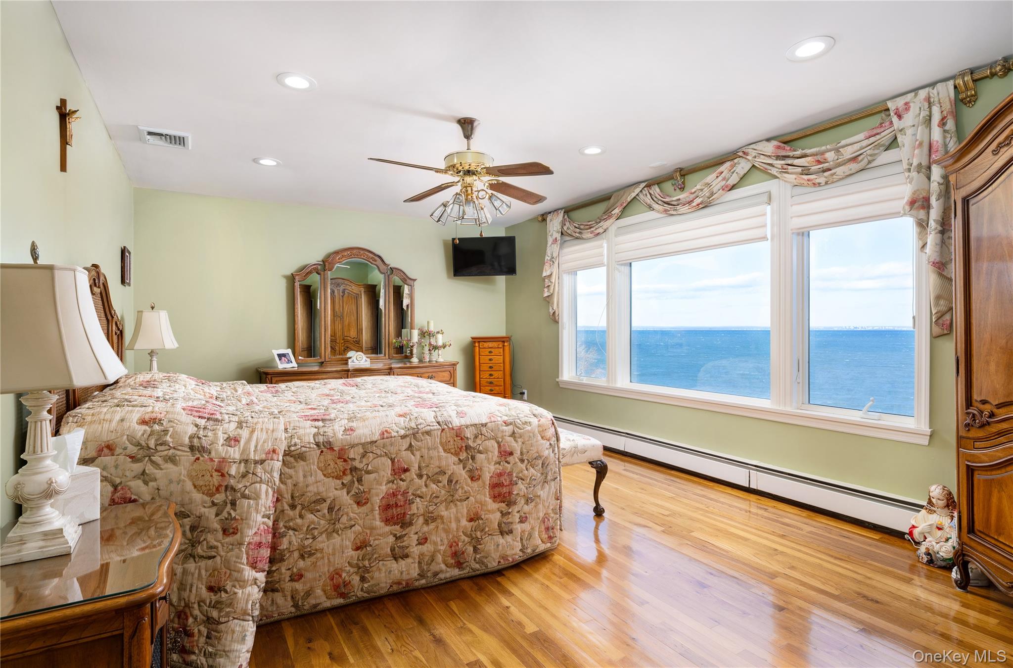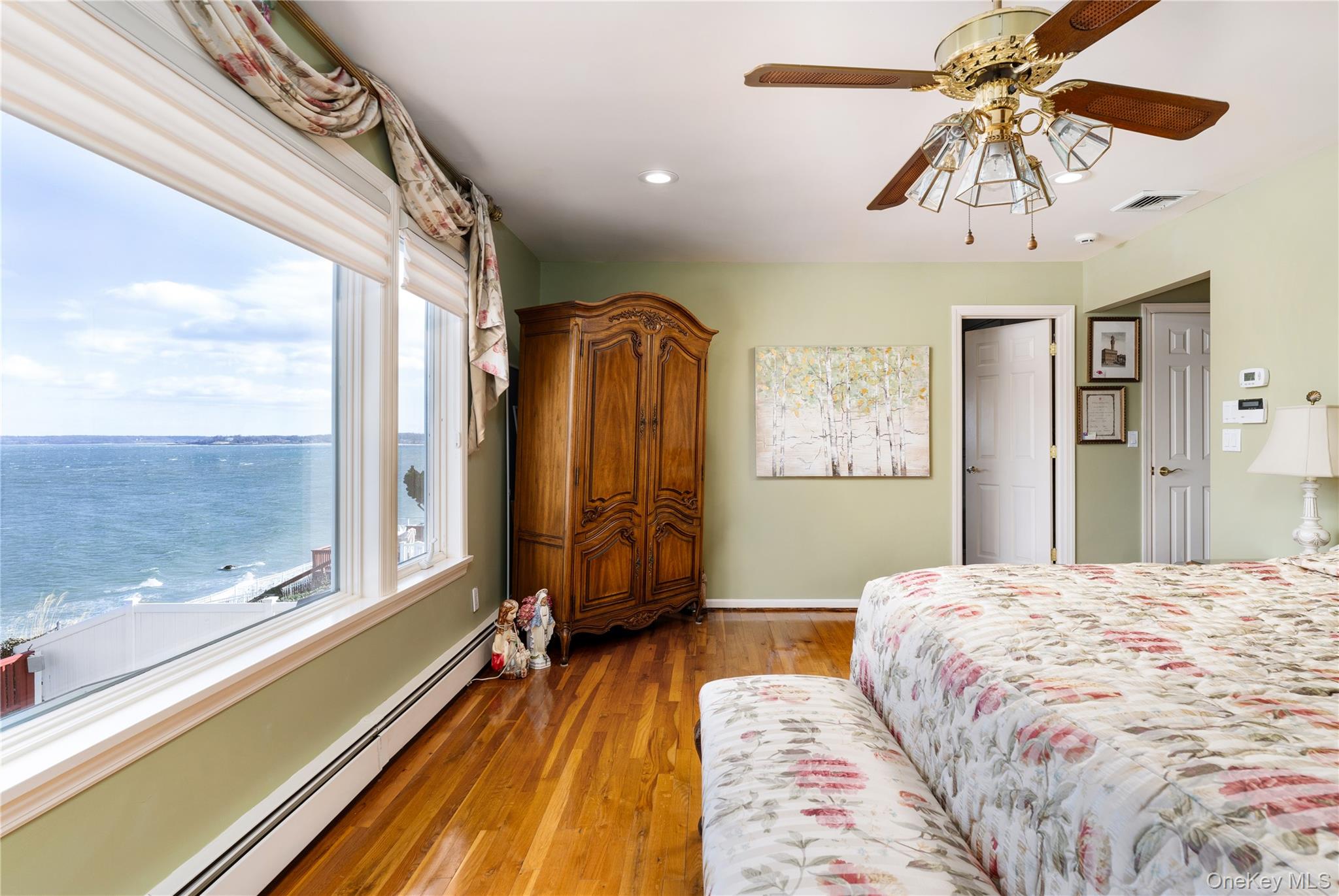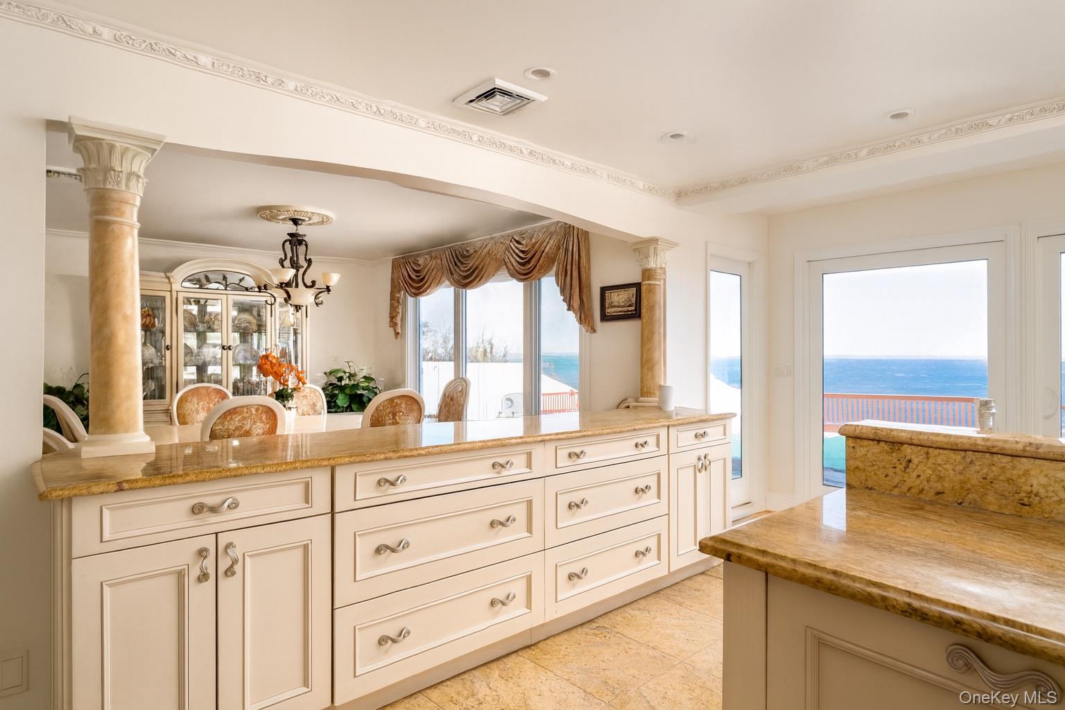 Welcome to this large colonial home, built in 1980, offering the perfect blend of modern amenities and timeless charm. Situated on an incredible property with 80 feet of private beach access, you’ll enjoy breathtaking water views of the Long Island Sound from the entire back of the home and as soon as you walk in the front door! This home is tucked away quietly in the private association of Oak Neck Point. The backyard boasts a saltwater pool with a spacious patio and diving board, ideal for entertaining or relaxing. Custom woodwork, crown molding, and exquisite cabinetry are featured throughout. Step into the grand entrance with soaring 18-foot ceilings and oversized Anderson windows, skylights, and sliders that flood the space with natural light and water views. The chef-inspired kitchen is a true highlight, featuring custom wood cabinetry, a granite countertop, and an oversized island with additional storage, perfect for preparing meals and entertaining with an open concept. The lower level features a one-bedroom apartment with a full kitchen, bathroom, and private entrance—ideal for guests, home office, or extended family. There is still a private finished basement on the main side of the home. The primary suite offers a private retreat with a spacious walk-in closet and custom built-in storage. The primary bathroom has been remodeled, providing a spa-like experience, while the hall bathroom on the upper level and the half bathroom on the main level have also been tastefully renovated. Hardwood floors to match are beneath all of the carpet on the second level.Oversized bedrooms provide ample space for your needs, and thoughtful storage solutions can be found throughout the home. The three-zone central air conditioning system was replaced in 2023. The oil burner was also completely replaced in recent years. Along with two sets of washer/dryers—one in the basement and one on the upper level. The roof and front siding has also been replaced in recent years. Outside, the property is enhanced by state-of-the-art landscaping, accent outdoor lighting, and a fully automated in-ground sprinkler system. The home also features a 2+ car garage with interior access to both the kitchen and lower level. Come tour this Gem today!