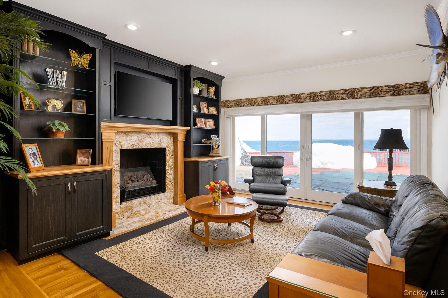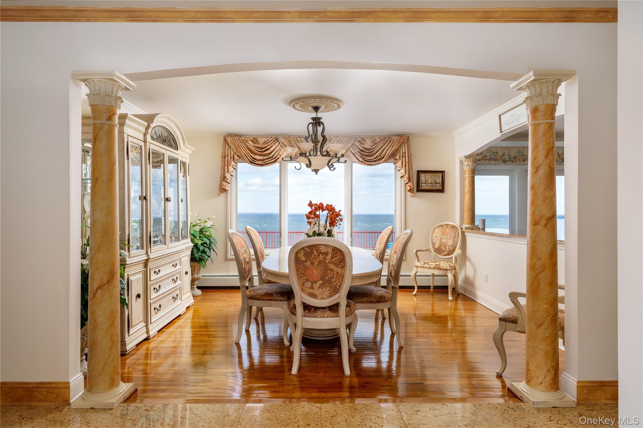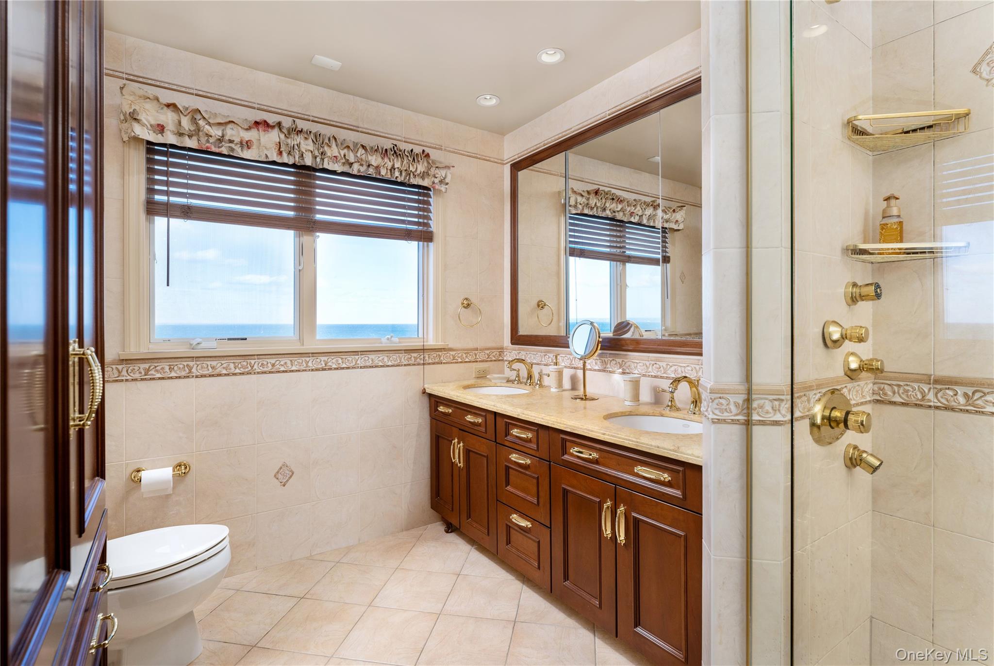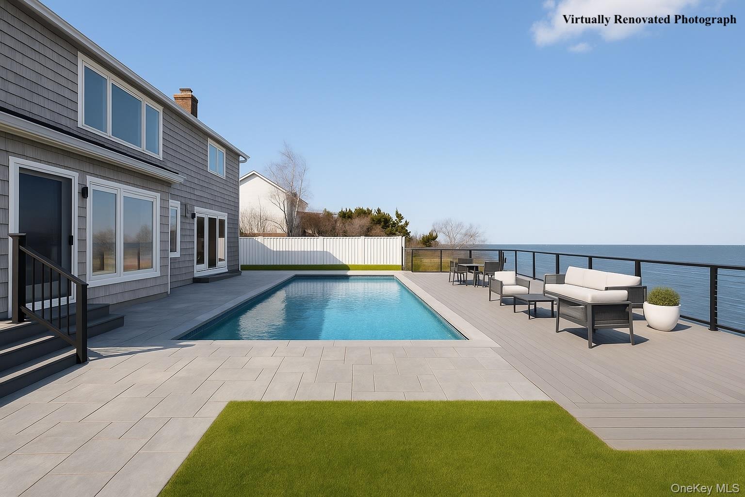 Welcome to this large colonial home, built in 1980, offering the perfect blend of modern amenities and timeless charm. Situated on an incredible property with 80 feet of private beach access, you’ll enjoy breathtaking water views of the Long Island Sound from the entire back of the home and as soon as you walk in the front door! This home is tucked away quietly in the private association of Oak Neck Point. The backyard boasts a saltwater pool with a spacious patio and diving board, ideal for entertaining or relaxing. Custom woodwork, crown molding, and exquisite cabinetry are featured throughout. Step into the grand entrance with soaring 18-foot ceilings and oversized Anderson windows, skylights, and sliders that flood the space with natural light and water views. The chef-inspired kitchen is a true highlight, featuring custom wood cabinetry, a granite countertop, and an oversized island with additional storage, perfect for preparing meals and entertaining with an open concept. The lower level features a one-bedroom apartment with a full kitchen, bathroom, and private entrance—ideal for guests, home office, or extended family. There is still a private finished basement on the main side of the home. The primary suite offers a private retreat with a spacious walk-in closet and custom built-in storage. The primary bathroom has been remodeled, providing a spa-like experience, while the hall bathroom on the upper level and the half bathroom on the main level have also been tastefully renovated. Hardwood floors to match are beneath all of the carpet on the second level.Oversized bedrooms provide ample space for your needs, and thoughtful storage solutions can be found throughout the home. The three-zone central air conditioning system was replaced in 2023. The oil burner was also completely replaced in recent years. Along with two sets of washer/dryers—one in the basement and one on the upper level. The roof and front siding has also been replaced in recent years. Outside, the property is enhanced by state-of-the-art landscaping, accent outdoor lighting, and a fully automated in-ground sprinkler system. The home also features a 2+ car garage with interior access to both the kitchen and lower level. Come tour this Gem today!