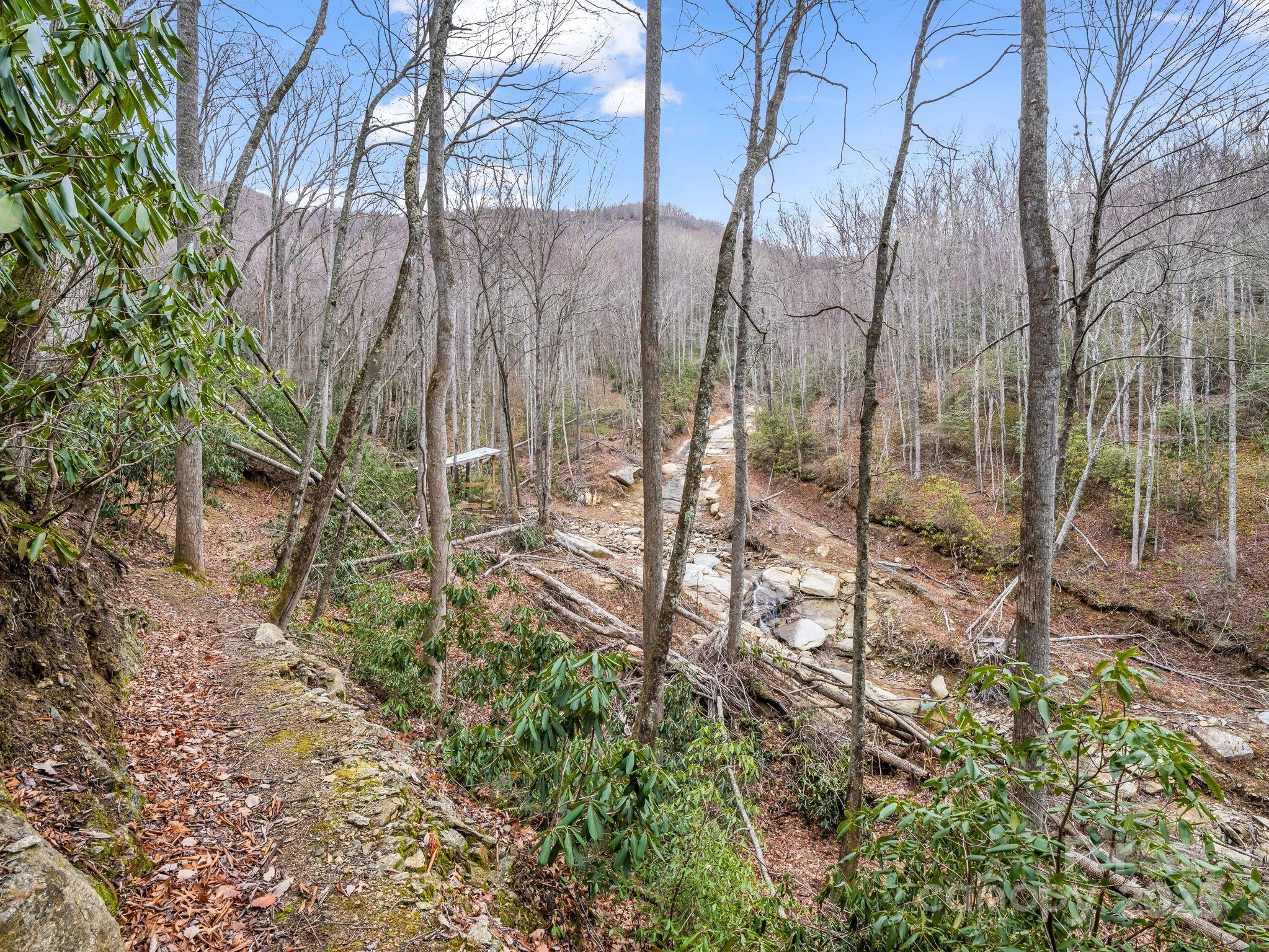 Incredible 123+ acre parcel at the end of Lower Flat Creek between Black Mountain and Chimney Rock! This amazing private property backs up to ridgelines and offers complete seclusion and recreation paradise! The lower portion of the property fronts Flat Creek, a beautiful mountain stream with large boulders and clear waters. Property access is via a gravel road on the left side of the creek. After crossing a small tributary, there is a large open field that would be a great build site for a riverfront home (or possibly multiple homes). Past the field is a gravel road that leads up to flat building site at higher elevation, with conduit already in place to run electricity. Behind the build site is a trail that leads to a creekfront shelter. This creek flows into Flat Creek and is much rockier after Helene. However, none of this property is in the flood plain. Across the creek, there is an old road bed (possibly an old logging road) that leads to the top of the property. If a bridge were built over this creek, more homesites would be accessible and the views would be panoramic. This once-in-a-lifetime property offers a myriad of recreational possibilities, including hunting and trail building for hiking, mountain biking, ATV or dirt bikes, and equestrian use. With phenomenal eastern and southern exposure, a completely off-the-grid retreat would be an ideal use. The neighboring property - 2716 Lower Flat Creek Road (Buncombe County PIN: 0625-06-0575-00000) is also on the market. It has 52+ acres and multiple waterfalls; see MLS 4286576. Combining both of these properties would create a beautiful estate unlike any other in Western North Carolina!