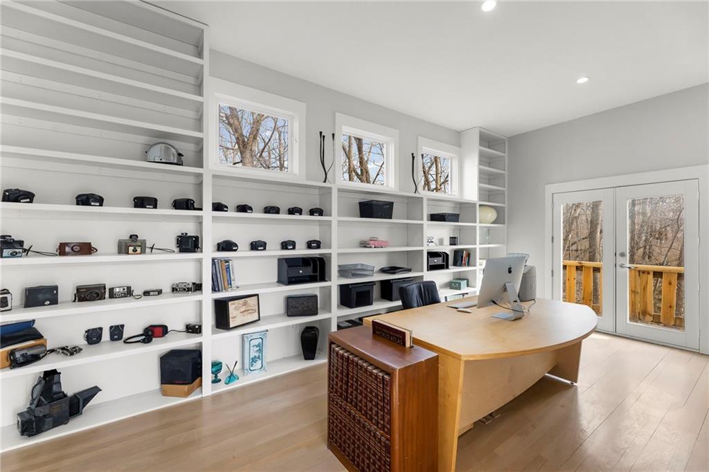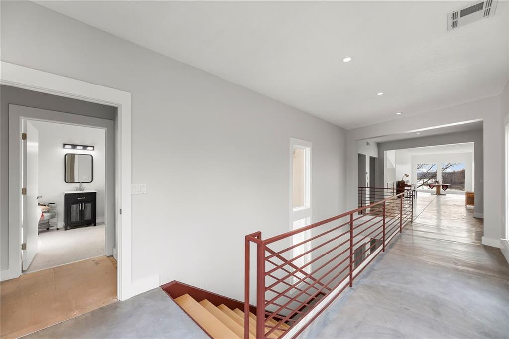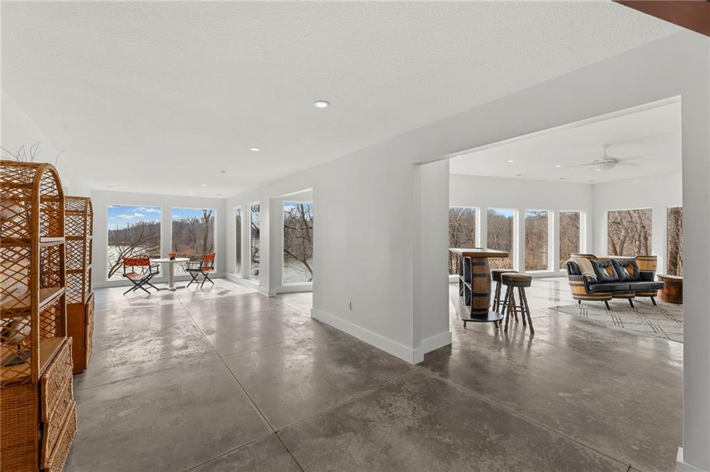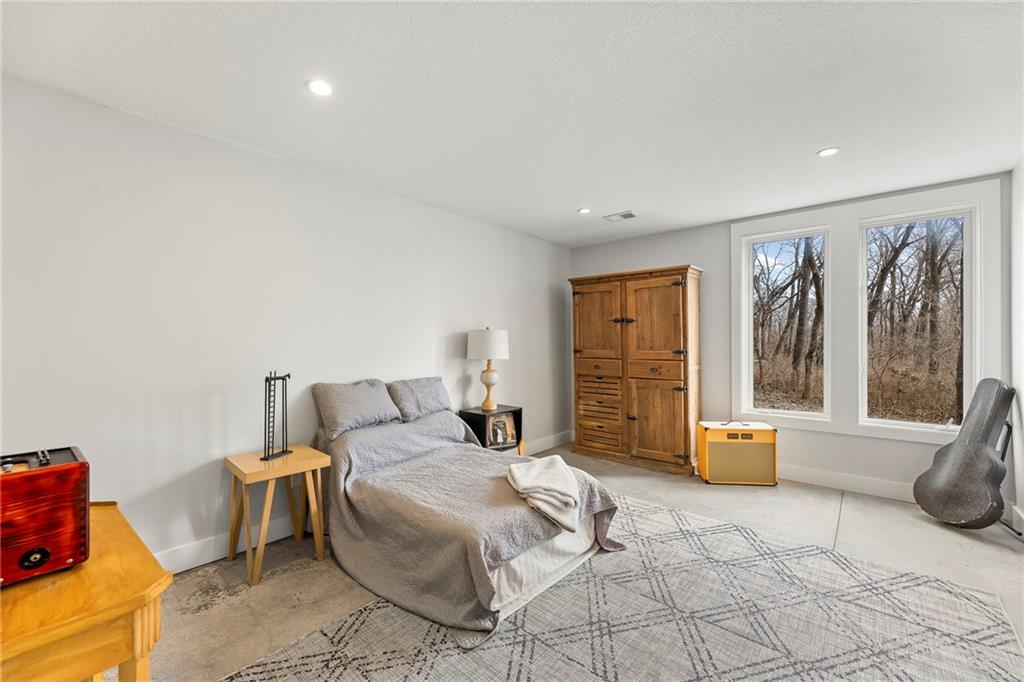 Experience elevated living in this striking three-level one of a kind lakefront home, where modern concrete construction meets warm natural surroundings. Set on a 7.3 acre private wooded lake lot, this home is wrapped in floor-to-ceiling windows, flooding every level with natural light and tranquil lake views. Designed with intention and style by the award-winning architect Trent G. Carr, the home features industrial railings, clean architectural lines, and an open, airy feel throughout. With six bedrooms (most with outdoor balconies) and 6.5 bathrooms, there's room for everyone - perfect for entertaining, multi-generational living, or extended stays. In addition to the stunning architectural staircase, an elevator connects all three levels, and the home is fully handicap accessible. The 3-car garage provides ample space for vehicles, storage and recreational gear. Adding even more versatility is a large partially finished space above the garage with its own private entrance - ideal for a home business, studio, guest suite, or separate living quarters. This flexible area offers exceptional potential for work-from-home needs, or independent living while still being connected to the main residence. Home has had electrical upgrades, new roof and gutters and fresh paint inside and out all within the last year! This is a rare opportunity to own a home that is architecturally bold, thoughtfully accessible, and surrounded by nature - where modern aesthetic, light-filled interiors, and wooded lakeside serenity create an unforgettable living experience.