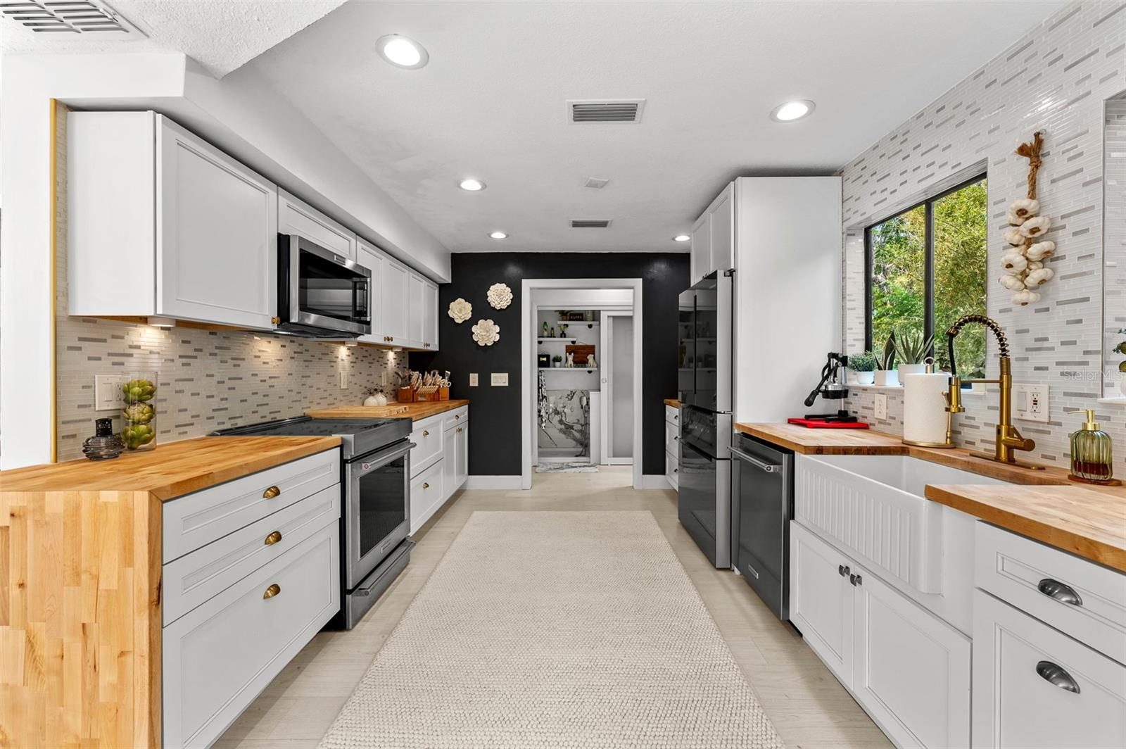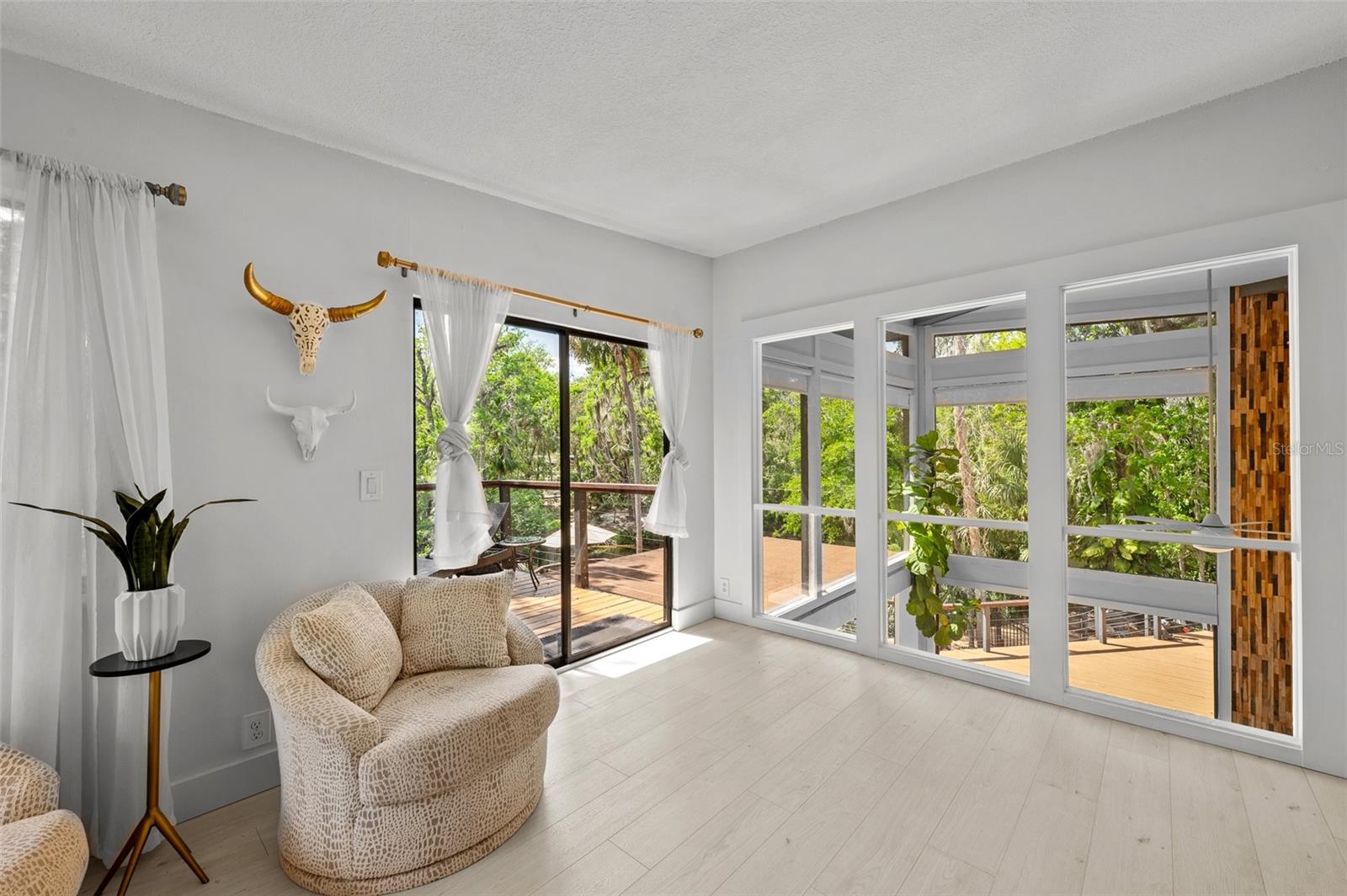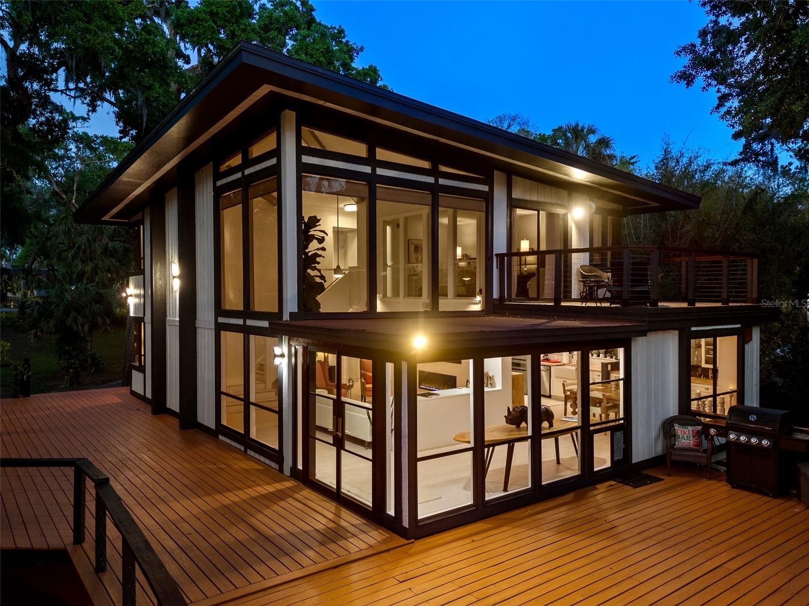 This exceptional five-bedroom, three-bath residence is on an acre lot within the exclusive, gated Alafia Preserve neighborhood, a community comprised of only four homes and offers a refined and private living experience. Upon approach, an updated paved circular driveway leads to the residence's grand, 12-foot wide staircase. As you enter, you’ll be captivated by the floor-to-ceiling windows that illuminate the foyer with abundant natural light. The expansive living room features an 18-foot ceiling, a built-in decorative fireplace and a distinctive wood veneer feature wall. The meticulously remodeled kitchen is equipped with new appliances, including a Bosch refrigerator and an induction cooktop range, complemented by butcher block countertops with a waterfall edge, glass tile backsplash and soft-close drawers. Adjacent to the kitchen, the dining room presents a dry bar with glass display cabinetry. The primary bedroom, characterized by floor-to-ceiling windows and interior windows overlooking the living room, coupled with a private balcony provides a tranquil retreat. All bedrooms are uniquely appointed with aquarium windows. Cohesive gold fixtures and hardware contribute to the residence's unified aesthetic. The first level includes an in-law apartment, featuring a bedroom, full bath, living room and kitchenette, offering versatile accommodation. Practical amenities include dual-zoned air-conditioning units, double-pane UV film-covered windows, built-out closets and pantry, and retextured interior drywall. The laundry room is outfitted with a custom dog washing station and direct exterior access. The exterior features a 3,500-square-foot main-level deck with a covered sitting area, dock access with over 90 feet of riverfront on the Alafia River, a wraparound balcony, a separate workshop, and plenty of parking space for your RV or boat. The fenced-in animal area with a detached doghouse is ideal for pet comfort. The expansive sand garden, featuring a water feature/firepit and illuminated by three custom bollard lamps, creates a serene outdoor environment. In the A-rated Bloomingdale High School district, there are nearby shopping and dining varieties such as The Stein & Vine or Three Bulls Tavern & Brewery, as well as many entertainment options such as Urban Air Trampoline & Adventure Park or the Lithia Springs Conservation Park. All of this with close access to Interstate 75 and the Selmon Expressway leading to downtown Tampa.
