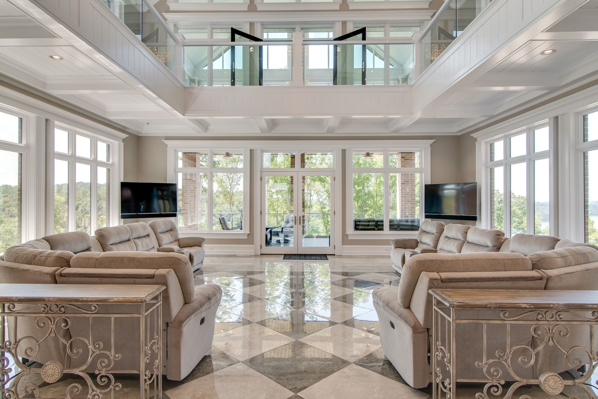 New Price on this majestic lakeside property of which there is no match. A premier legacy estate on 63 park-like acres. Panoramic views of Tennessee's beautiful, deep-water Dale Hollow Lake. Watch the sunset over the water from one of the many balconies and sun rooms. Custom marble & hand-crafted woodwork throughout. 3 full-sized kitchens & additional kitchenettes. Dramatic 2 story resort-style breezeway connects wings of this magnificent home. Commercial-grade home theater. Guest building with open concept office/lounge space, 3 bedrooms & third floor lookout cupola with 360 degree views. Separate commercial style shop/garage. Nearly 50,000 sq ft of finished space total! There is nothing else like this on the market in Tennessee. Versatile enough to serve as a private corporate retreat, boutique luxury resort, or an exclusive destination for weddings and events