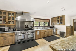 Exterior Features :Covered Patio, Gas Grill, Deck/Balcony, Sprinkler System, Mature Trees, Detached Quarters, Additional Dwelling, Outdoor Kitchen, Water Front Improved