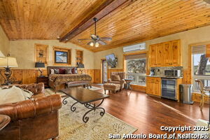 Exterior Features :Covered Patio, Bar-B-Que Pit/Grill, Gas Grill, Deck/Balcony, Mature Trees, Detached Quarters, Additional Dwelling, Outdoor Kitchen, Water Front Improved