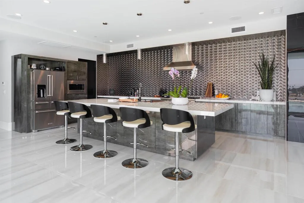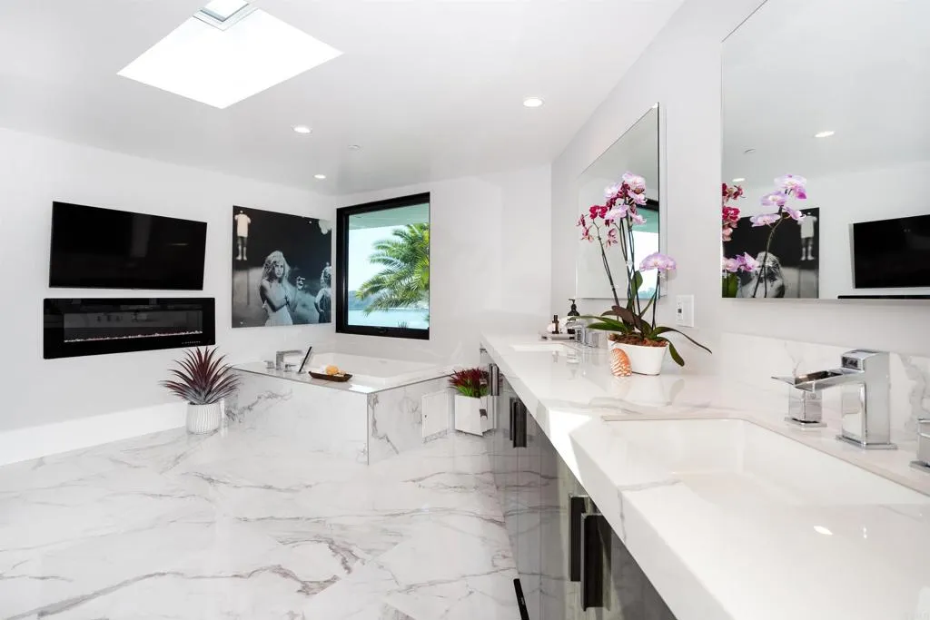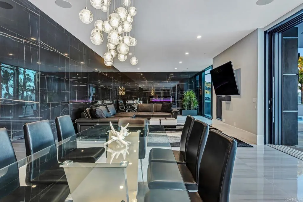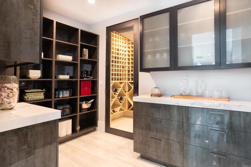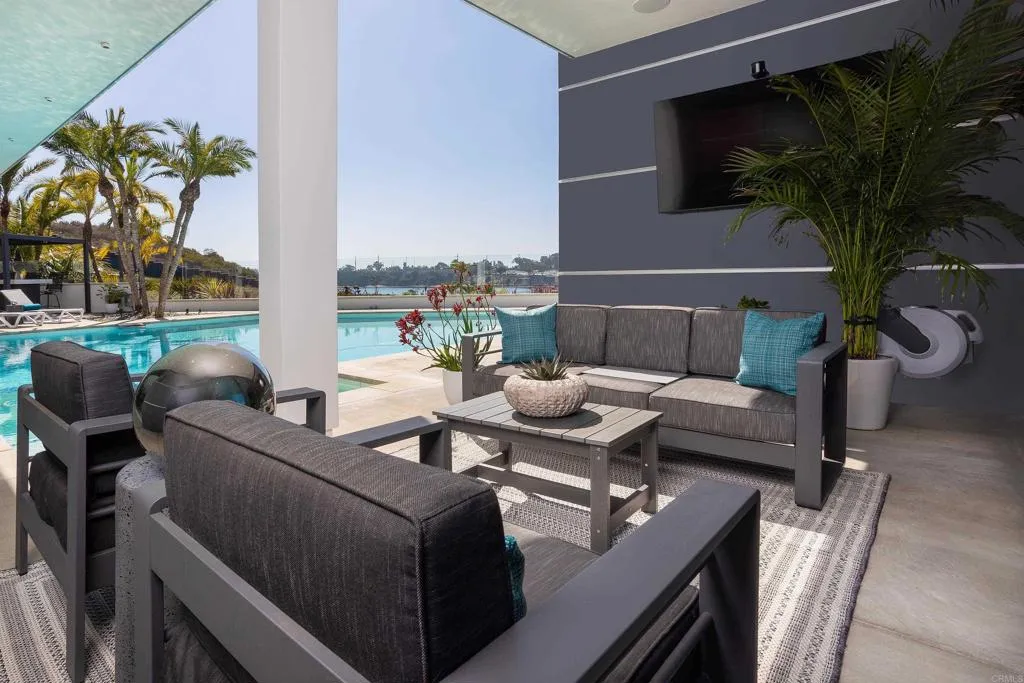 Experience the pinnacle of luxury living with this modern, custom-built waterfront estate nestled on the tranquil lagoon in Carlsbad. Boasting unparalleled views of the lagoon and ocean, this architectural masterpiece is designed to impress at every turn. Floor-to-ceiling windows bathe the interiors in natural light, highlighting soaring ceilings and sleek contemporary lines that define the homes sophisticated aesthetic. Step inside and be captivated by the state-of-the-art kitchen, equipped with premium stainless-steel appliances, a large center island, and seamless transitions into the spacious dining area and family room. Expansive sliding glass pocket doors open to your private backyard retreat, where a sparkling pool with in-water bar seating takes center stage. To further an entertainer's dream, this outdoor paradise also features a fully equipped BBQ, a firepit, a poolside shower, private outdoor bathroom, and a professional chef's garden all set against breathtaking lagoon and ocean vistas. The second level unveils a versatile grand loft and a luxurious primary suite that redefines indulgence. Complete with two oversized walk-in closets and a spa-like en-suite bathroom, the primary suite offers both comfort and style. Four additional bedrooms provide ample space for family or guests, while expansive decks on this level offer some of the most unparalleled panoramic views imaginable. Adding to the allure is an attached guest house, thoughtfully designed with its own kitchen, living room, bedroom, and bathroom the perfect haven for extended family or visitors. The pro