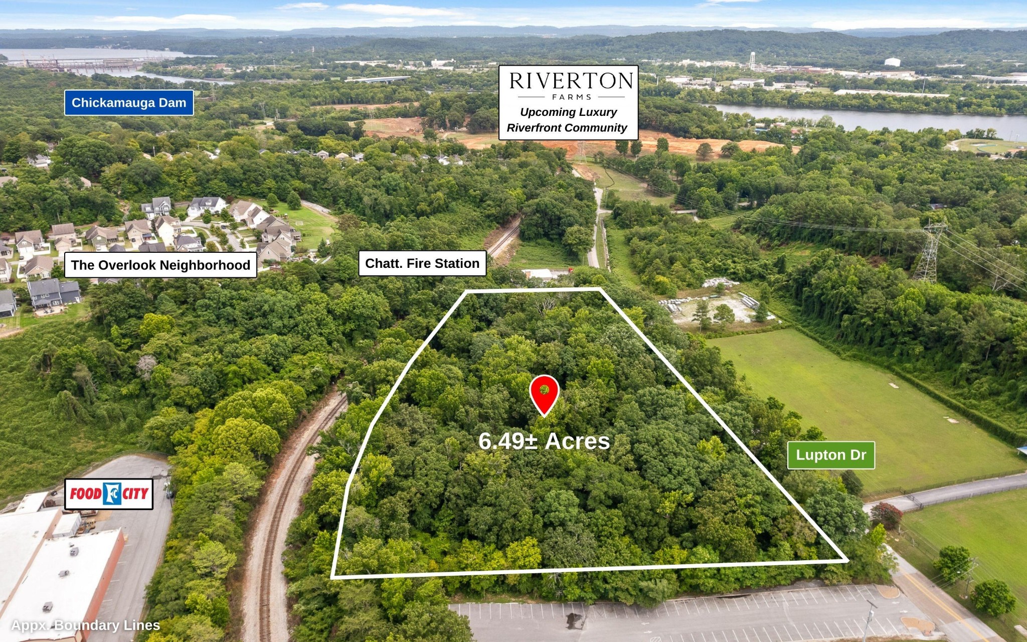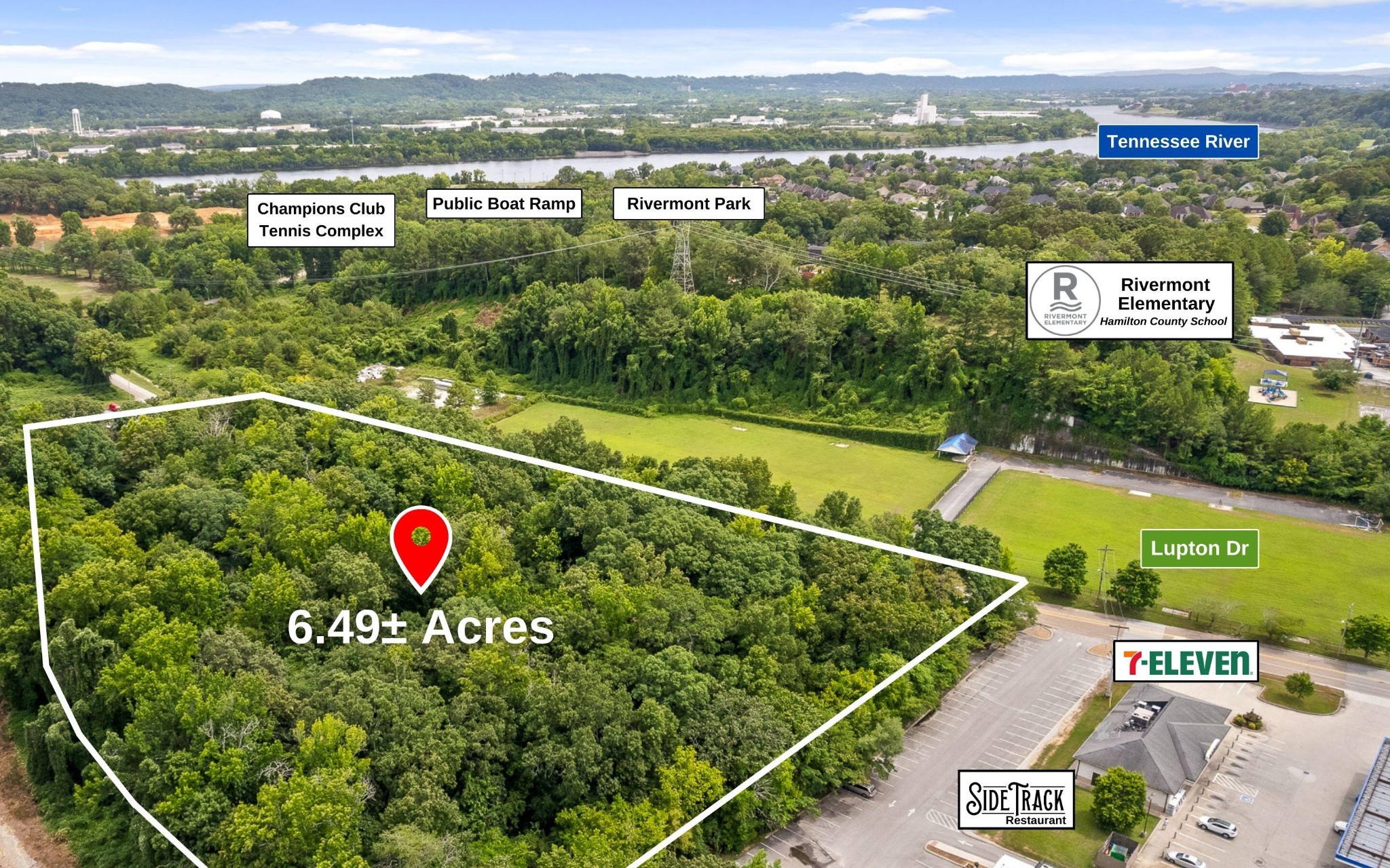 RESIDENTIAL MULTI-FAMILY DEVELOPMENT OPPORTUNITY - Anticipated updated zoning to RN-3 allows for potential density of 297 units. - 10 Minutes to Downtown Chattanooga, walkable to restaurants and recreation! Add to your investment portfolio, develop, or hold through the build-up of surrounding properties. 6.49± acres, conveniently located within the City. Flexible multi-family zoning offers an opportunity for single family homes, townhomes, apartment complexes, and more. Just off well-traveled Hixson Pike, owners will note the proximity to Downtown Chattanooga and Hixson areas for dining, shopping, medical, education, and entertainment needs. Offering 804± feet of road frontage on Lupton Drive, with sewer, power, and Fiber Optics connectivity. Utilize this 6.49± acres to develop up to 297 multi-family units.* Located across from Rivermont Park ball fields, tennis courts, pavilion, and PUBLIC BOAT RAMP! Short 1-minute drive to Champions Club Tennis Complex and the new Lupton Mills Meadow, a 12-acre city park with walking trail. 5 minutes to the luxurious Riverview estate community. Nine minutes from popular North Shore offerings including Coolidge Park, Renaissance Park, the Walnut Street Walking Bridge, Hunter Museum of Art, and Bluff View Art District. Dining out is made easy here with walkable SideTrack Restaurant, 5 minutes from North Shore favorites like Il Primo, Daily Ration, and Tremont Tavern. Grocery options nearby include Food City and Wal-Mart Neighborhood Market. Big box stores including Target, Lowe's, The Home Depot, shopping, and dozens of local and national chain restaurants, all less than 10 minutes away. Commutes made easy = 12 minutes to I-24, 14 minutes to CHA Airport, and 18 minutes to I-75. 11 minutes from the University of Tennessee at Chattanooga's campus and within 10 minutes of