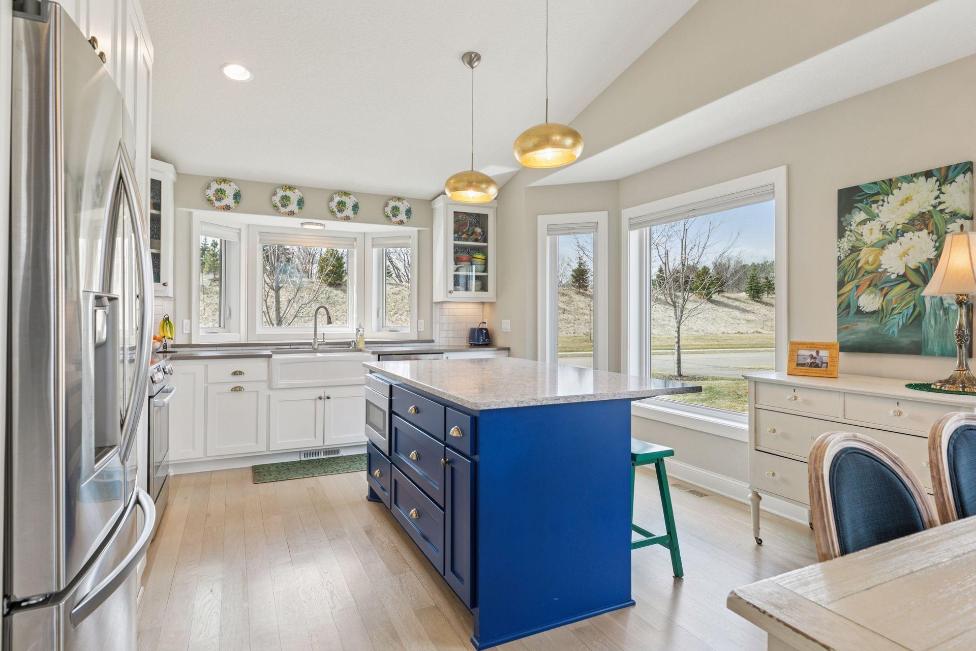 Step outside to a maintenance-free deck overlooking expansive wetlands, offering peaceful views and daily wildlife sightings. The walkout lower level features a massive screened-in patio, ideal for entertaining or relaxing in the fresh air. With quality finishes throughout, spacious living areas, and low-maintenance living, this home offers the perfect blend of comfort, nature, and convenience—all in a sought-after Blaine location.