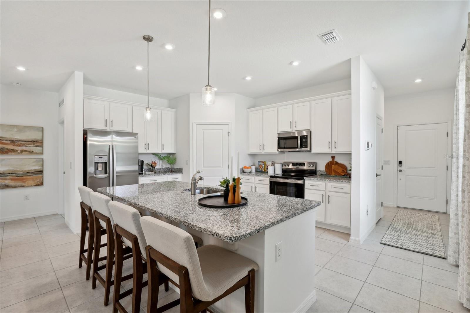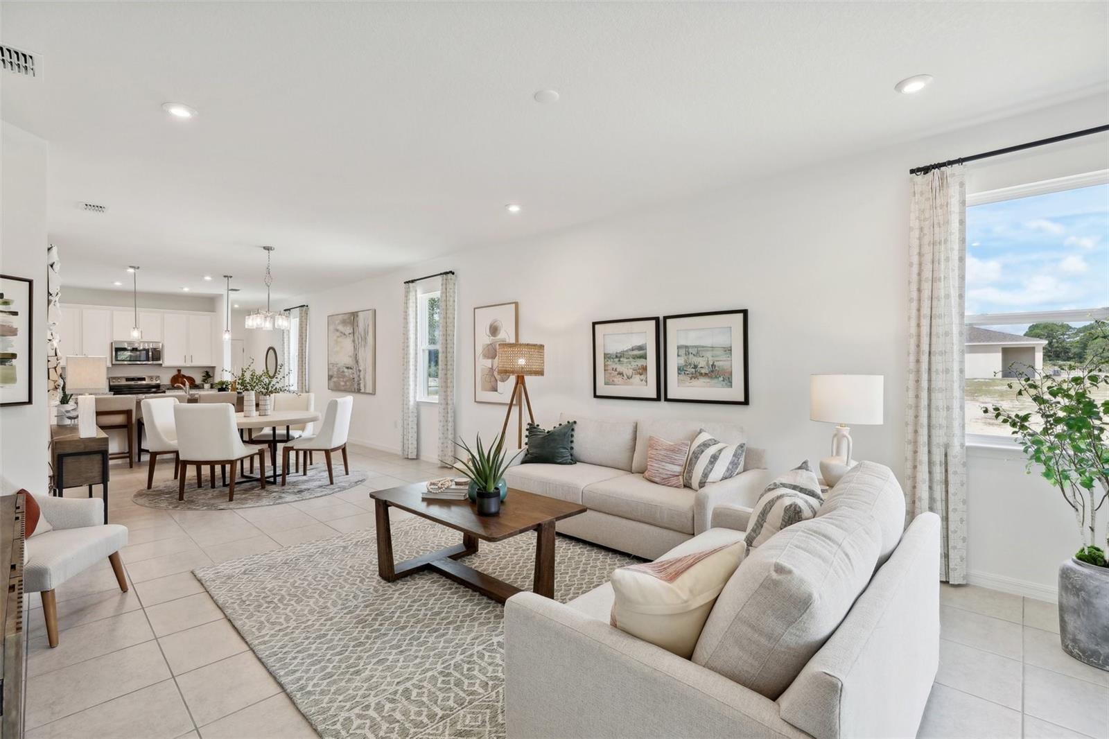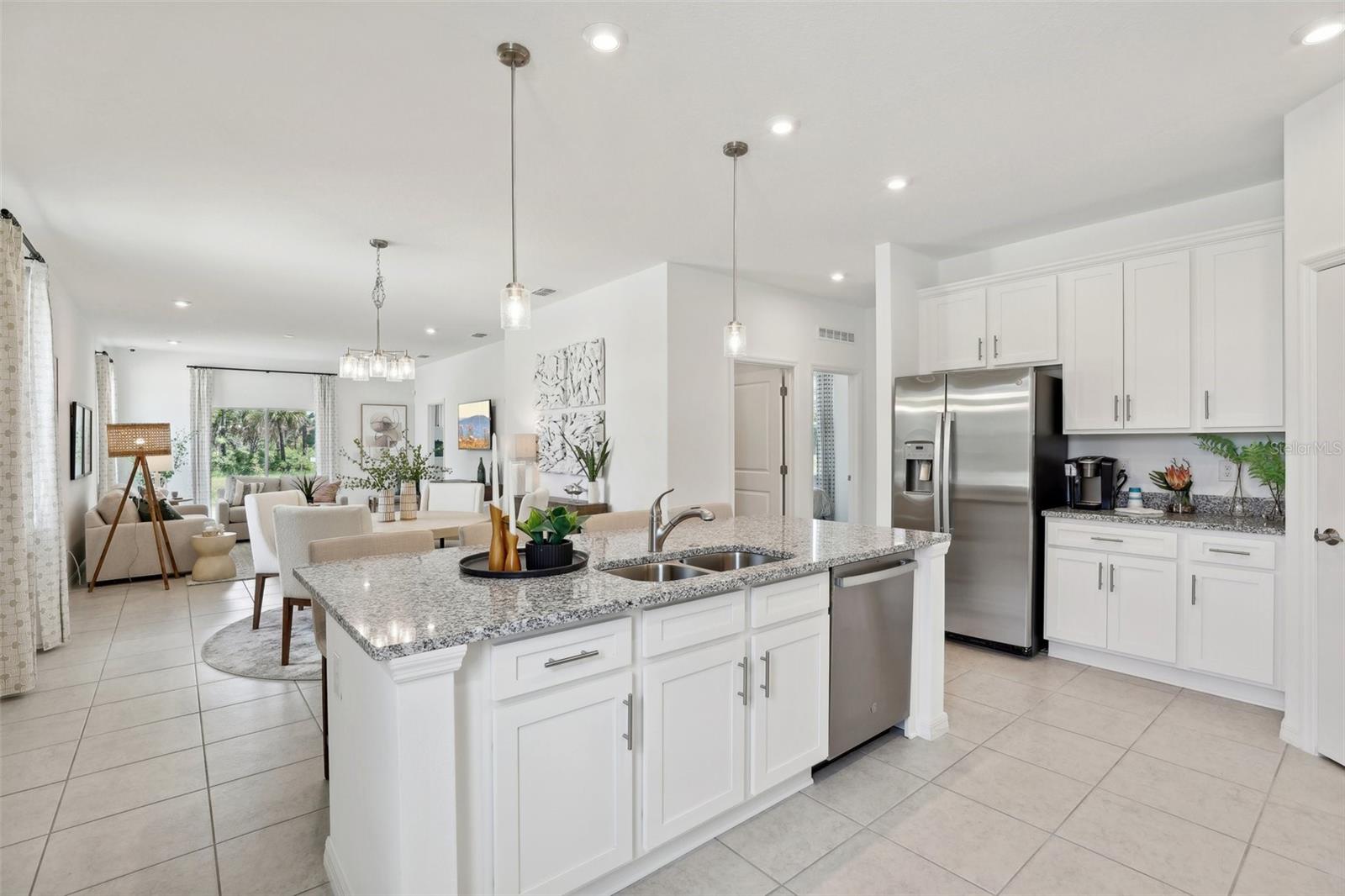 You'll be delighted with all the thoughtful details of this single-family home. An open floor plan, spacious bedrooms, and a gorgeous master suite create a home perfect for entertaining and making the most of every day. From the inviting front porch, a foyer leads to a large kitchen with an adjoining dining room and family room, perfect for entertaining. The open-concept kitchen is equipped with modern appliances, a beautiful center island, and a large pantry, and the covered lanai is the perfect spot for an evening cocktail or morning coffee. Tucked behind the main living area, you'll find a master suite with a huge walk-in closet and dual vanities, as well as two more bedrooms that share a full bathroom. The open layout of this home allows you to enjoy the ease and convenience of single-story living in a stylish, cozy, and modern home.