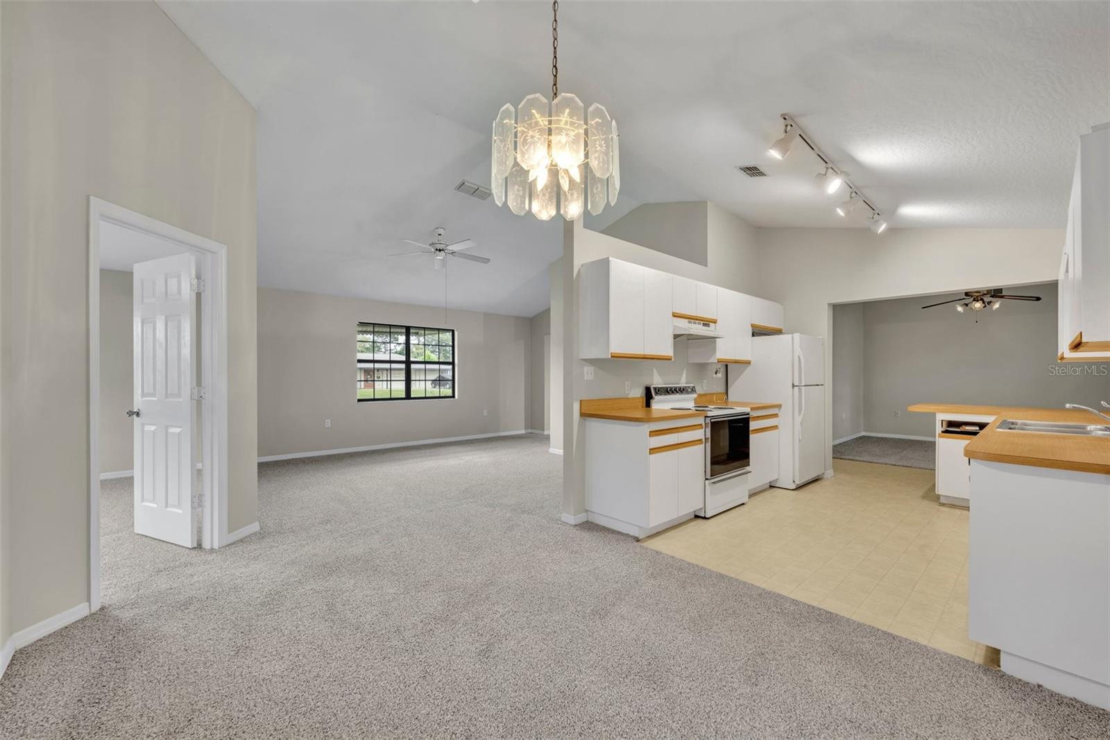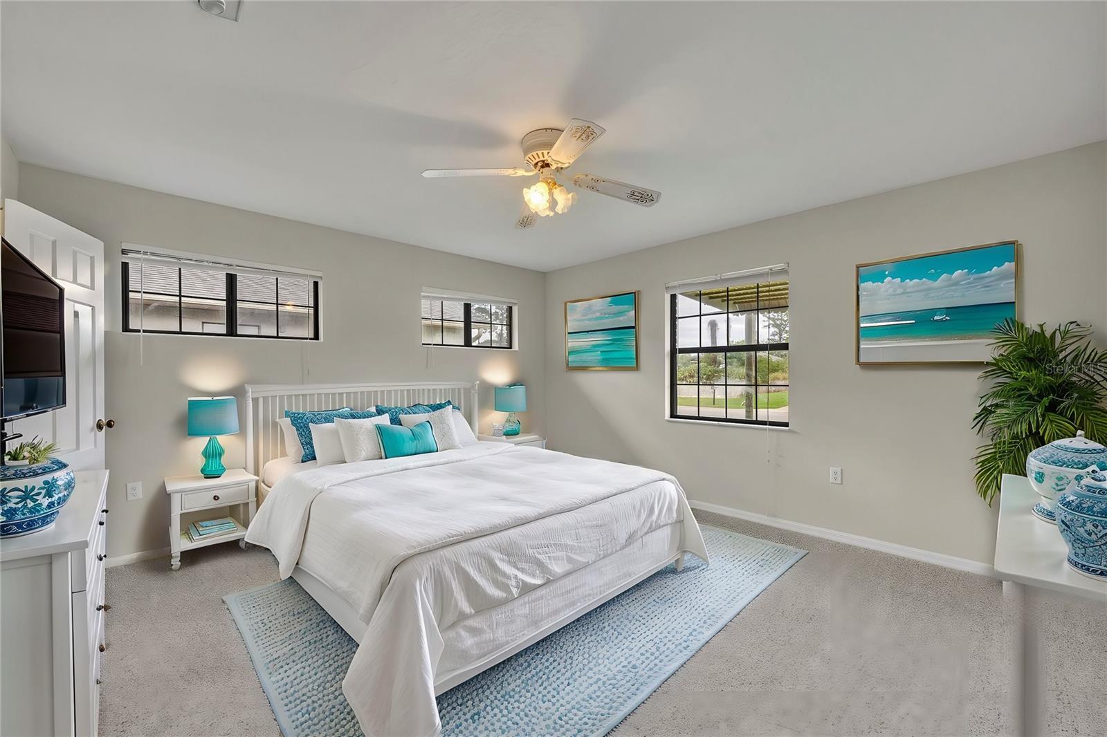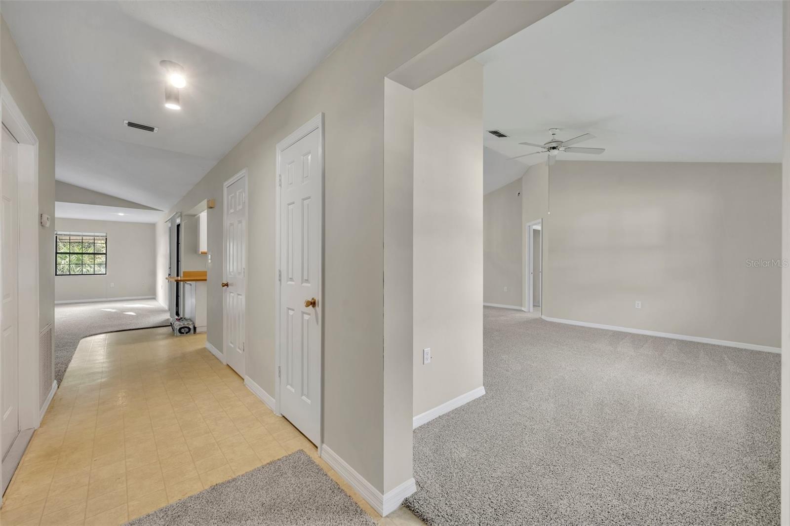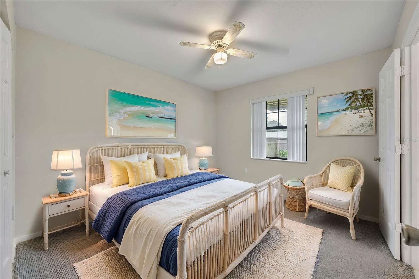Step through my front door, and you’ll immediately notice my **soaring high ceilings**, giving every space an open, airy feel that lets the Florida sunshine pour in. My **great room** is the heart of the home—a spacious, inviting area where you can gather with family and friends, binge your favorite shows, or just stretch out and enjoy the coastal breeze from my ceiling fans. With my **split-bedroom floor plan**, everyone gets their own slice of comfort and privacy—whether it’s for peaceful sleep, productivity, or simply kicking back in your own space.