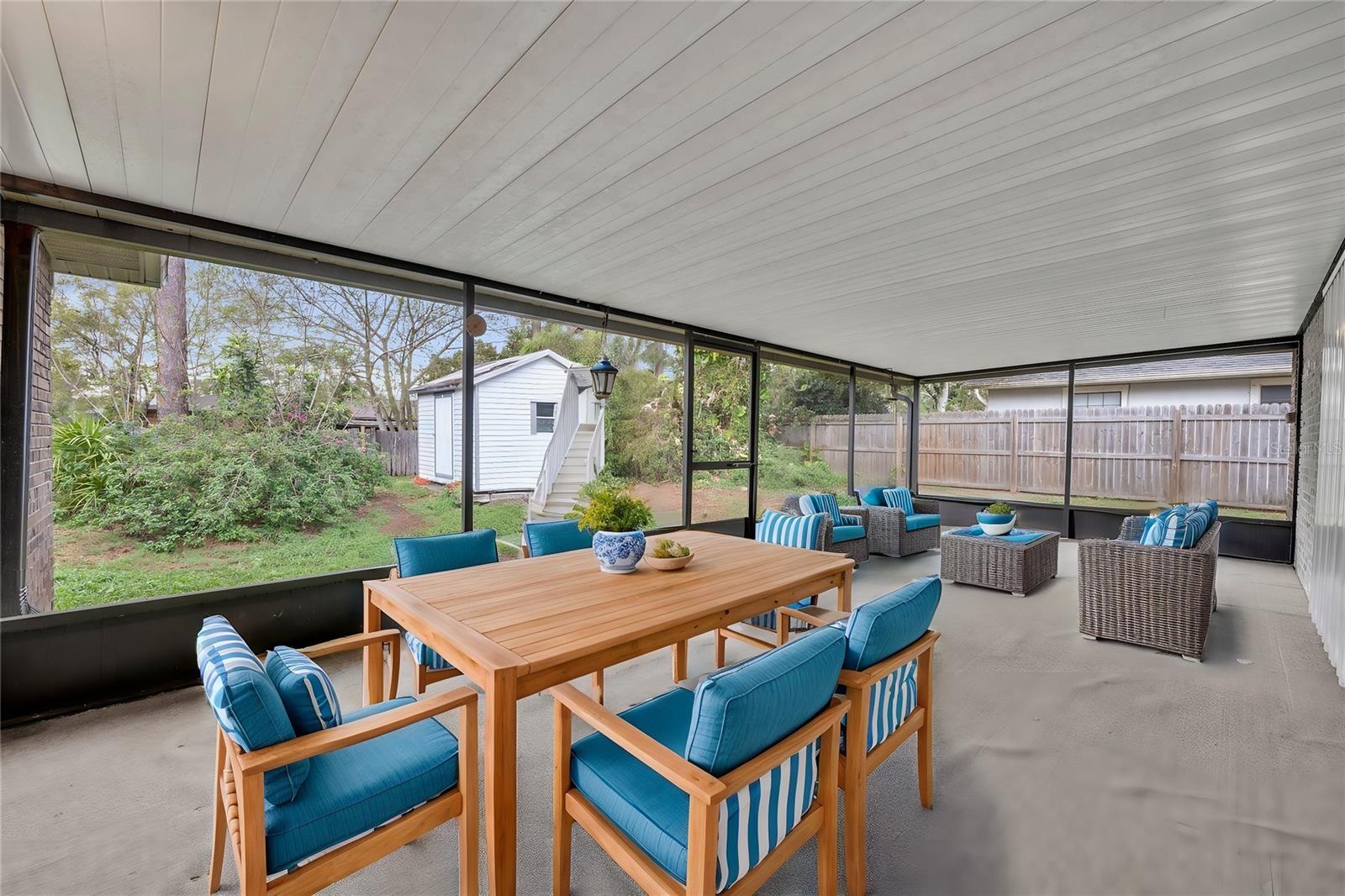 Now, let’s talk about entertaining—because I was built for it! My **half-bath** is conveniently located for guests, so no one has to wander into your private spaces. And when the party moves outside, my **huge, fully screened-in back porch** is where the magic happens. Picture yourself unwinding with a cold drink, firing up the grill, or just sinking into a comfy chair as you soak in the famous **Florida lifestyle**—all without a single mosquito crashing the party!