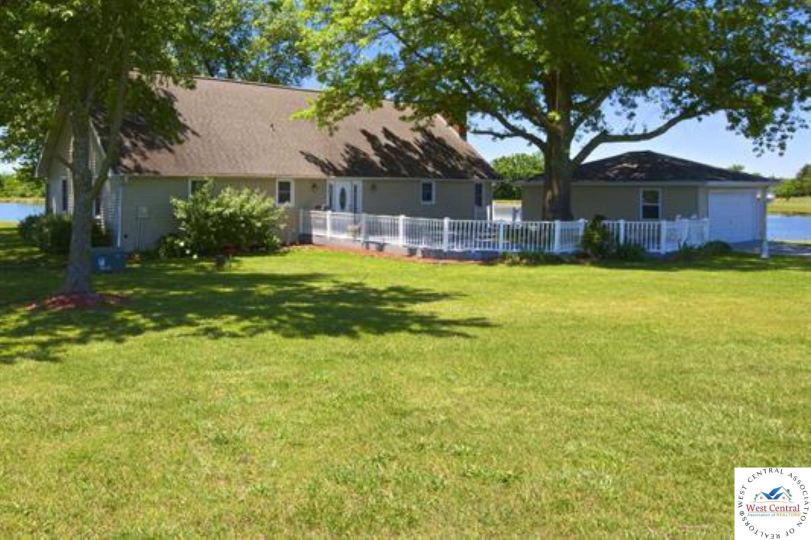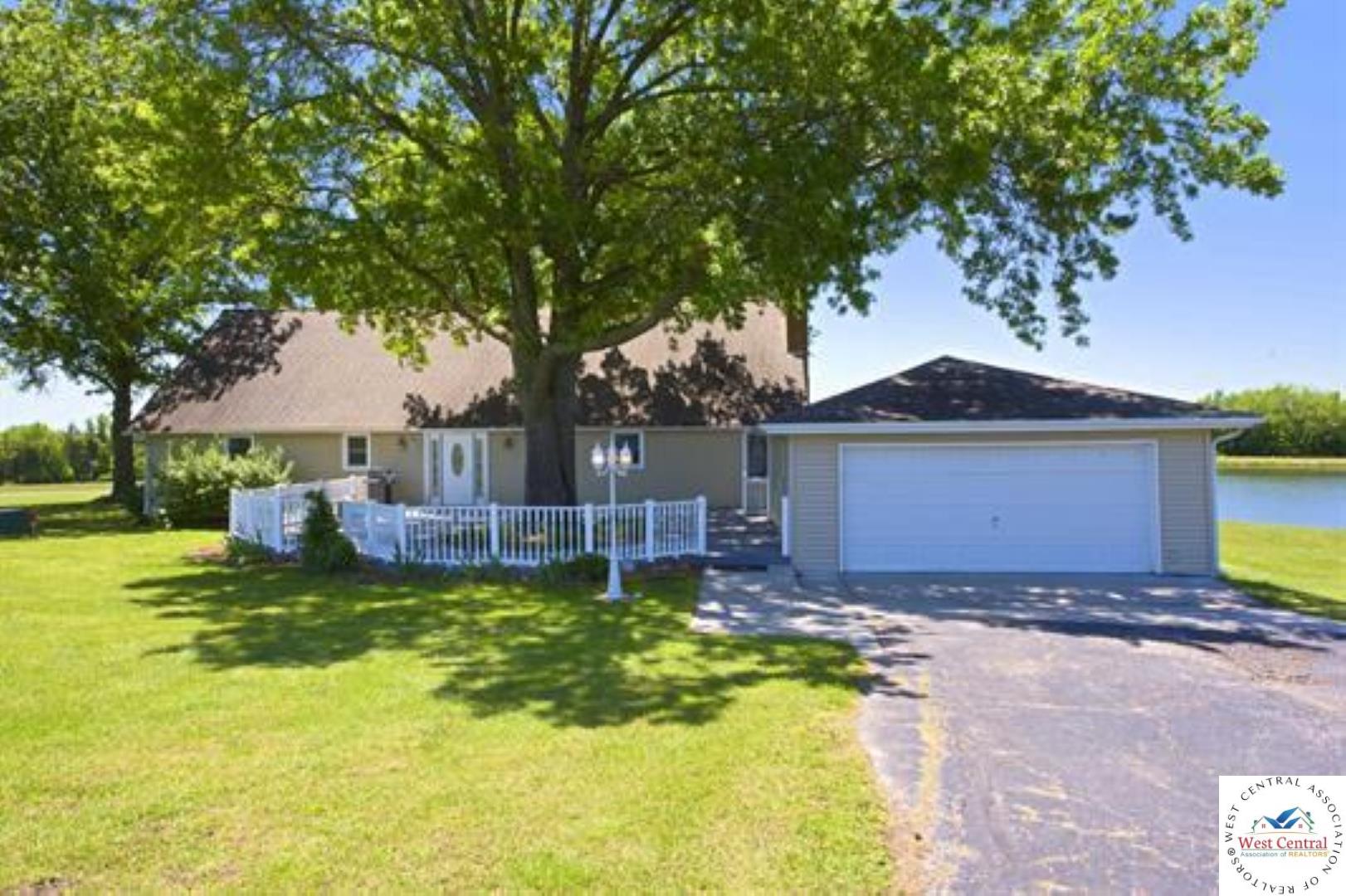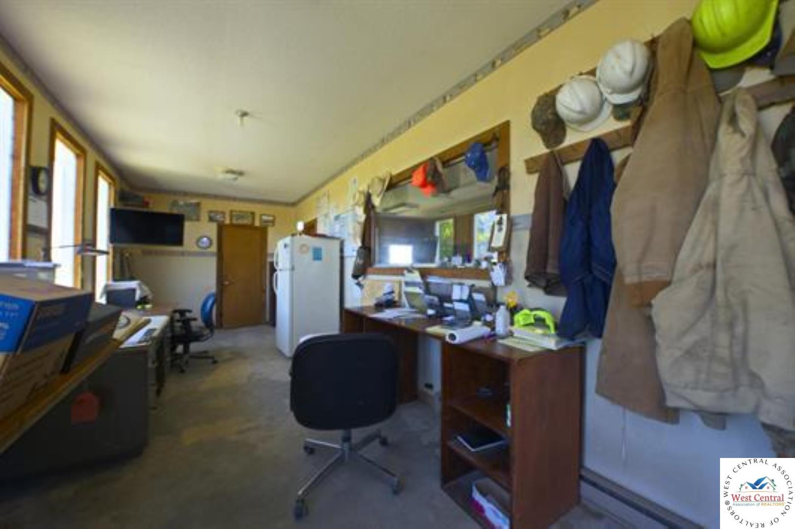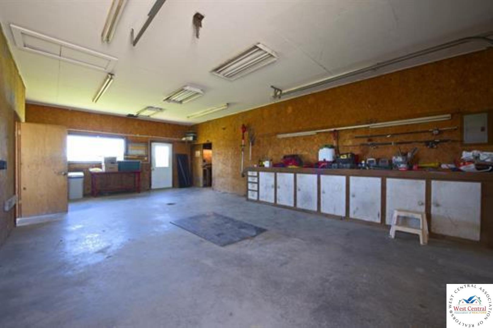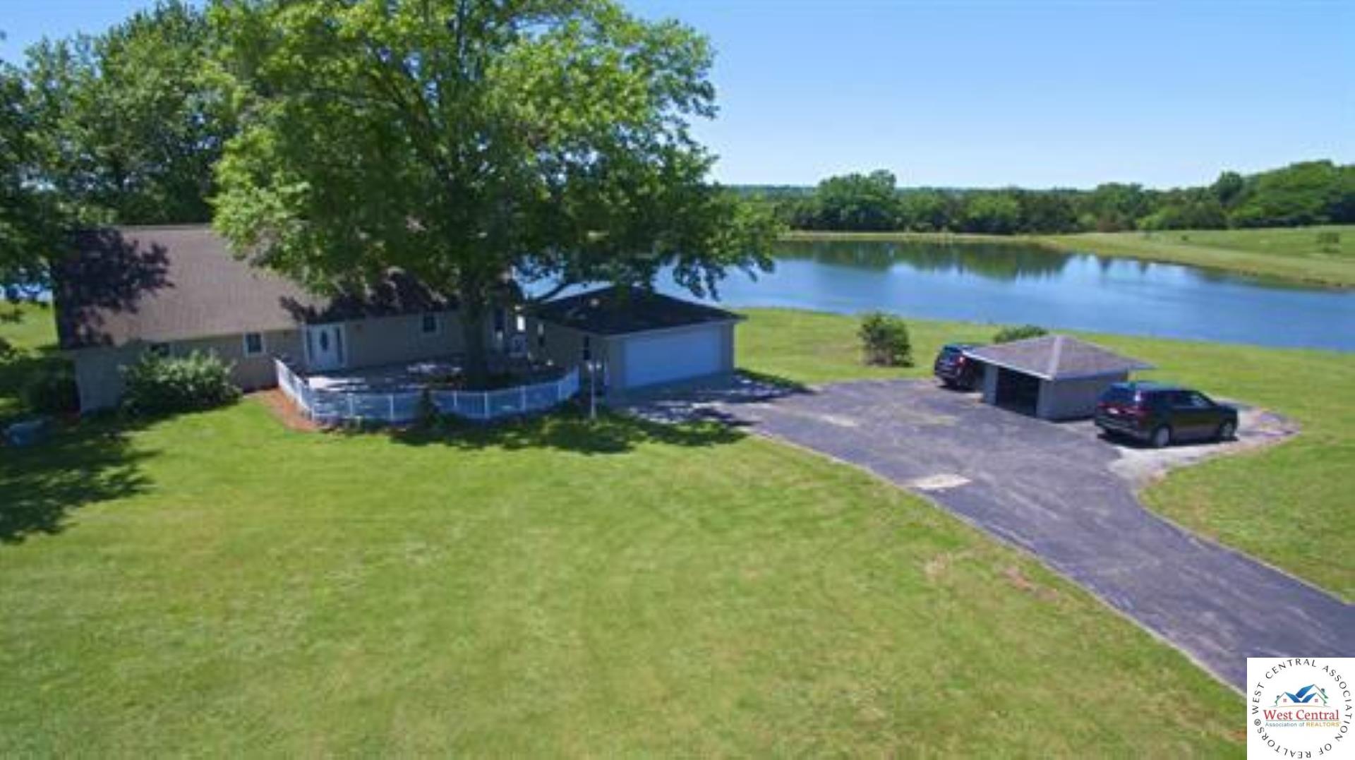 10'x12' small lawn mower building 22 1/2x24' detached garage 9 1/2 x 31 Office with 1/2 bath 34'x80' shop with 5 bays with 4 - 12'x12' doors and 1 - 8'x9' overhead door. 11 ACRE COUNTRY ESTATE with 4 1/2 acre stocked lake. Over 2900 sq. ft. in 1 1/2 story home with decks on 3 sides and overlooking the lake. 3 bedroom, 2 baths, and 2 fireplaces. Open concept great room - living room, kitchen, dining room and family room. Lots of storage. Full basement, detached 22x24 garage, Front of property has 29'x40' office or can be residential building - exterior is finished but interior is studded in, not finished.