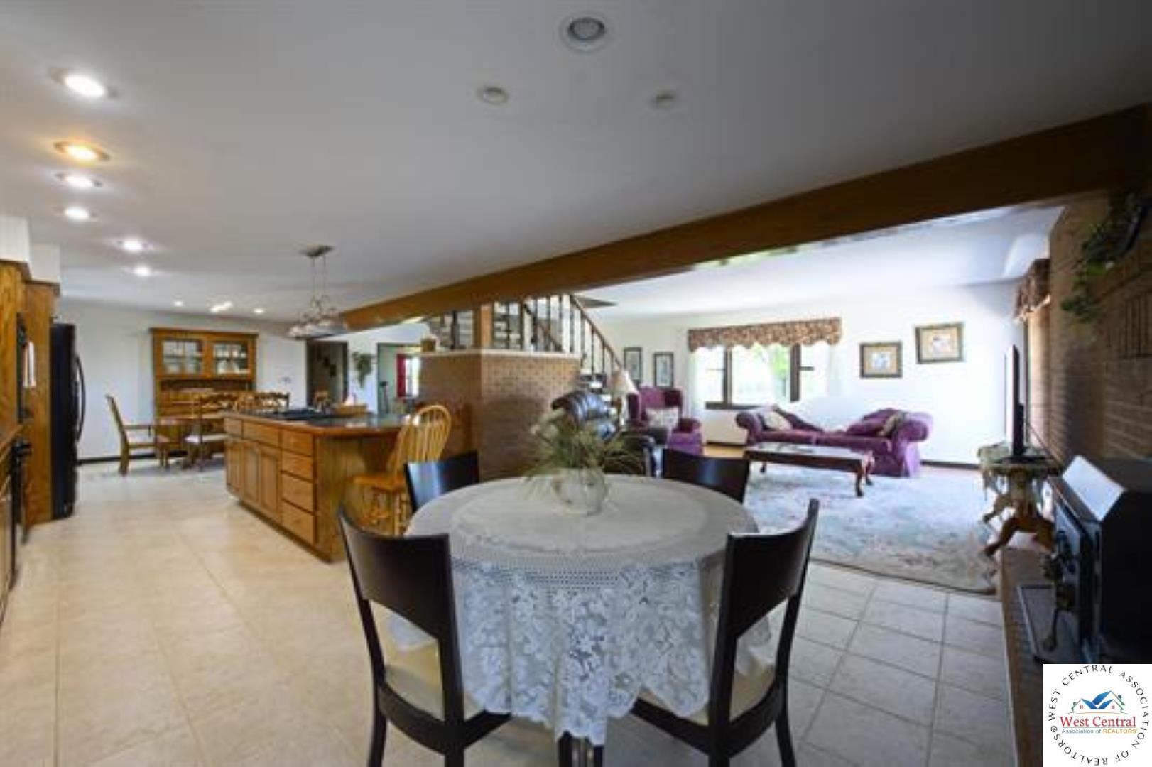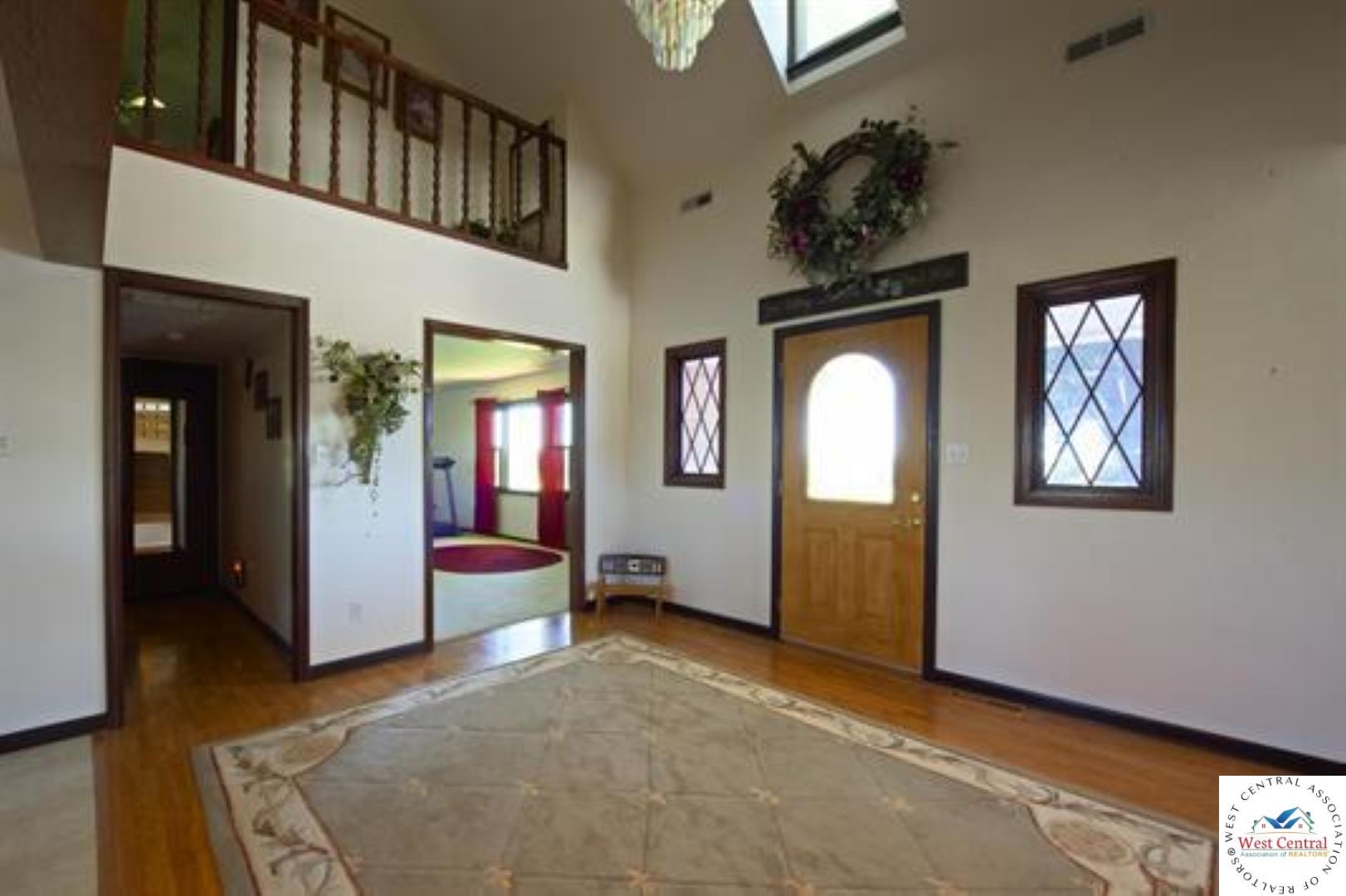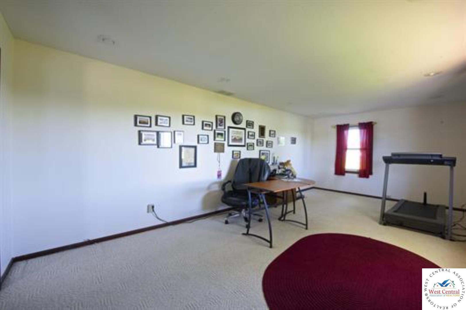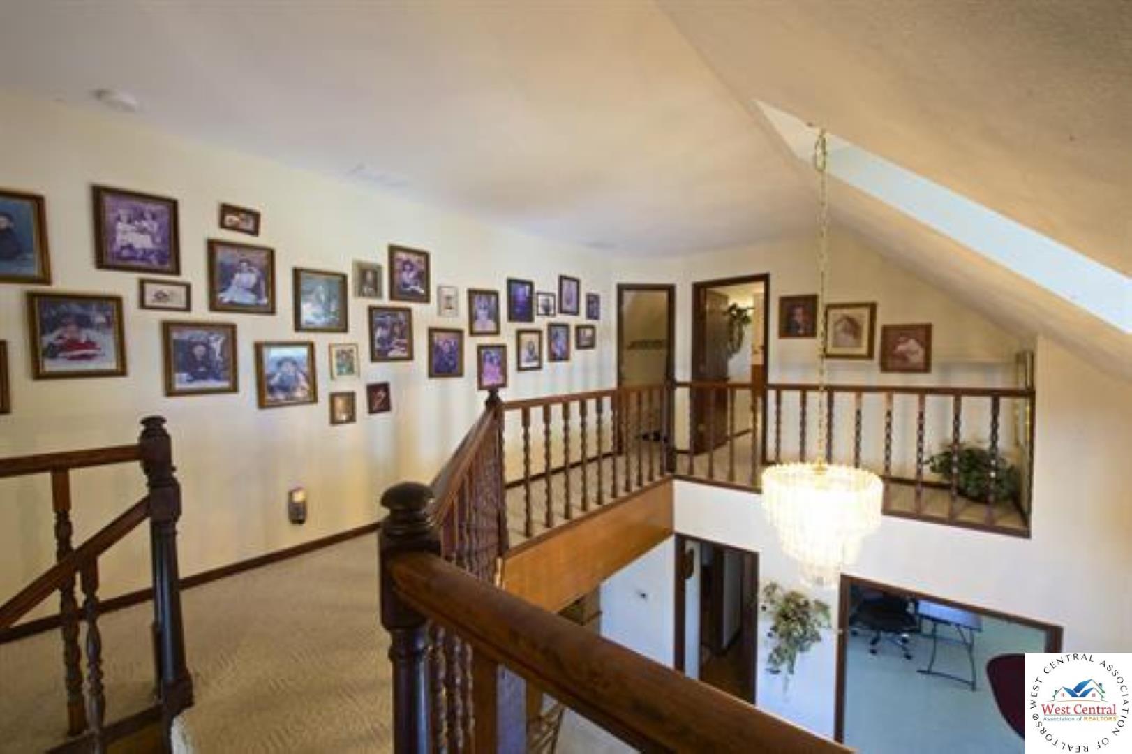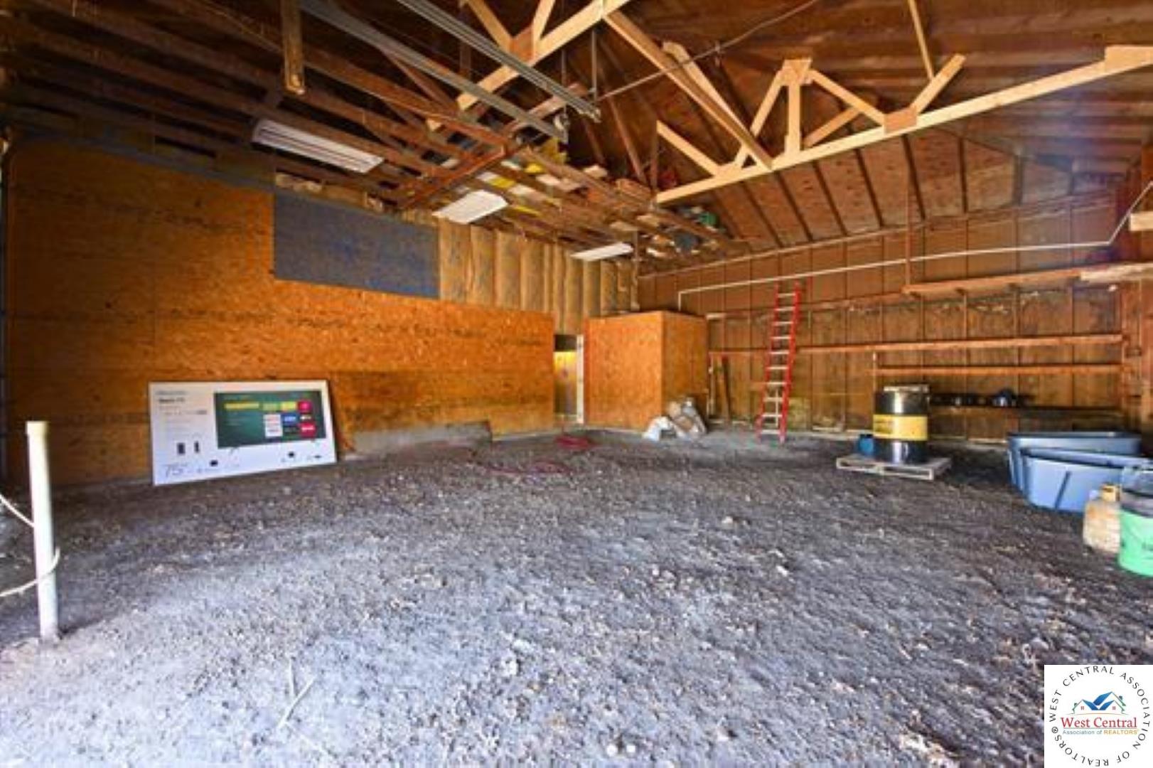 10'x12' small lawn mower building 22 1/2x24' detached garage 9 1/2 x 31 Office with 1/2 bath 34'x80' shop with 5 bays with 4 - 12'x12' doors and 1 - 8'x9' overhead door. 11 ACRE COUNTRY ESTATE with 4 1/2 acre stocked lake. Over 2900 sq. ft. in 1 1/2 story home with decks on 3 sides and overlooking the lake. 3 bedroom, 2 baths, and 2 fireplaces. Open concept great room - living room, kitchen, dining room and family room. Lots of storage. Full basement, detached 22x24 garage, Front of property has 29'x40' office or can be residential building - exterior is finished but interior is studded in, not finished.