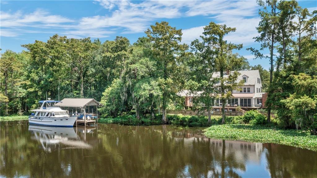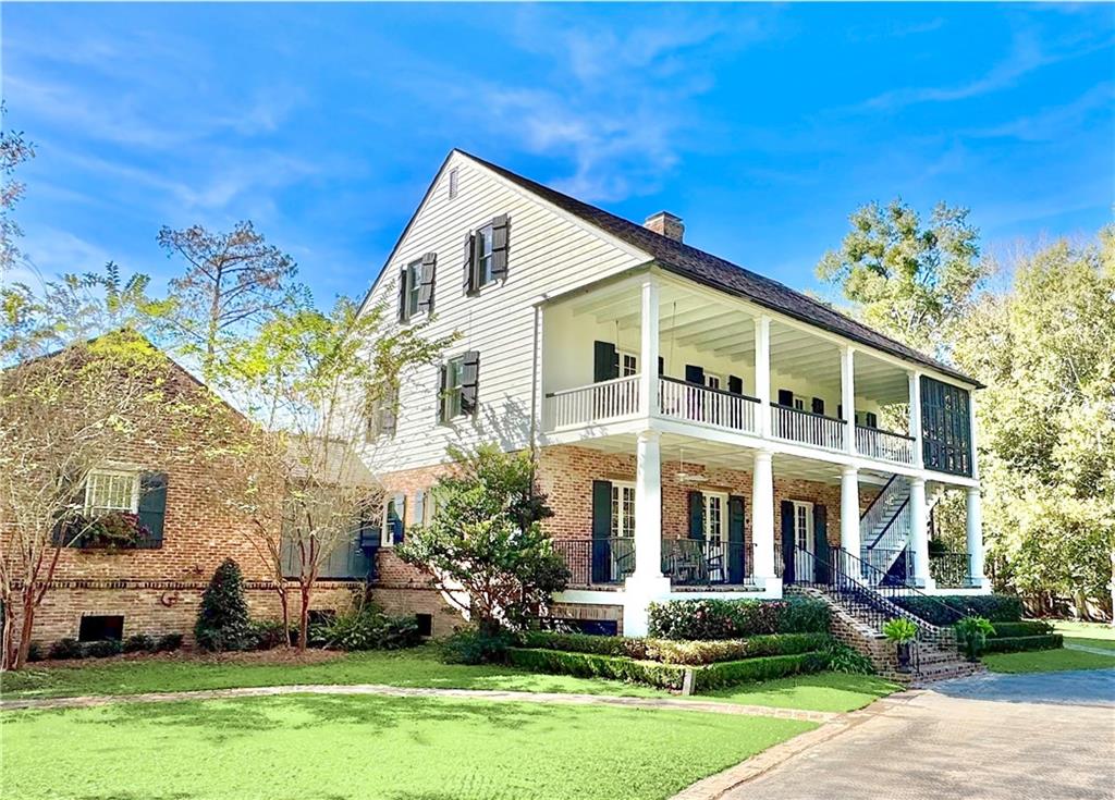 A rare opportunity to acquire one of only a handful of authentic A. Hays Town-designed homes in the Covington area, bearing a plaque from the Foundation for Historical Louisiana identifying it as an “Original Hays Town.†A gated entry ensures utmost privacy, with a drive that meanders past a tranquil pond. Situated on +/- 4.3 acres overlooking the serene navigable Sheriff Bayou leading to the Tchefuncte River, offering unparalleled native land- and water-scape views, and a boat dock with electric lift. A saltwater pool and oversized patios flank the waterfront, providing a spectacular setting for entertainment or relaxation. Reminiscent of a way of life that goes back to Louisiana's roots, this magnificent home presents design elements that include massive antique beams, antique heart of pine and old brick flooring, breezy balconies, stately columns, French doors and a fabulous slate roof. The current owners undertook a significant renovation presided over by the architect George Hopkins, in which the home was raised 5' and in which antique and reclaimed materials were carefully curated in keeping with the original aesthetic. An architecturally symbiotic small barn and workshop were constructed, and a classic Pigonierre serves as a chicken coop! A generator offers peace of mind during storm season. This classic A Hays Town floorpan includes a convenient and functional third floor with living area, bedroom, bath and kitchenette, superb for guests, boomerang kids or an Au Pair. A short 30 minute boat ride to the Mandeville Lakefront festivities and restaurants!