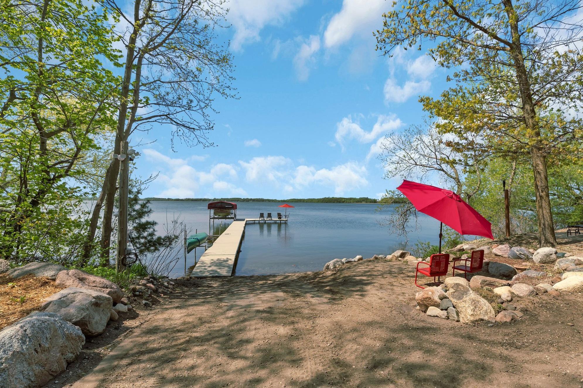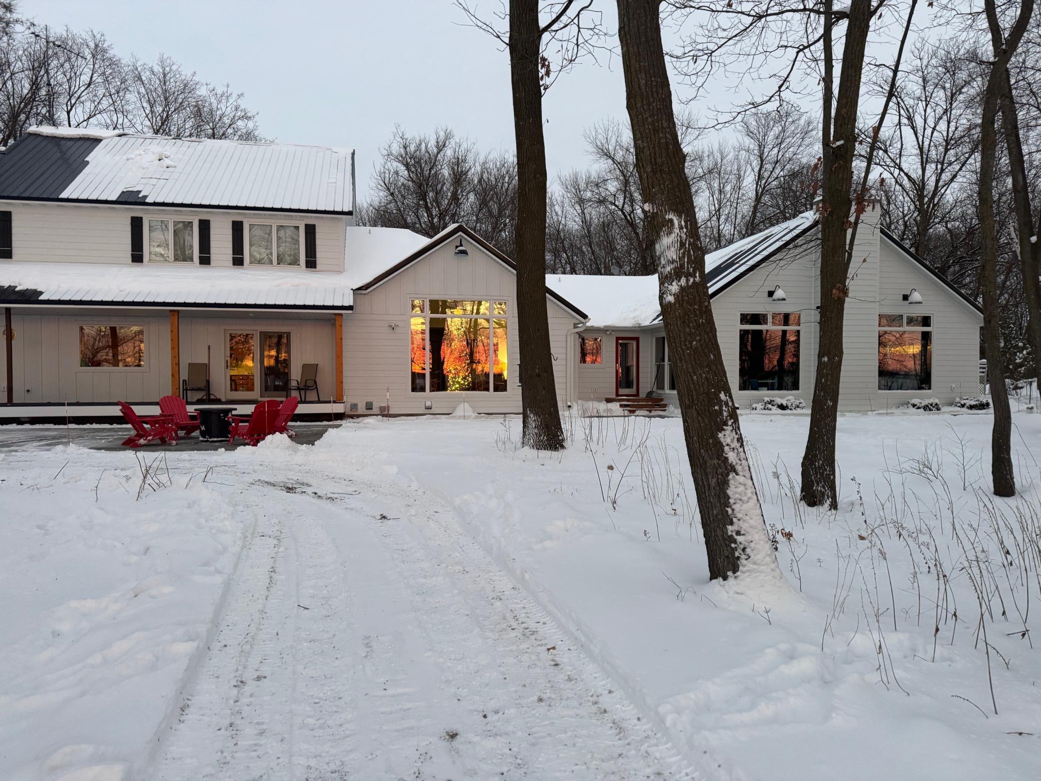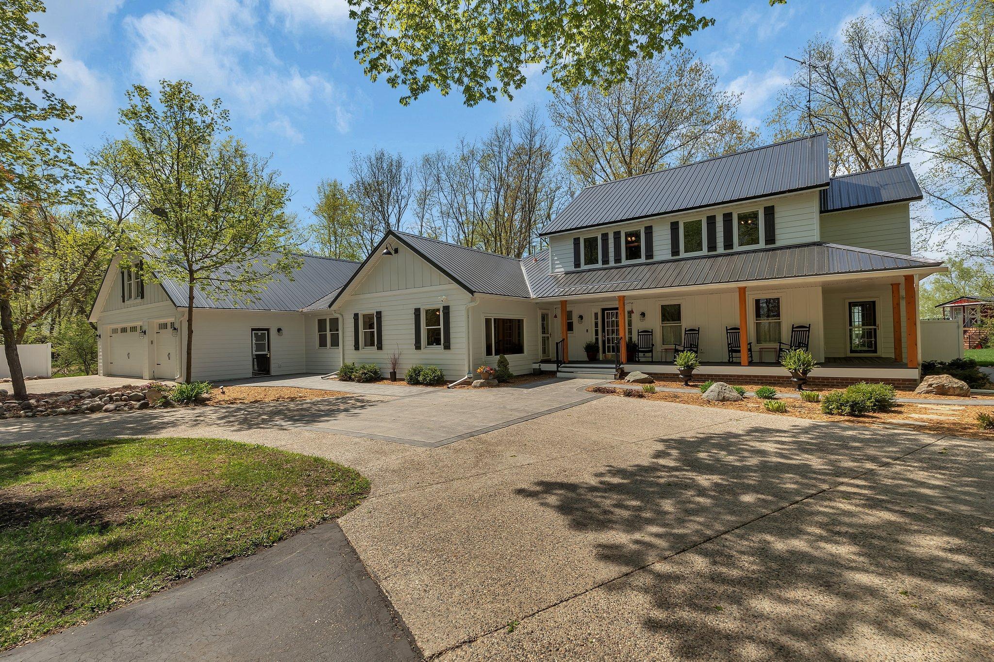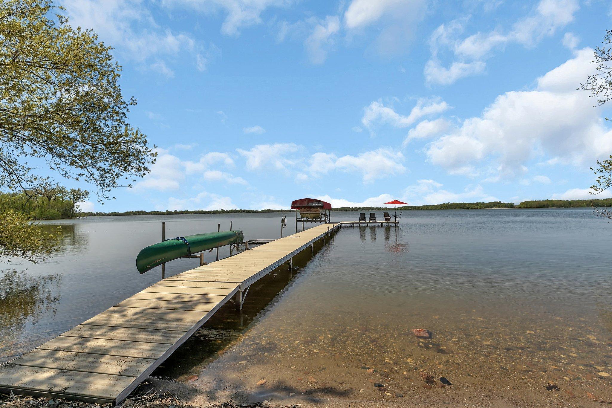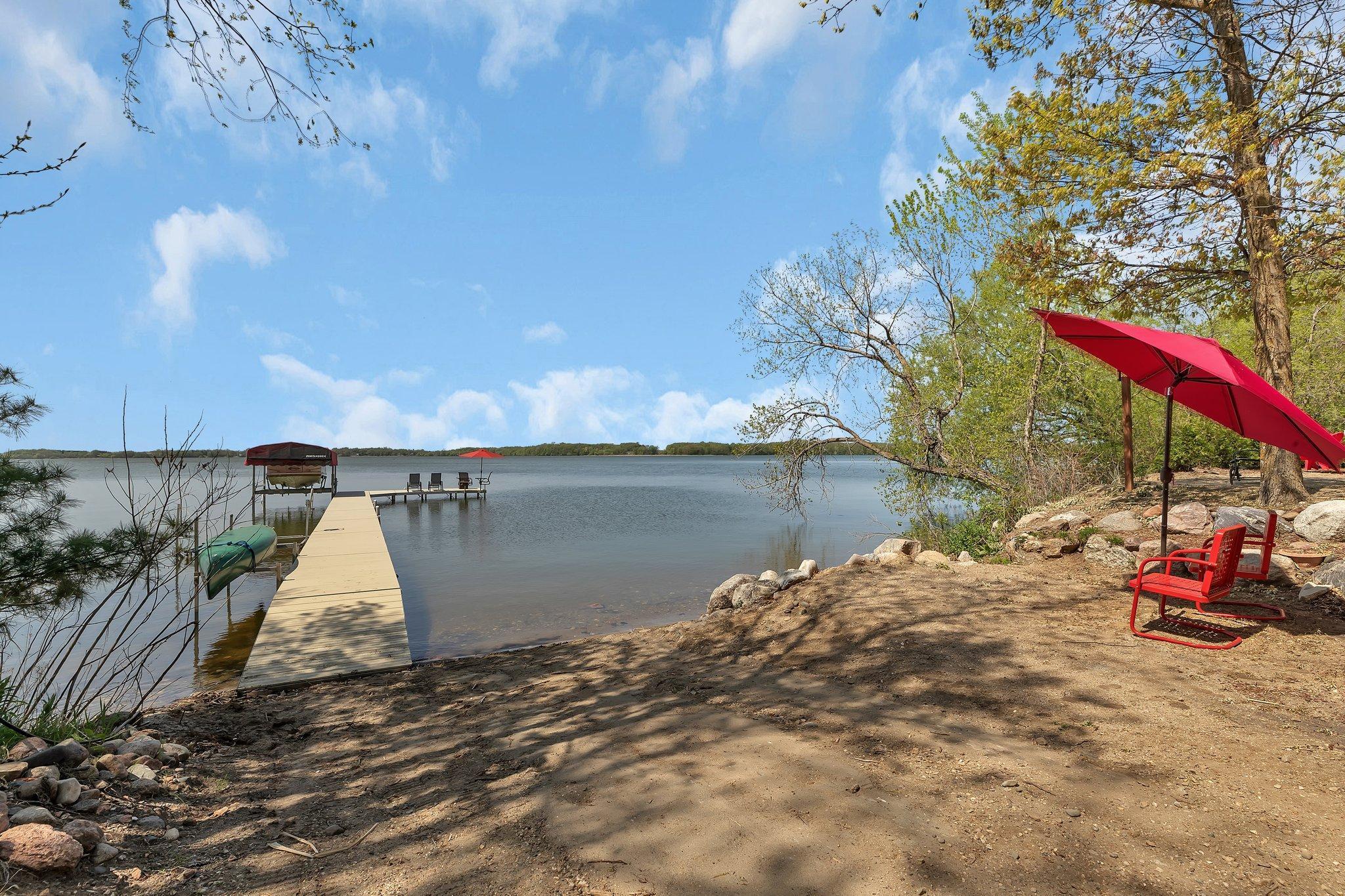 Everything you desire in lake living! Stunning sunsets! Reel Walleye in from the dock! Level lot leads gently to the sand beach. Lakeside paved patio, pool & pool house. Secluded location, quiet dead end paved road. Mature trees. New windows, siding, steel roof, patios, landscaping, quartz countertops & more! Open design flows between indoor to outdoor living spaces. The kitchen features a generous quartz-topped island, ensuring that the kitchen is indeed the heart of the home. The adjoining dining opens to the spacious porch & paved patio, inspiring gracious meals and entertaining. Holidays are a breeze: double induction oven & convenient 2nd under-the-counter oven! Living room offers floor-to-ceiling lake view windows & first fireplace. The Great Room transports you 'up north'! The log siding and wood-burning fireplace creates an environment sure to relax you. An upper level fifth bedroom and family room or den adjoins the great room, offering a secondary primary/guest room or Airbnb opportunity. Upstairs you will also find the spacious owner's suite with a full private bath & lake views, and the 2nd full bath as well as three more bedrooms, two of which have private vanities. The expansive office suite with a private entrance is perfect for the entrepreneur or for those who work remotely. Conversely, this area could be converted to a main floor bedroom suite/auxiliary living unit, game/billiards/bar, exercise room or even additional garage stalls. This home was built with quality elements, with an R value of 57 and ICF concrete forms that can withstand over 300 MPH wind. Attached three-stall heated garage with workshop, and a second detached one-stall 12x24 garage. 60 minutes from the west metro.