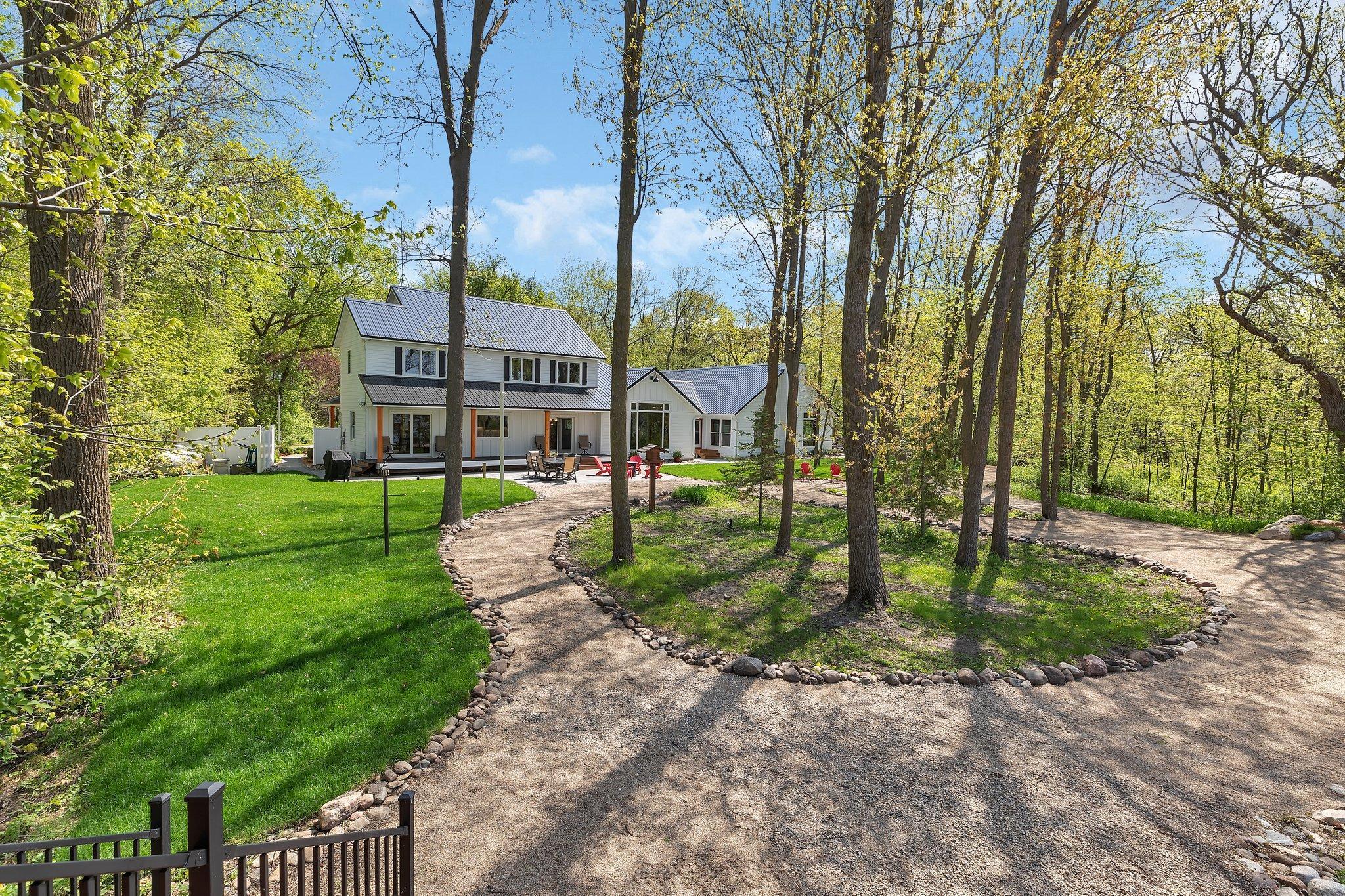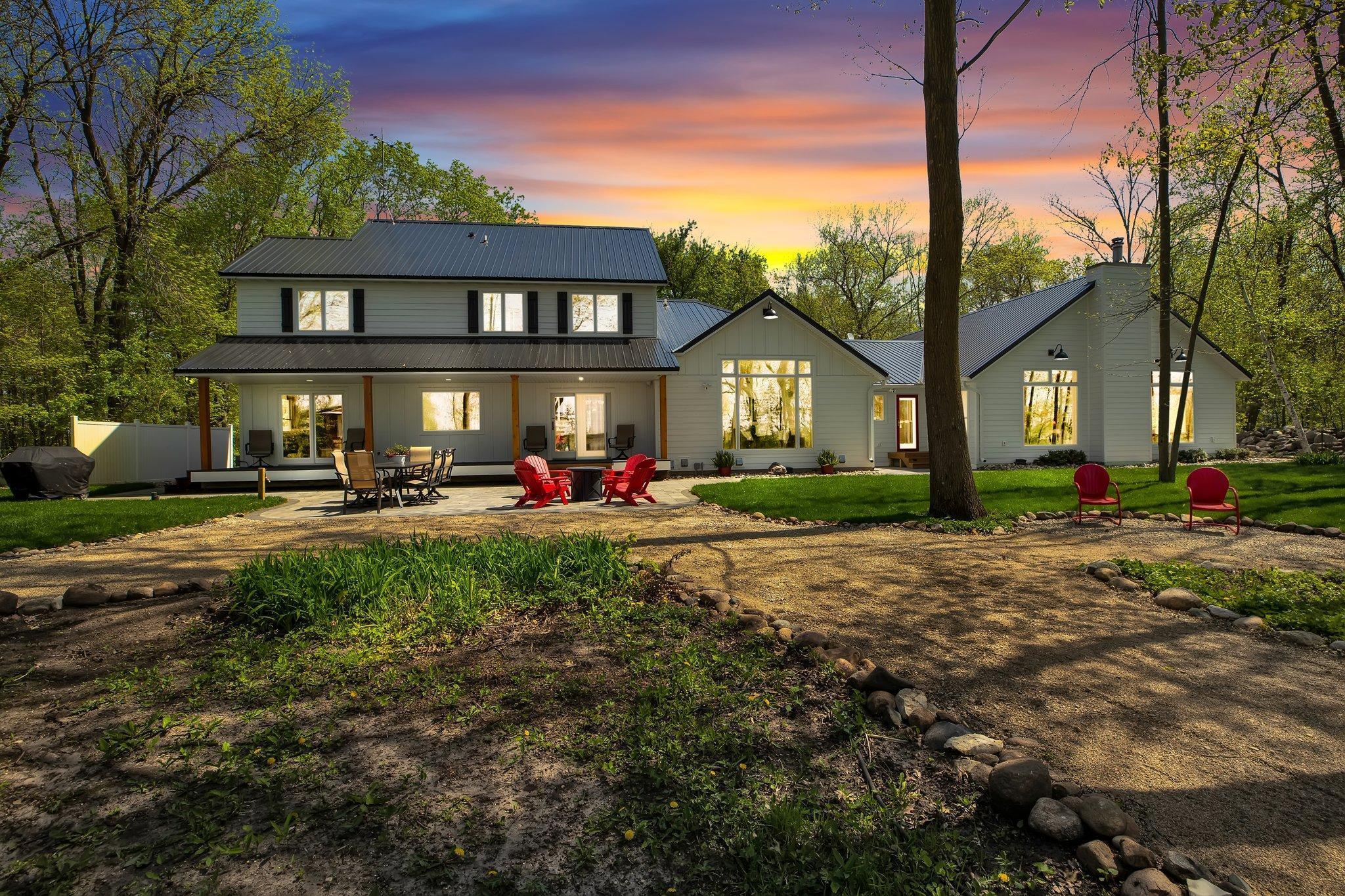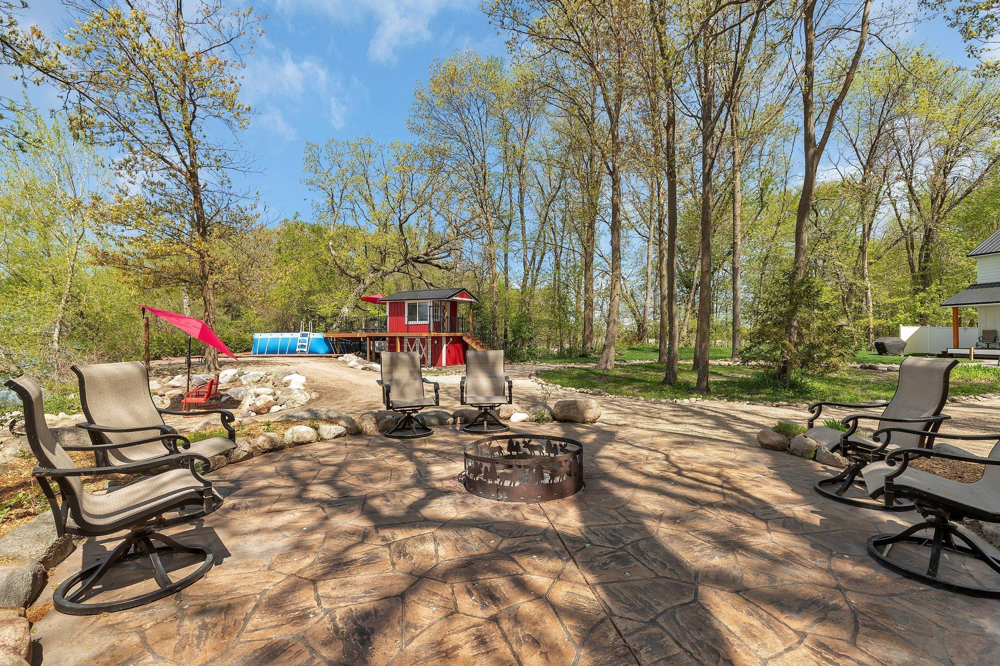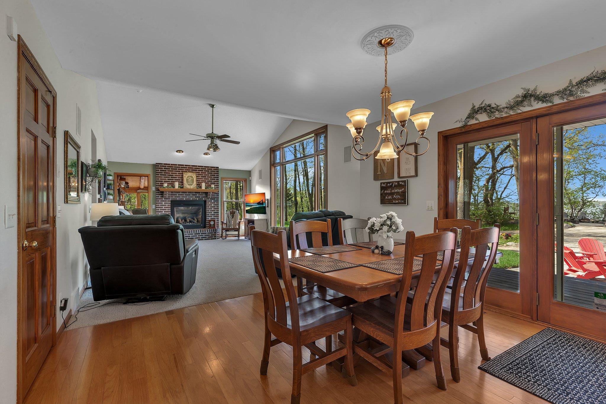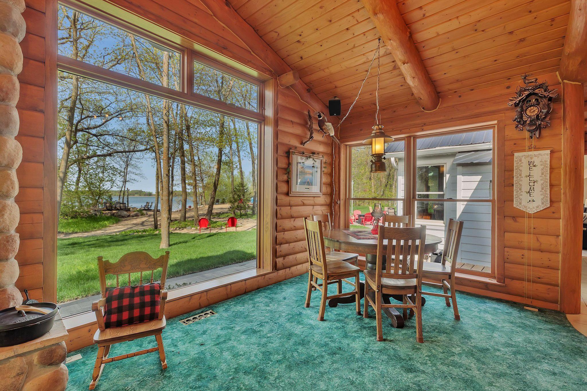 Everything you desire in lake living! Stunning sunsets! Reel Walleye in from the dock! Level lot leads gently to the sand beach. Lakeside paved patio, pool & pool house. Secluded location, quiet dead end paved road. Mature trees. New windows, siding, steel roof, patios, landscaping, quartz countertops & more! Open design flows between indoor to outdoor living spaces. The kitchen features a generous quartz-topped island, ensuring that the kitchen is indeed the heart of the home. The adjoining dining opens to the spacious porch & paved patio, inspiring gracious meals and entertaining. Holidays are a breeze: double induction oven & convenient 2nd under-the-counter oven! Living room offers floor-to-ceiling lake view windows & first fireplace. The Great Room transports you 'up north'! The log siding and wood-burning fireplace creates an environment sure to relax you. An upper level fifth bedroom and family room or den adjoins the great room, offering a secondary primary/guest room or Airbnb opportunity. Upstairs you will also find the spacious owner's suite with a full private bath & lake views, and the 2nd full bath as well as three more bedrooms, two of which have private vanities. The expansive office suite with a private entrance is perfect for the entrepreneur or for those who work remotely. Conversely, this area could be converted to a main floor bedroom suite/auxiliary living unit, game/billiards/bar, exercise room or even additional garage stalls. This home was built with quality elements, with an R value of 57 and ICF concrete forms that can withstand over 300 MPH wind. Attached three-stall heated garage with workshop, and a second detached one-stall 12x24 garage. 60 minutes from the west metro.