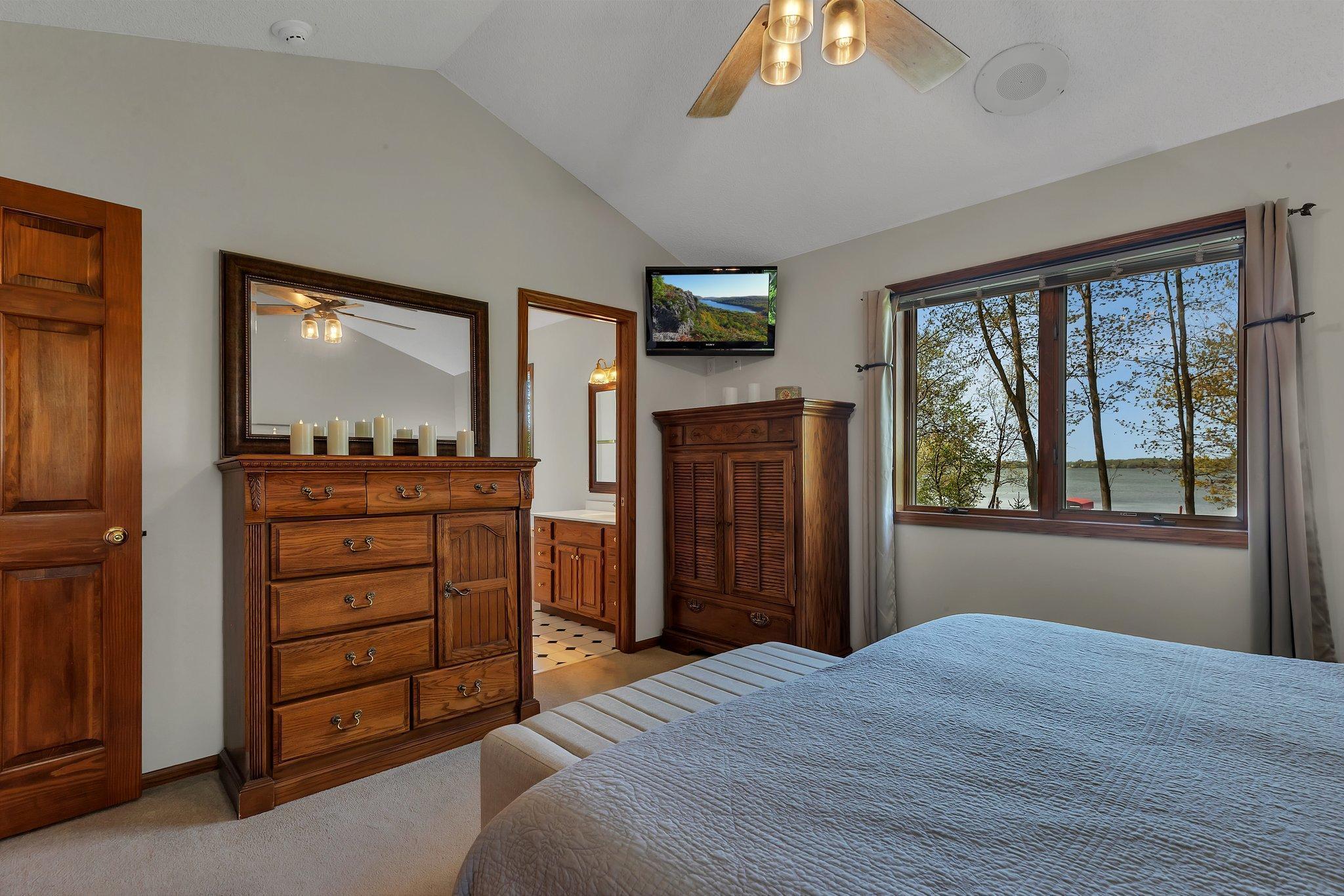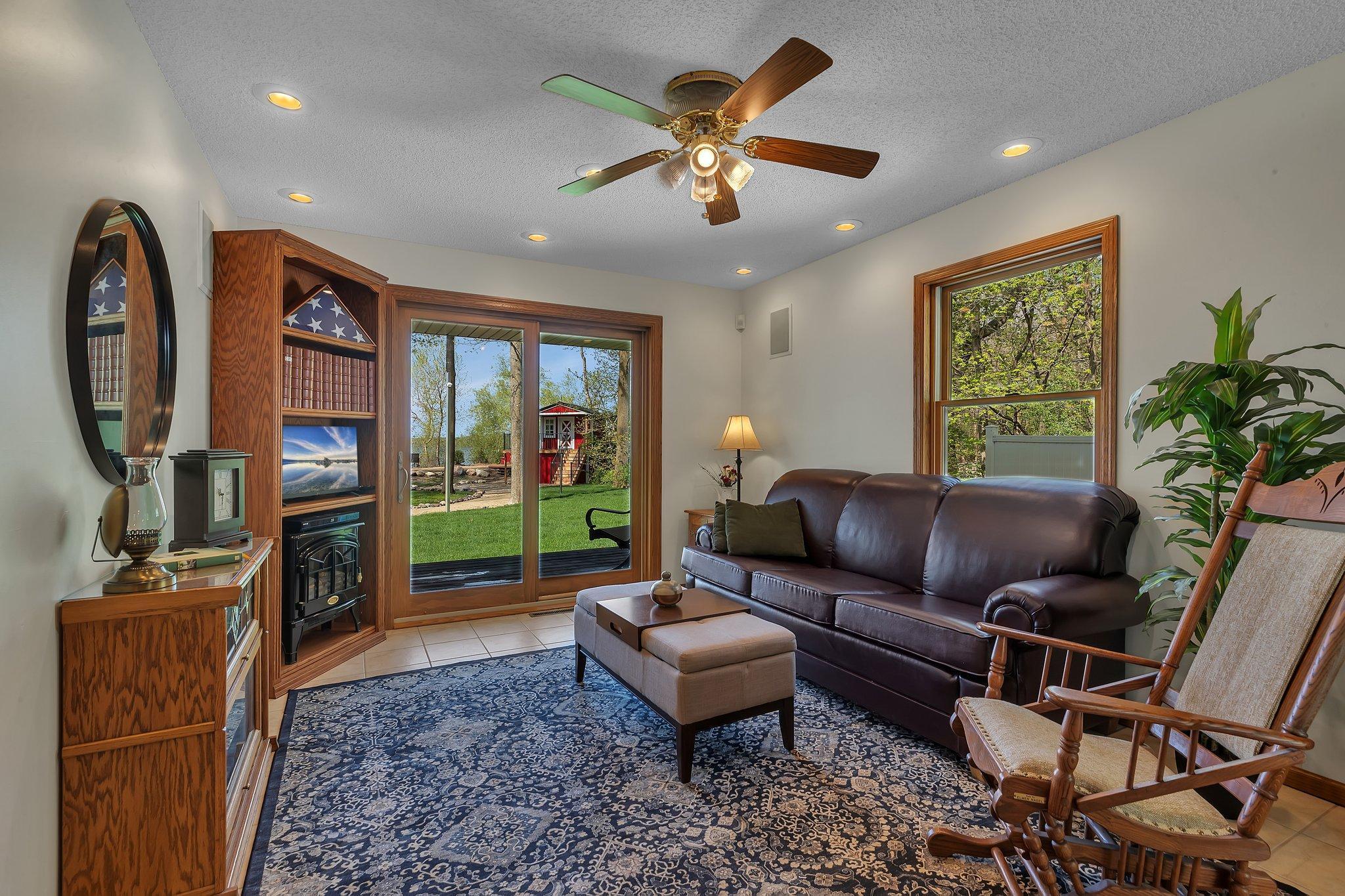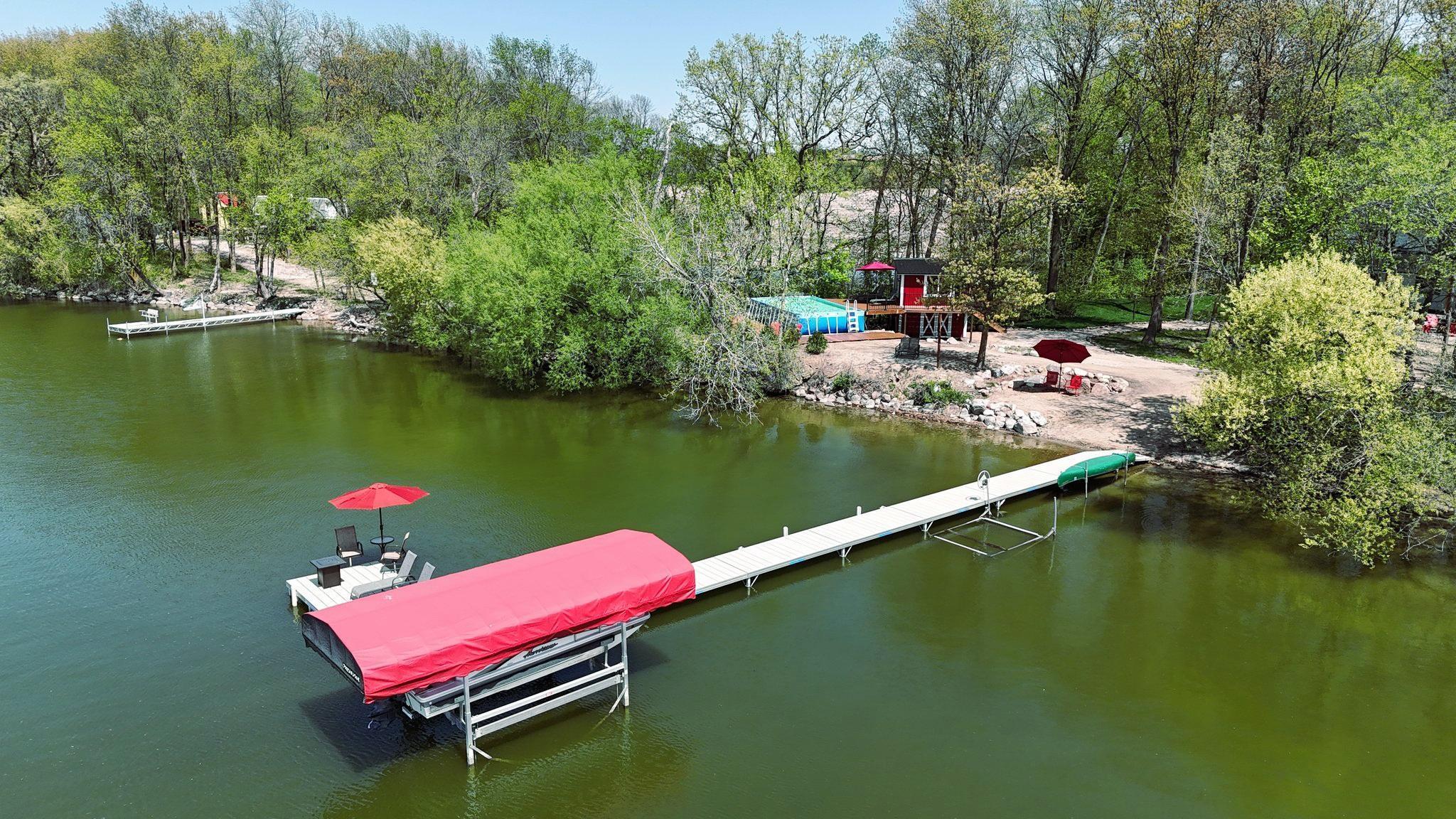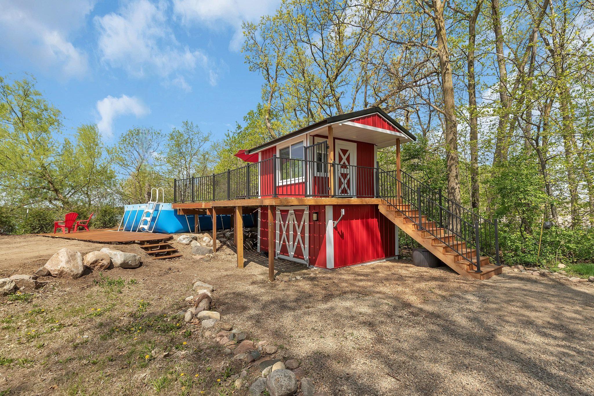 Everything you desire in lake living! Stunning sunsets! Reel Walleye in from the dock! Level lot leads gently to the sand beach. Lakeside paved patio, pool & pool house. Secluded location, quiet dead end paved road. Mature trees. New windows, siding, steel roof, patios, landscaping, quartz countertops & more! Open design flows between indoor to outdoor living spaces. The kitchen features a generous quartz-topped island, ensuring that the kitchen is indeed the heart of the home. The adjoining dining opens to the spacious porch & paved patio, inspiring gracious meals and entertaining. Holidays are a breeze: double induction oven & convenient 2nd under-the-counter oven! Living room offers floor-to-ceiling lake view windows & first fireplace. The Great Room transports you 'up north'! The log siding and wood-burning fireplace creates an environment sure to relax you. An upper level fifth bedroom and family room or den adjoins the great room, offering a secondary primary/guest room or Airbnb opportunity. Upstairs you will also find the spacious owner's suite with a full private bath & lake views, and the 2nd full bath as well as three more bedrooms, two of which have private vanities. The expansive office suite with a private entrance is perfect for the entrepreneur or for those who work remotely. Conversely, this area could be converted to a main floor bedroom suite/auxiliary living unit, game/billiards/bar, exercise room or even additional garage stalls. This home was built with quality elements, with an R value of 57 and ICF concrete forms that can withstand over 300 MPH wind. Attached three-stall heated garage with workshop, and a second detached one-stall 12x24 garage. 60 minutes from the west metro.