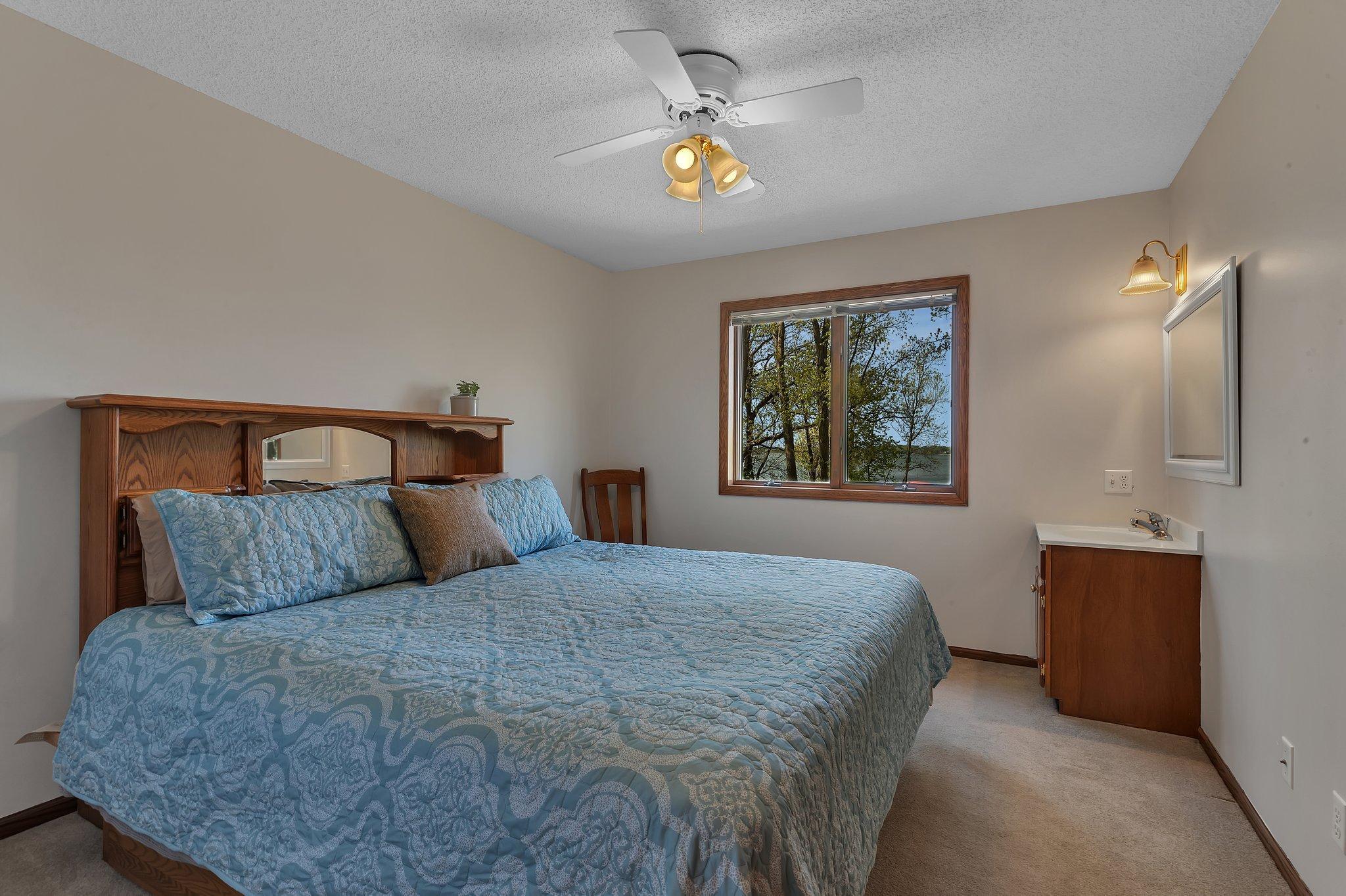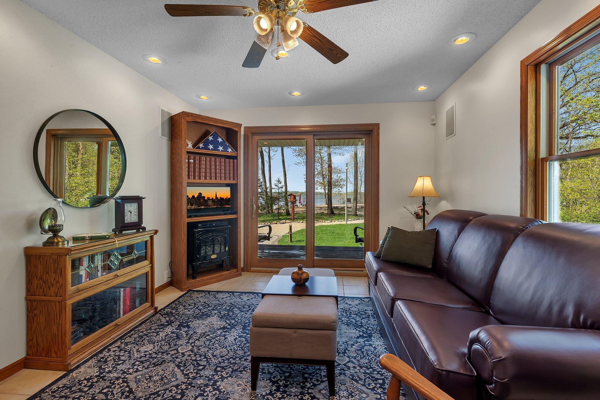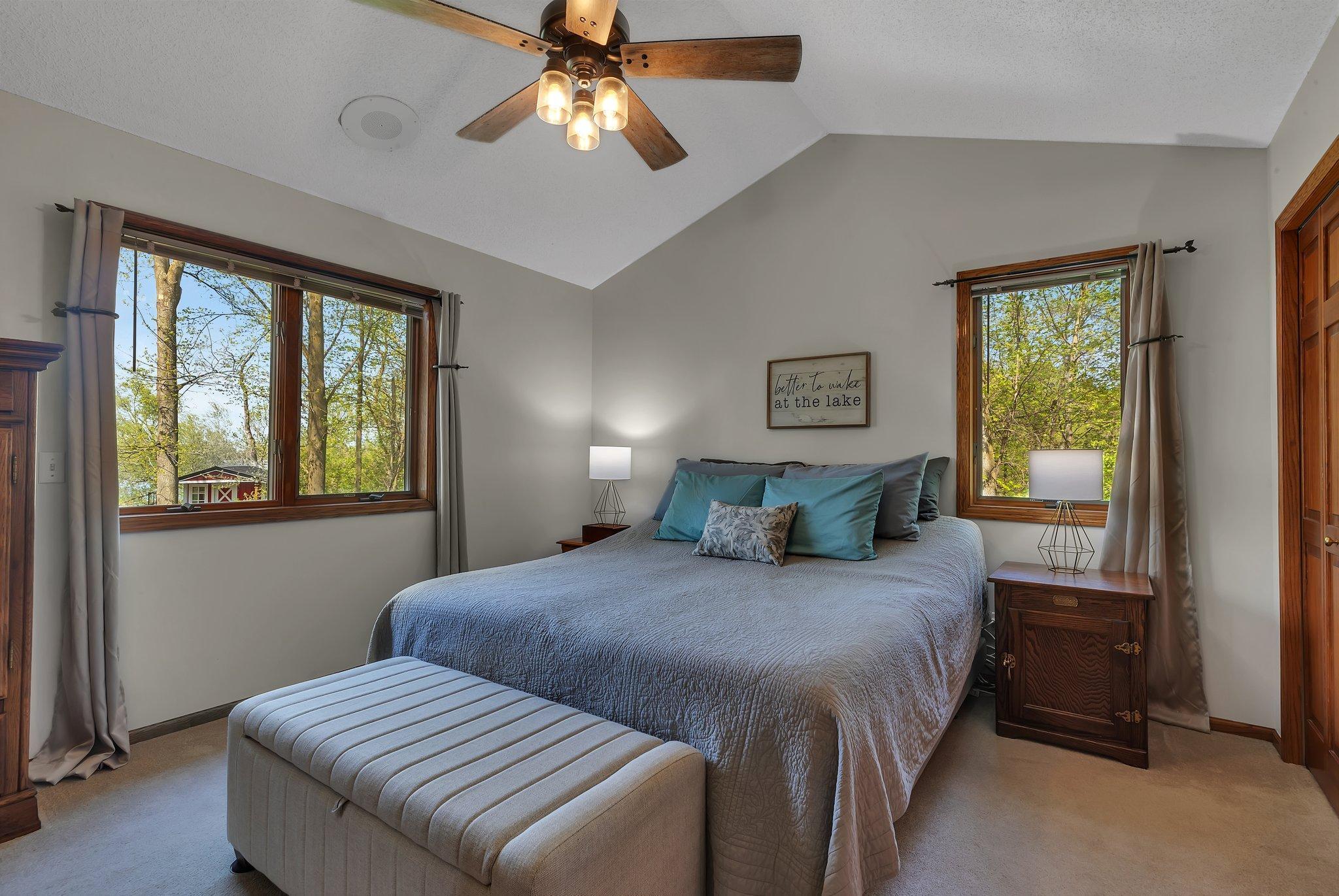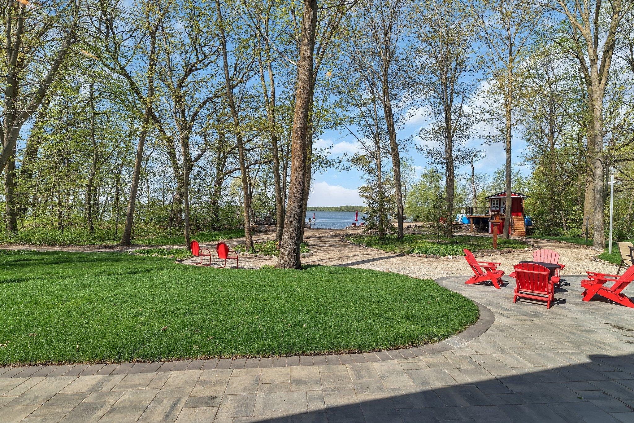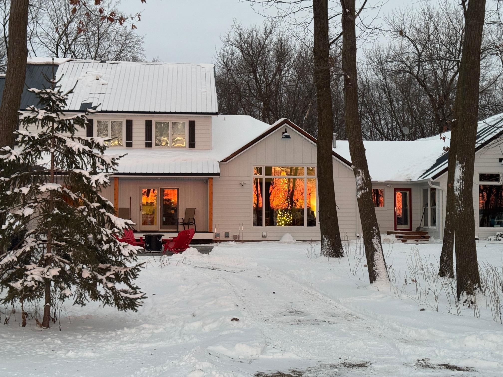 Everything you desire in lake living! Stunning sunsets! Reel Walleye in from the dock! Level lot leads gently to the sand beach. Lakeside paved patio, pool & pool house. Secluded location, quiet dead end paved road. Mature trees. New windows, siding, steel roof, patios, landscaping, quartz countertops & more! Open design flows between indoor to outdoor living spaces. The kitchen features a generous quartz-topped island, ensuring that the kitchen is indeed the heart of the home. The adjoining dining opens to the spacious porch & paved patio, inspiring gracious meals and entertaining. Holidays are a breeze: double induction oven & convenient 2nd under-the-counter oven! Living room offers floor-to-ceiling lake view windows & first fireplace. The Great Room transports you 'up north'! The log siding and wood-burning fireplace creates an environment sure to relax you. An upper level fifth bedroom and family room or den adjoins the great room, offering a secondary primary/guest room or Airbnb opportunity. Upstairs you will also find the spacious owner's suite with a full private bath & lake views, and the 2nd full bath as well as three more bedrooms, two of which have private vanities. The expansive office suite with a private entrance is perfect for the entrepreneur or for those who work remotely. Conversely, this area could be converted to a main floor bedroom suite/auxiliary living unit, game/billiards/bar, exercise room or even additional garage stalls. This home was built with quality elements, with an R value of 57 and ICF concrete forms that can withstand over 300 MPH wind. Attached three-stall heated garage with workshop, and a second detached one-stall 12x24 garage. 60 minutes from the west metro.