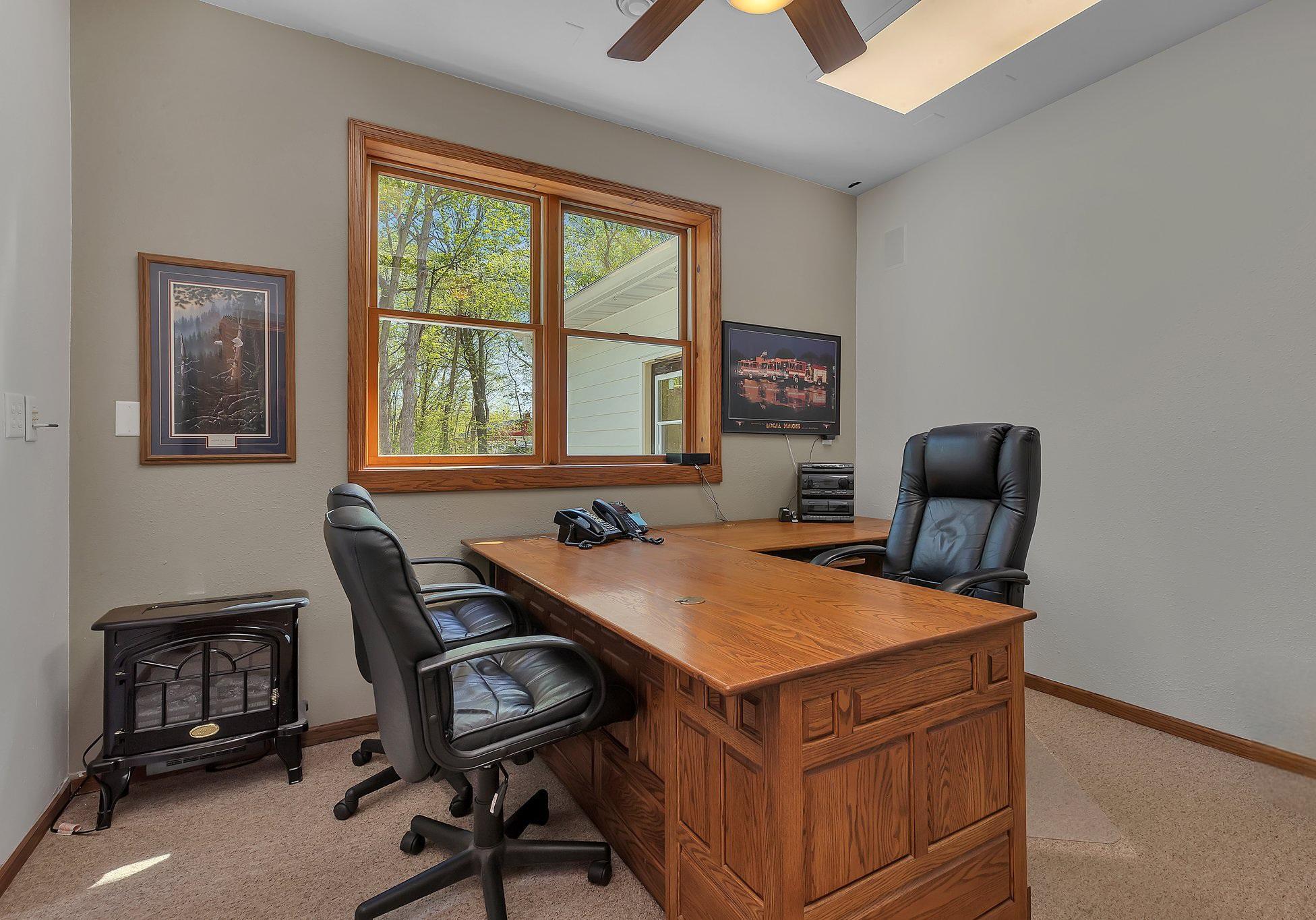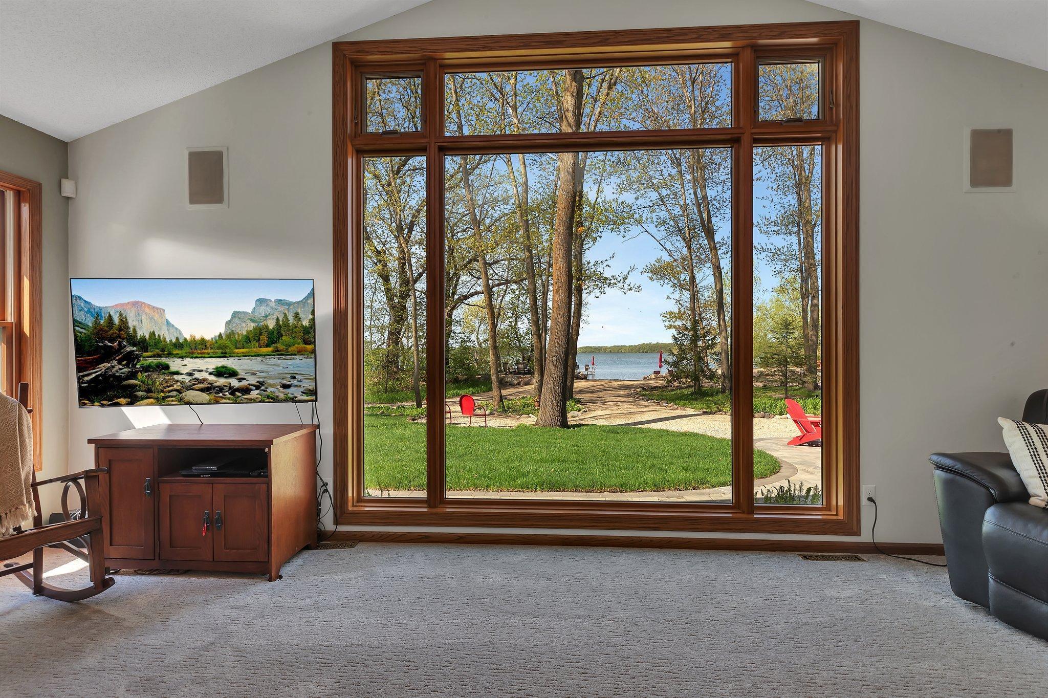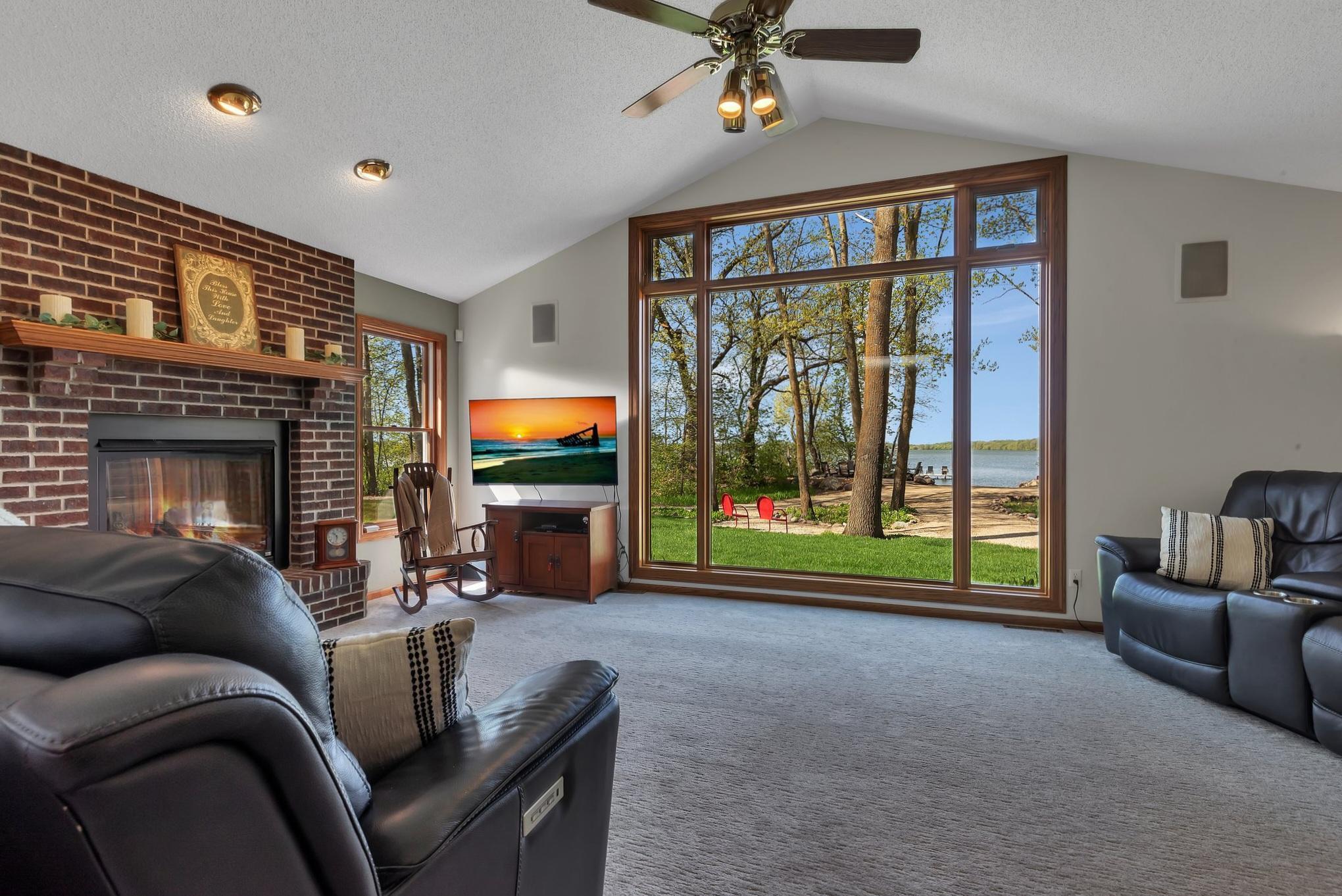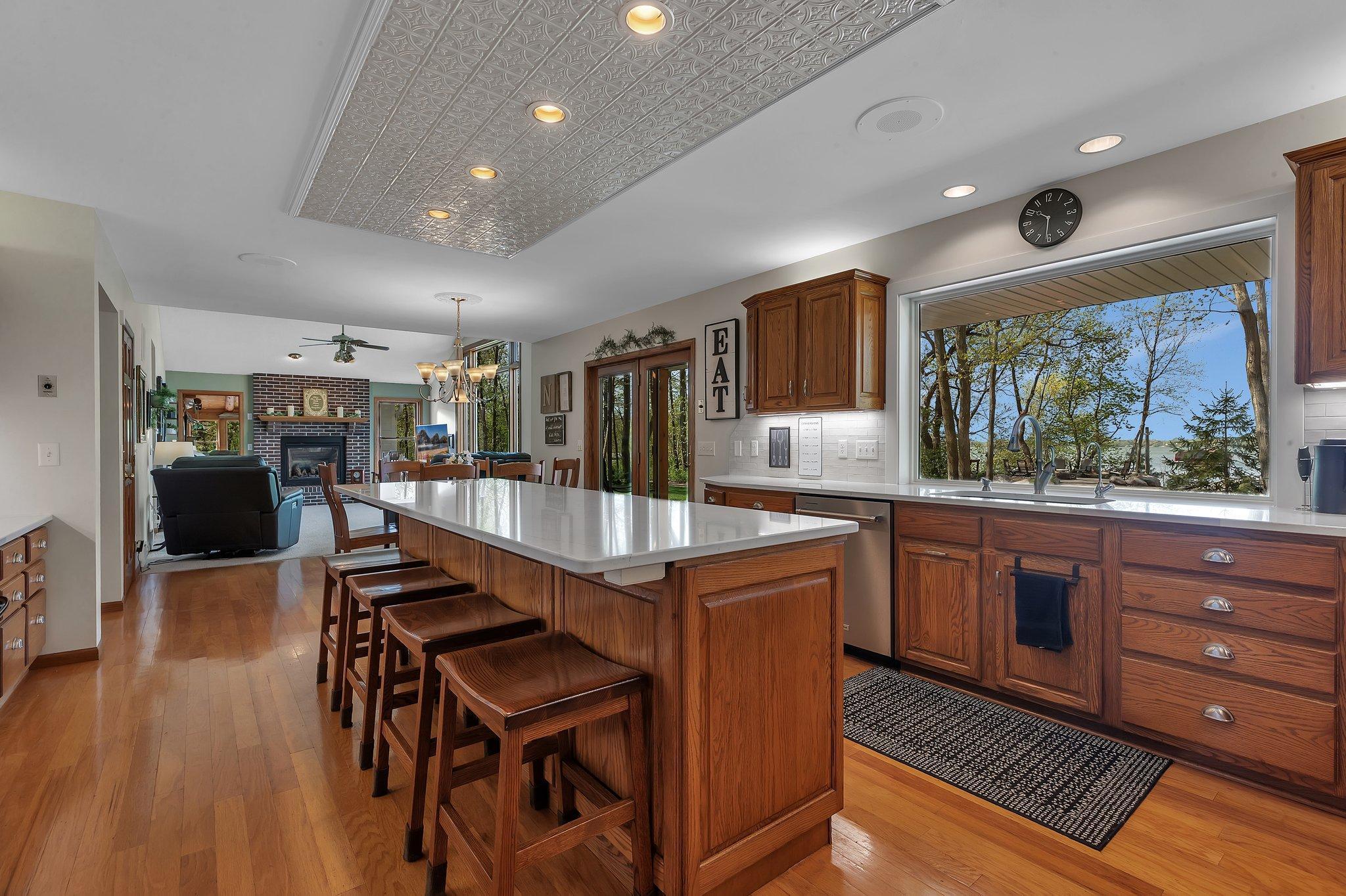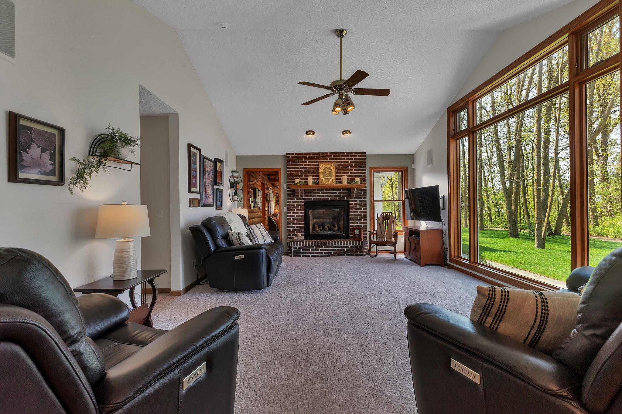 Everything you desire in lake living! Stunning sunsets! Reel Walleye in from the dock! Level lot leads gently to the sand beach. Lakeside paved patio, pool & pool house. Secluded location, quiet dead end paved road. Mature trees. New windows, siding, steel roof, patios, landscaping, quartz countertops & more! Open design flows between indoor to outdoor living spaces. The kitchen features a generous quartz-topped island, ensuring that the kitchen is indeed the heart of the home. The adjoining dining opens to the spacious porch & paved patio, inspiring gracious meals and entertaining. Holidays are a breeze: double induction oven & convenient 2nd under-the-counter oven! Living room offers floor-to-ceiling lake view windows & first fireplace. The Great Room transports you 'up north'! The log siding and wood-burning fireplace creates an environment sure to relax you. An upper level fifth bedroom and family room or den adjoins the great room, offering a secondary primary/guest room or Airbnb opportunity. Upstairs you will also find the spacious owner's suite with a full private bath & lake views, and the 2nd full bath as well as three more bedrooms, two of which have private vanities. The expansive office suite with a private entrance is perfect for the entrepreneur or for those who work remotely. Conversely, this area could be converted to a main floor bedroom suite/auxiliary living unit, game/billiards/bar, exercise room or even additional garage stalls. This home was built with quality elements, with an R value of 57 and ICF concrete forms that can withstand over 300 MPH wind. Attached three-stall heated garage with workshop, and a second detached one-stall 12x24 garage. 60 minutes from the west metro.
