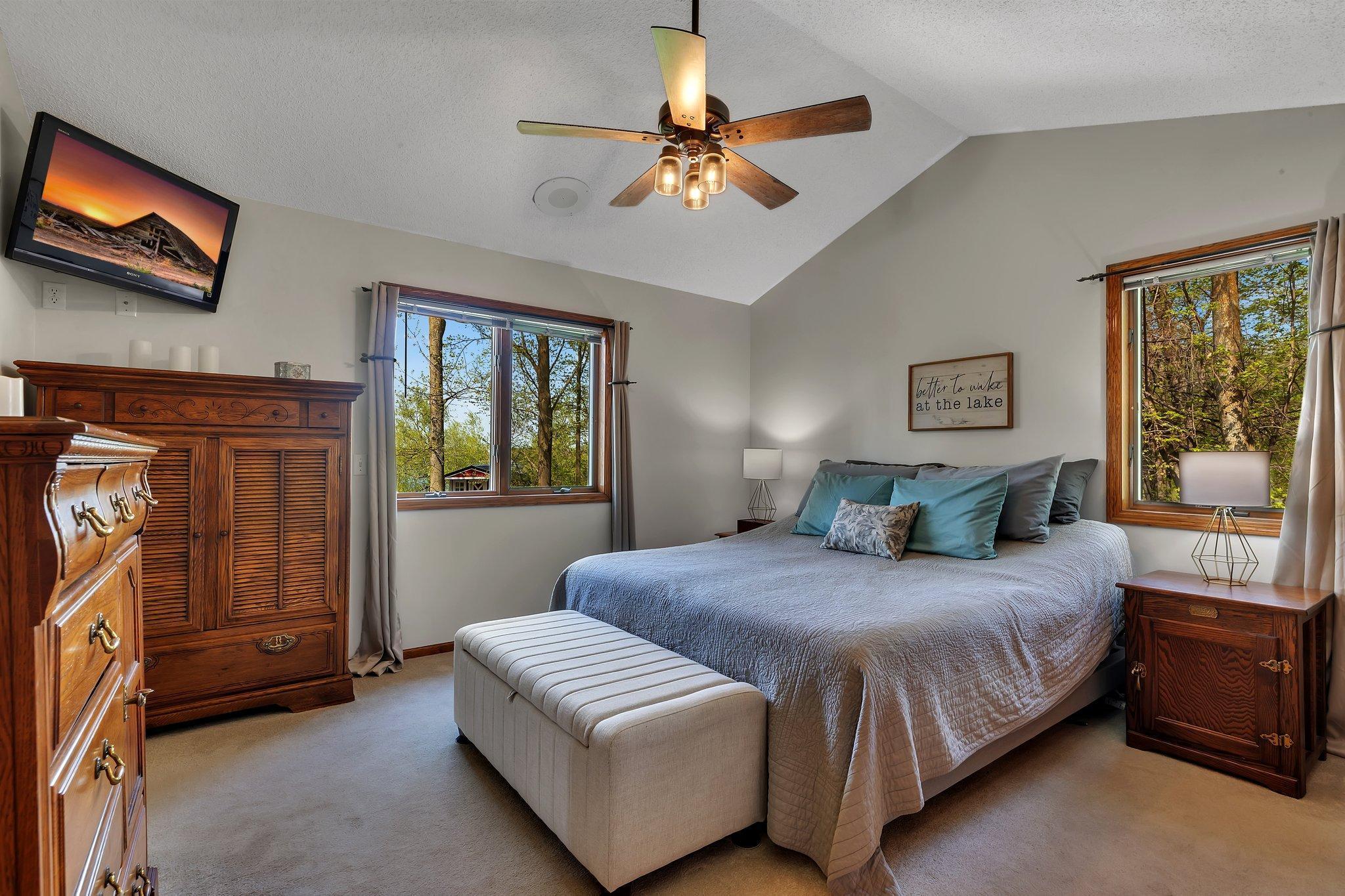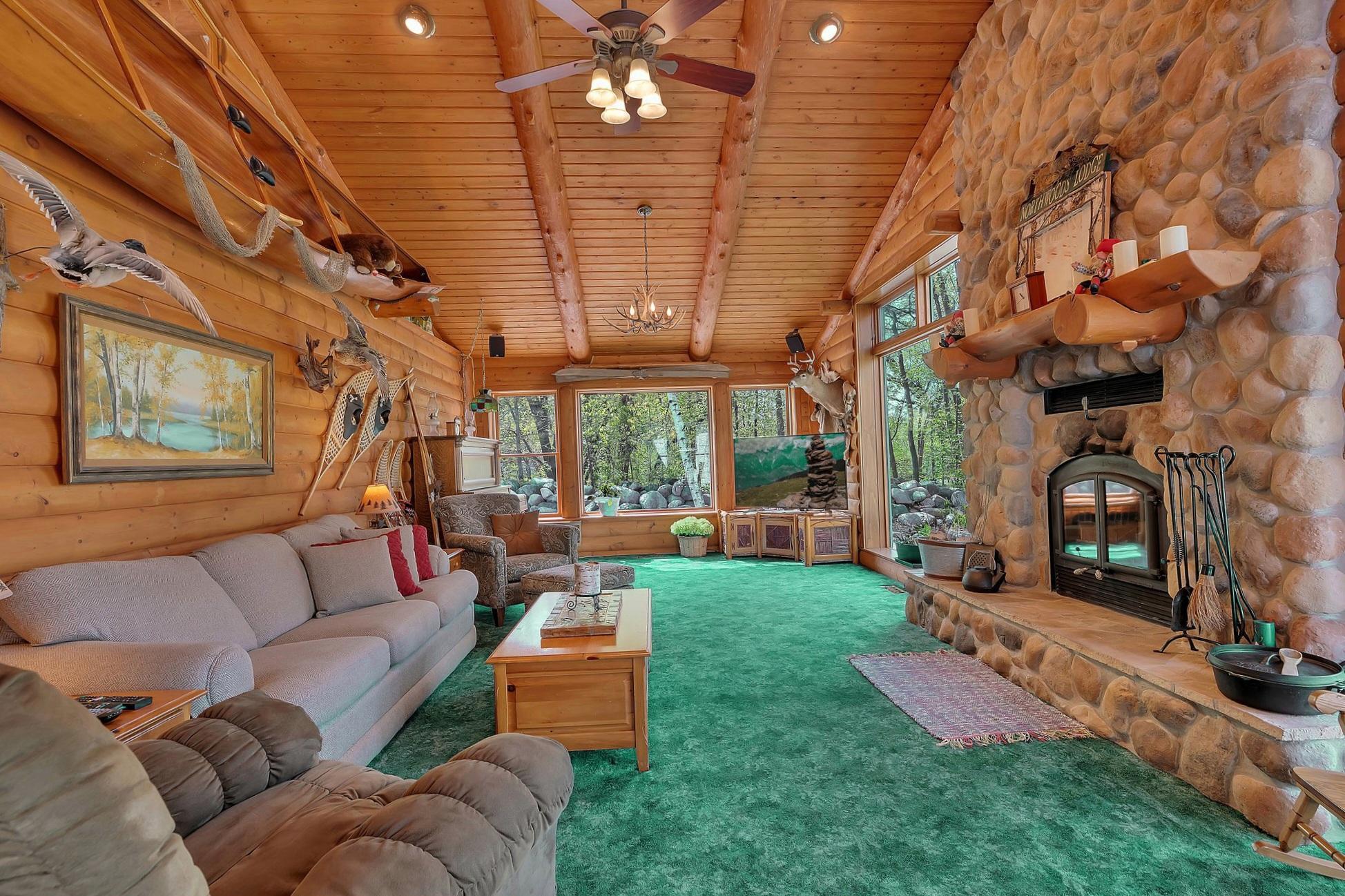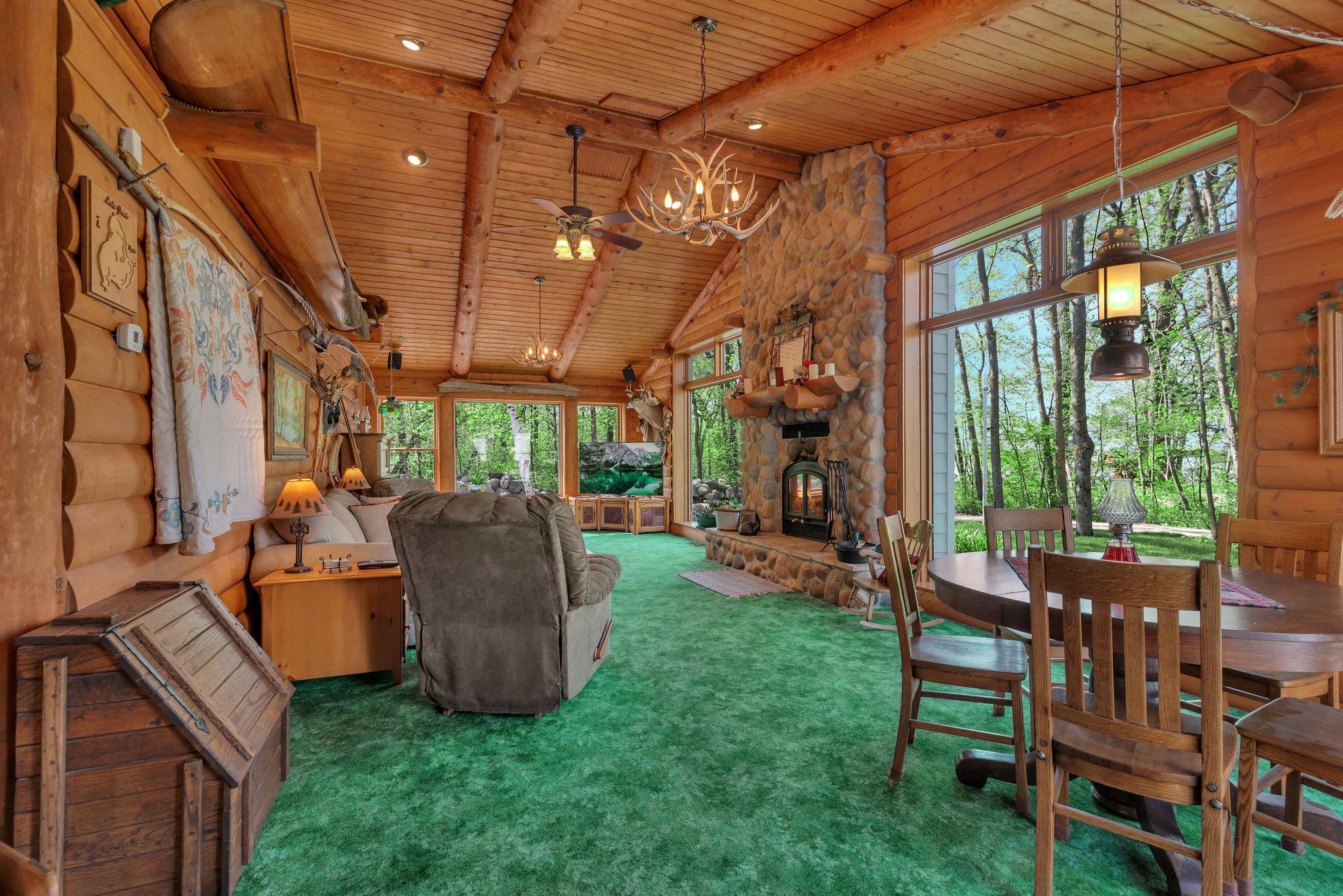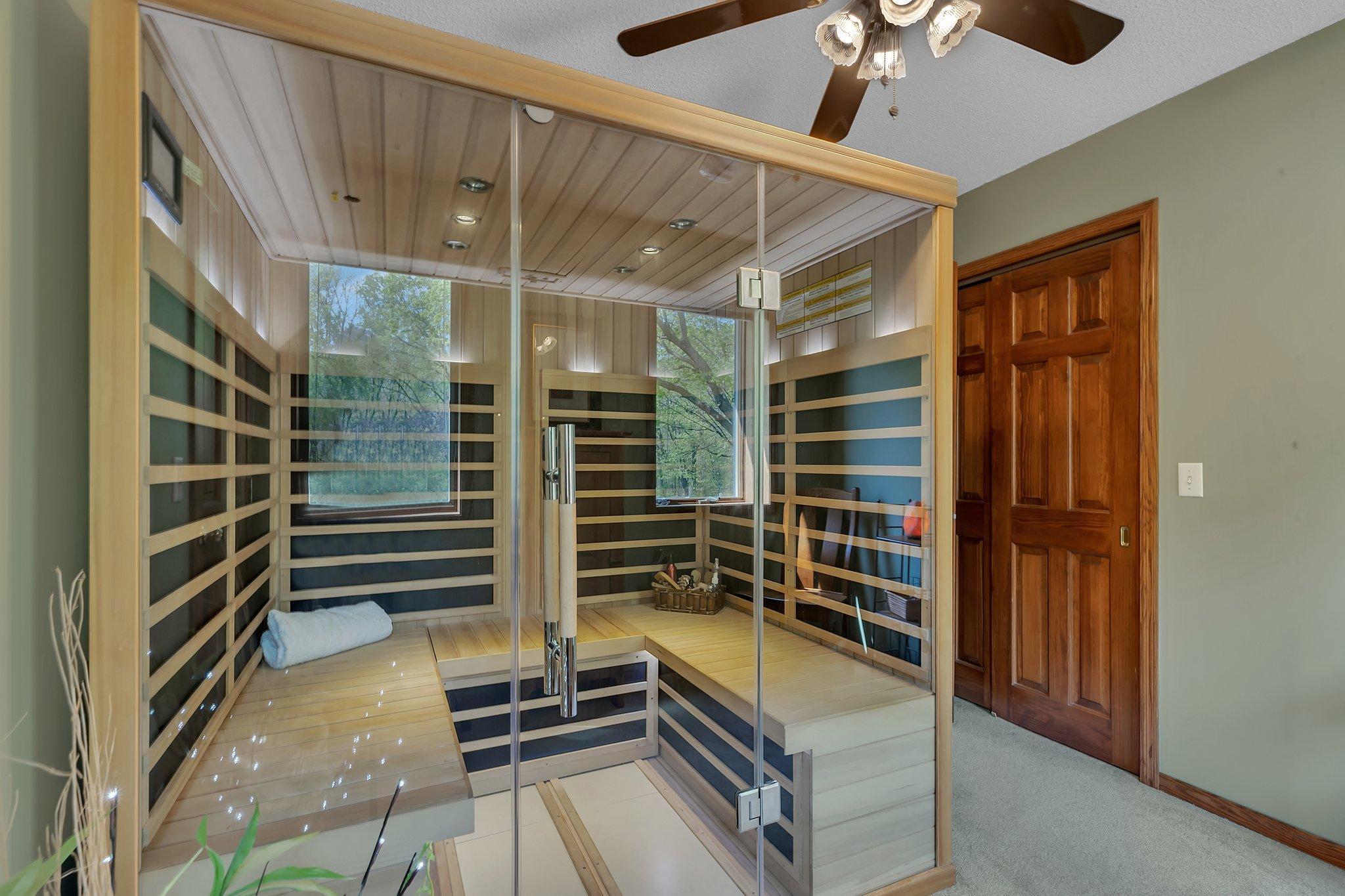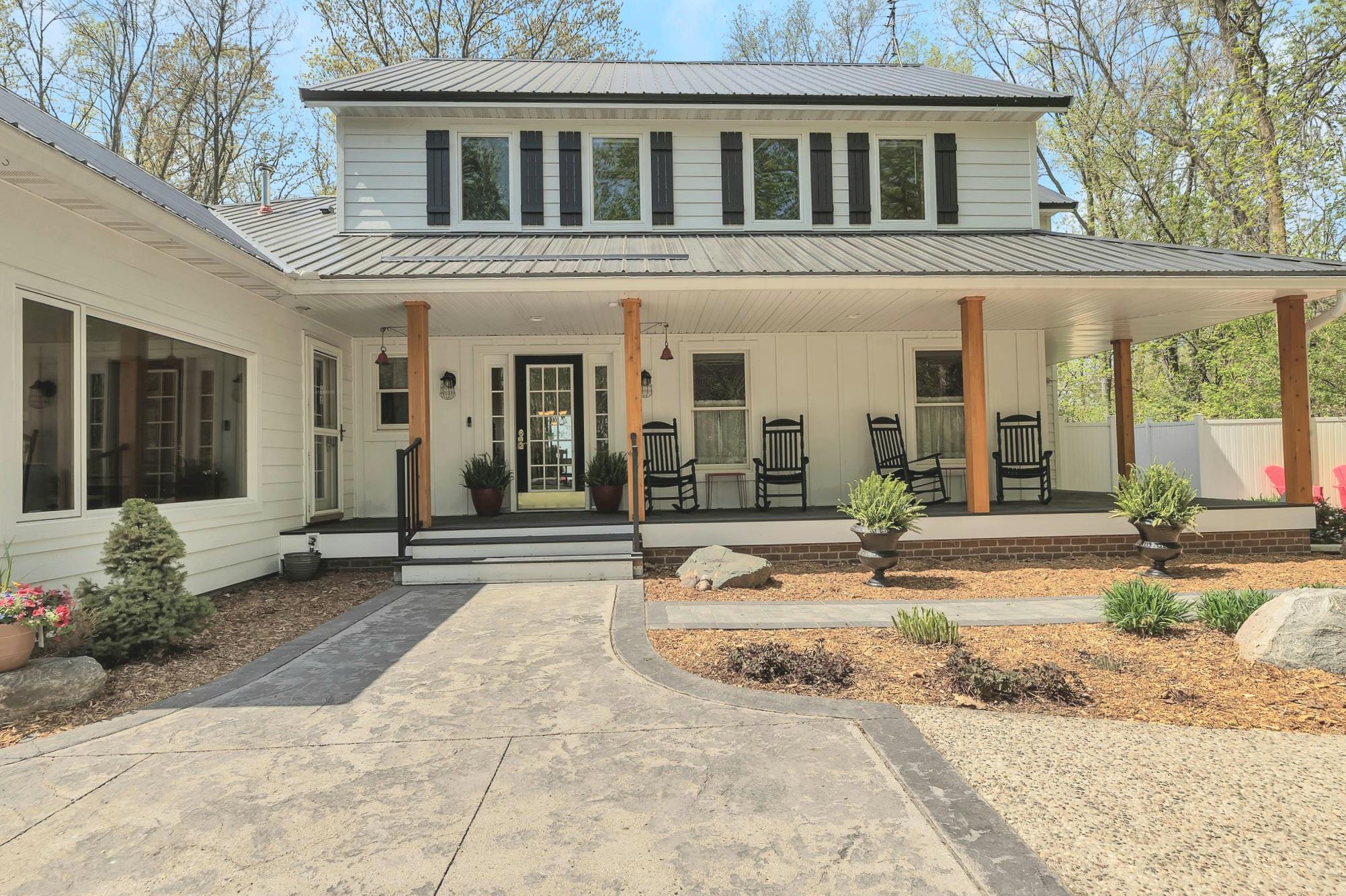 Everything you desire in lake living! Stunning sunsets! Reel Walleye in from the dock! Level lot leads gently to the sand beach. Lakeside paved patio, pool & pool house. Secluded location, quiet dead end paved road. Mature trees. New windows, siding, steel roof, patios, landscaping, quartz countertops & more! Open design flows between indoor to outdoor living spaces. The kitchen features a generous quartz-topped island, ensuring that the kitchen is indeed the heart of the home. The adjoining dining opens to the spacious porch & paved patio, inspiring gracious meals and entertaining. Holidays are a breeze: double induction oven & convenient 2nd under-the-counter oven! Living room offers floor-to-ceiling lake view windows & first fireplace. The Great Room transports you 'up north'! The log siding and wood-burning fireplace creates an environment sure to relax you. An upper level fifth bedroom and family room or den adjoins the great room, offering a secondary primary/guest room or Airbnb opportunity. Upstairs you will also find the spacious owner's suite with a full private bath & lake views, and the 2nd full bath as well as three more bedrooms, two of which have private vanities. The expansive office suite with a private entrance is perfect for the entrepreneur or for those who work remotely. Conversely, this area could be converted to a main floor bedroom suite/auxiliary living unit, game/billiards/bar, exercise room or even additional garage stalls. This home was built with quality elements, with an R value of 57 and ICF concrete forms that can withstand over 300 MPH wind. Attached three-stall heated garage with workshop, and a second detached one-stall 12x24 garage. 60 minutes from the west metro.