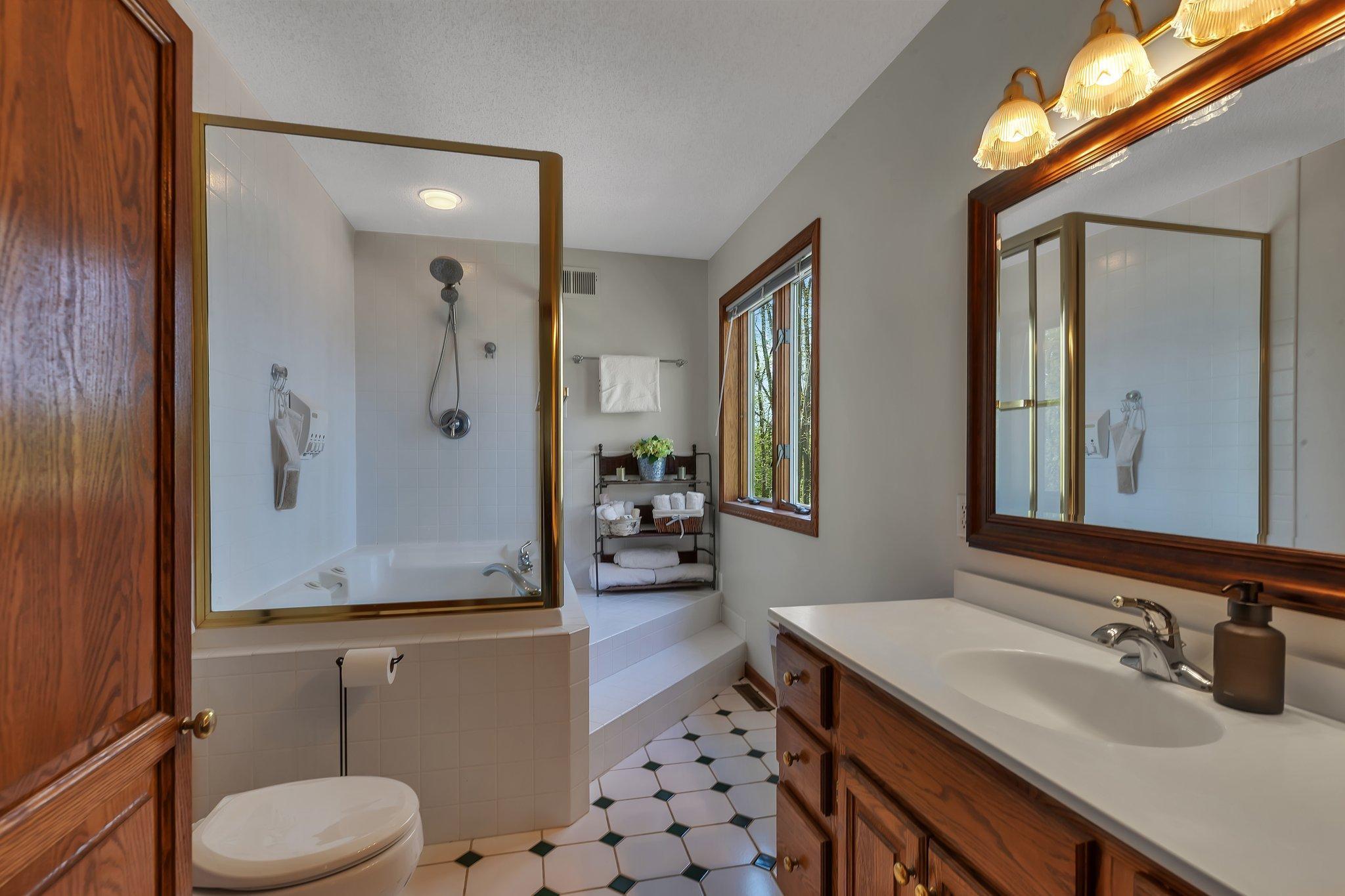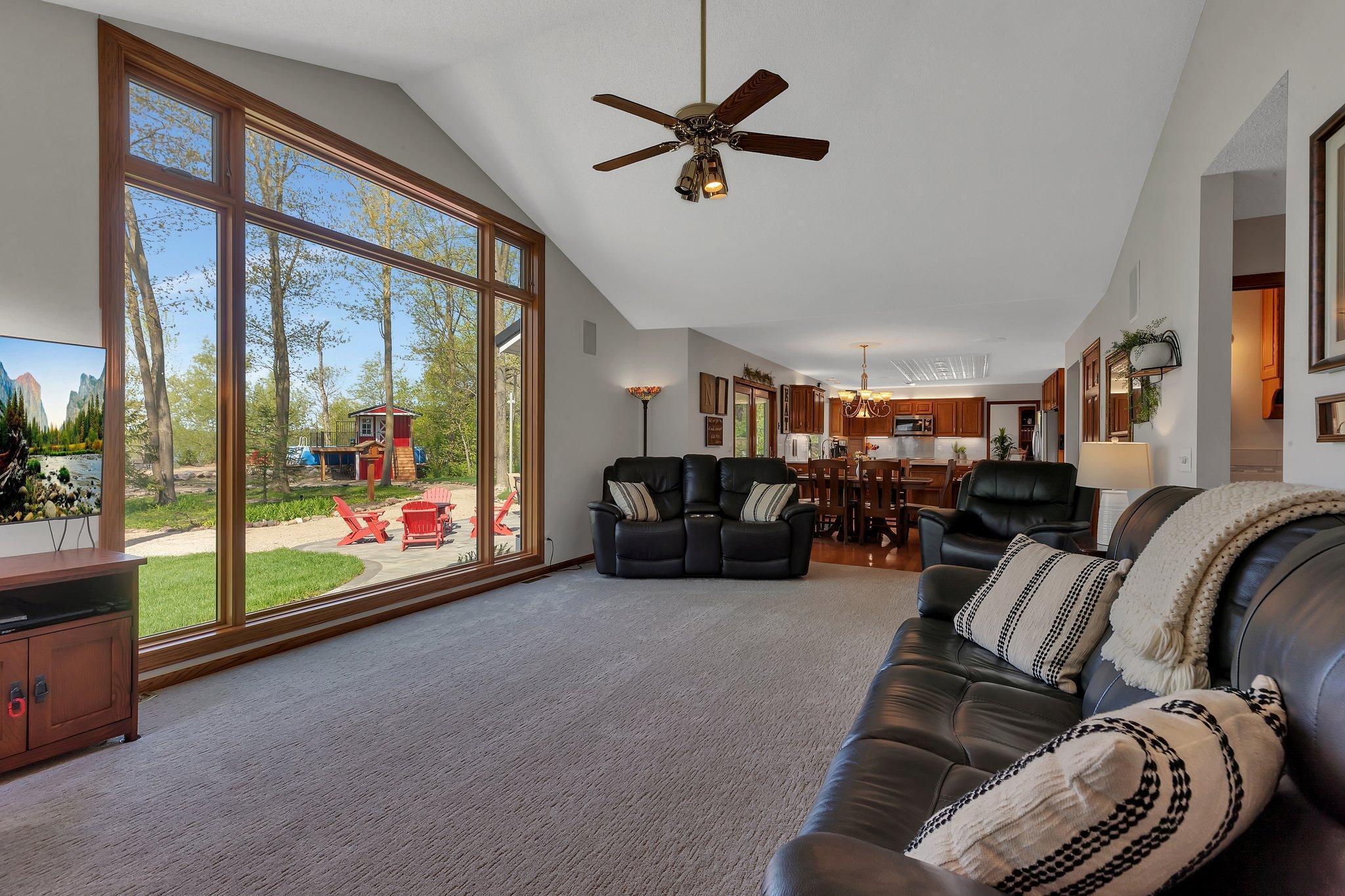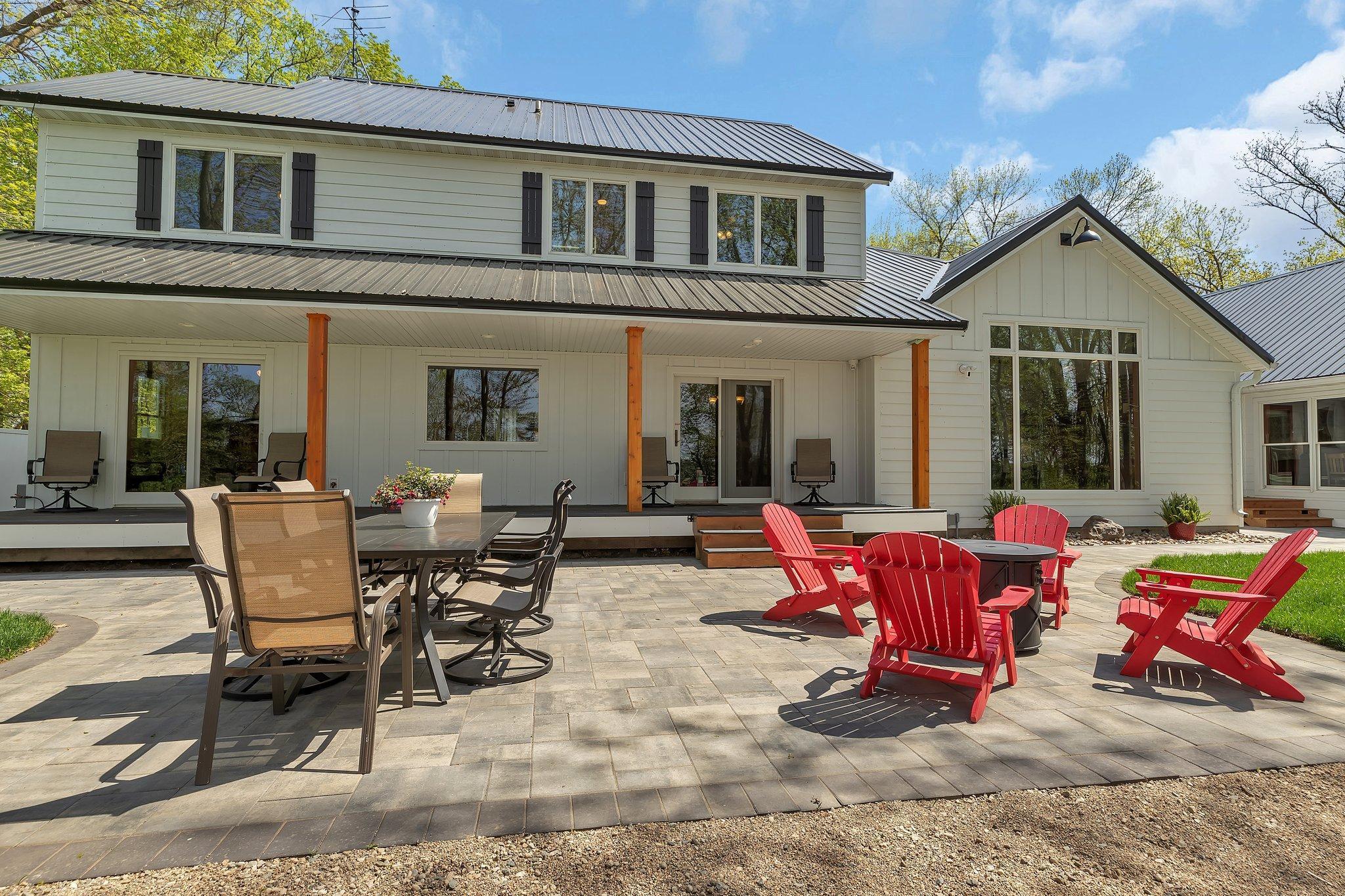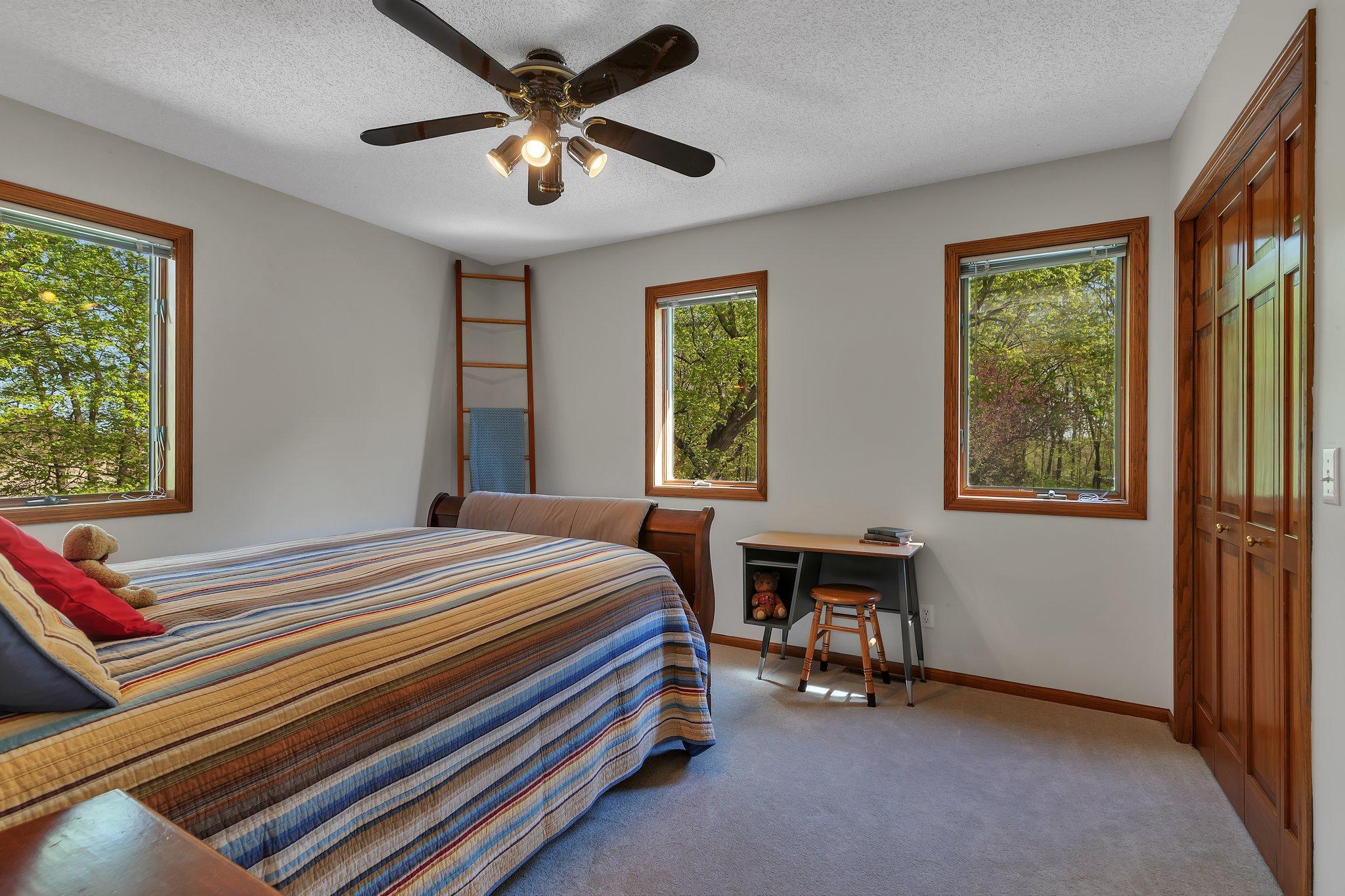 Everything you desire in lake living! Stunning sunsets! Reel Walleye in from the dock! Level lot leads gently to the sand beach. Lakeside paved patio, pool & pool house. Secluded location, quiet dead end paved road. Mature trees. New windows, siding, steel roof, patios, landscaping, quartz countertops & more! Open design flows between indoor to outdoor living spaces. The kitchen features a generous quartz-topped island, ensuring that the kitchen is indeed the heart of the home. The adjoining dining opens to the spacious porch & paved patio, inspiring gracious meals and entertaining. Holidays are a breeze: double induction oven & convenient 2nd under-the-counter oven! Living room offers floor-to-ceiling lake view windows & first fireplace. The Great Room transports you 'up north'! The log siding and wood-burning fireplace creates an environment sure to relax you. An upper level fifth bedroom and family room or den adjoins the great room, offering a secondary primary/guest room or Airbnb opportunity. Upstairs you will also find the spacious owner's suite with a full private bath & lake views, and the 2nd full bath as well as three more bedrooms, two of which have private vanities. The expansive office suite with a private entrance is perfect for the entrepreneur or for those who work remotely. Conversely, this area could be converted to a main floor bedroom suite/auxiliary living unit, game/billiards/bar, exercise room or even additional garage stalls. This home was built with quality elements, with an R value of 57 and ICF concrete forms that can withstand over 300 MPH wind. Attached three-stall heated garage with workshop, and a second detached one-stall 12x24 garage. 60 minutes from the west metro.
