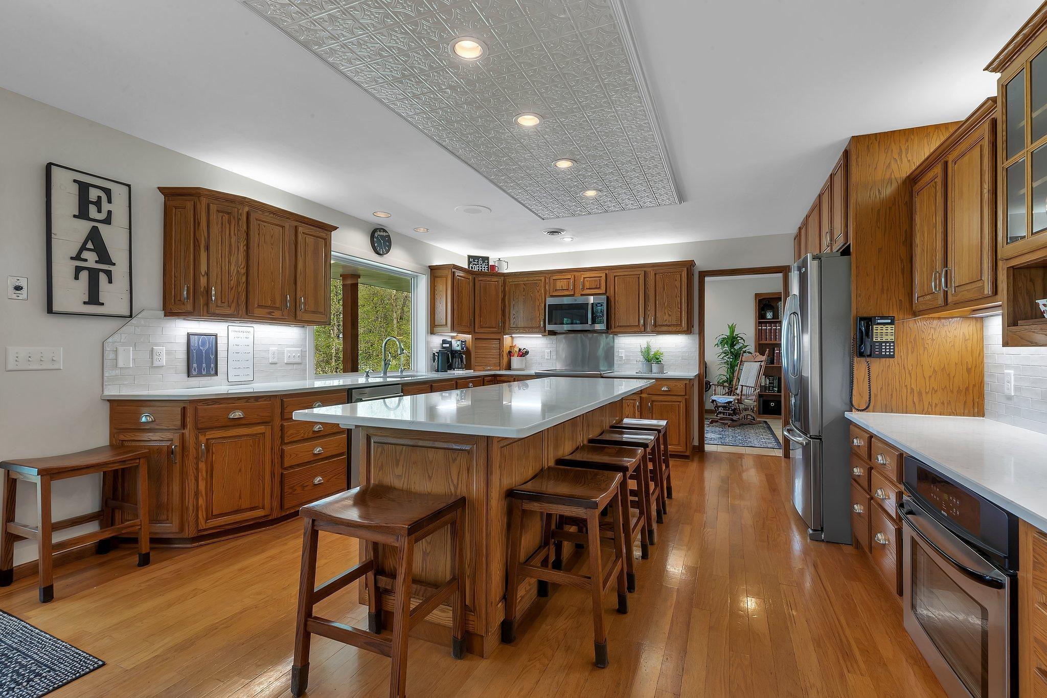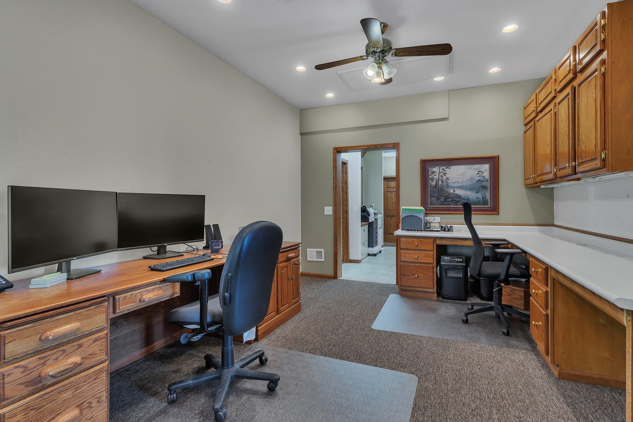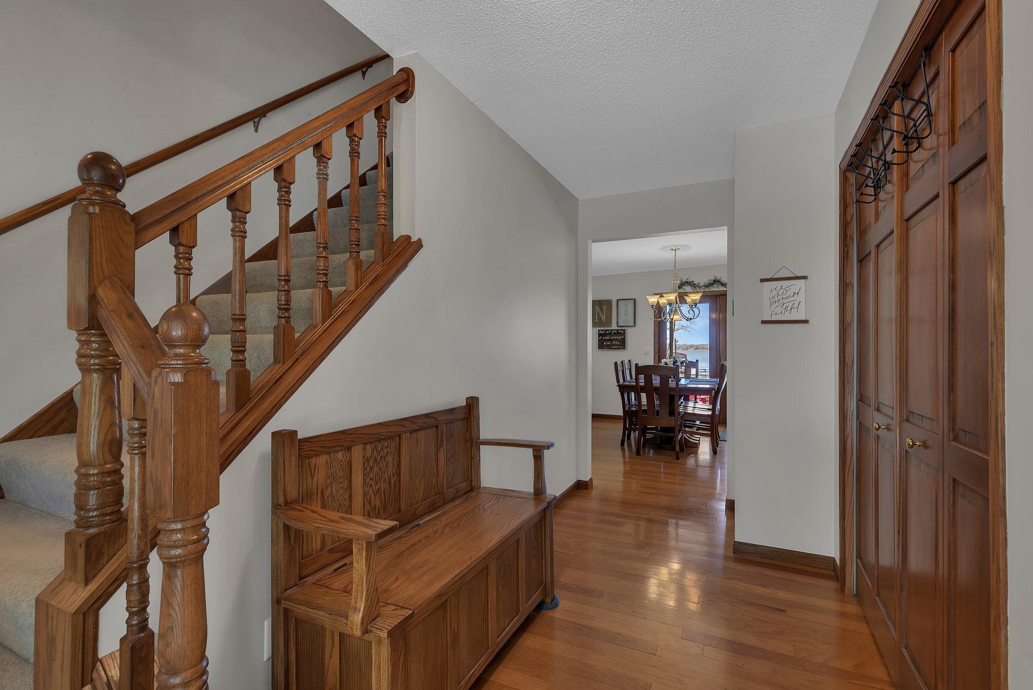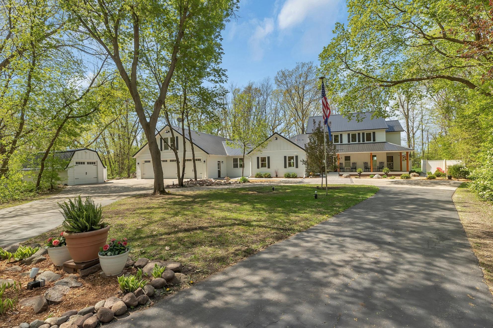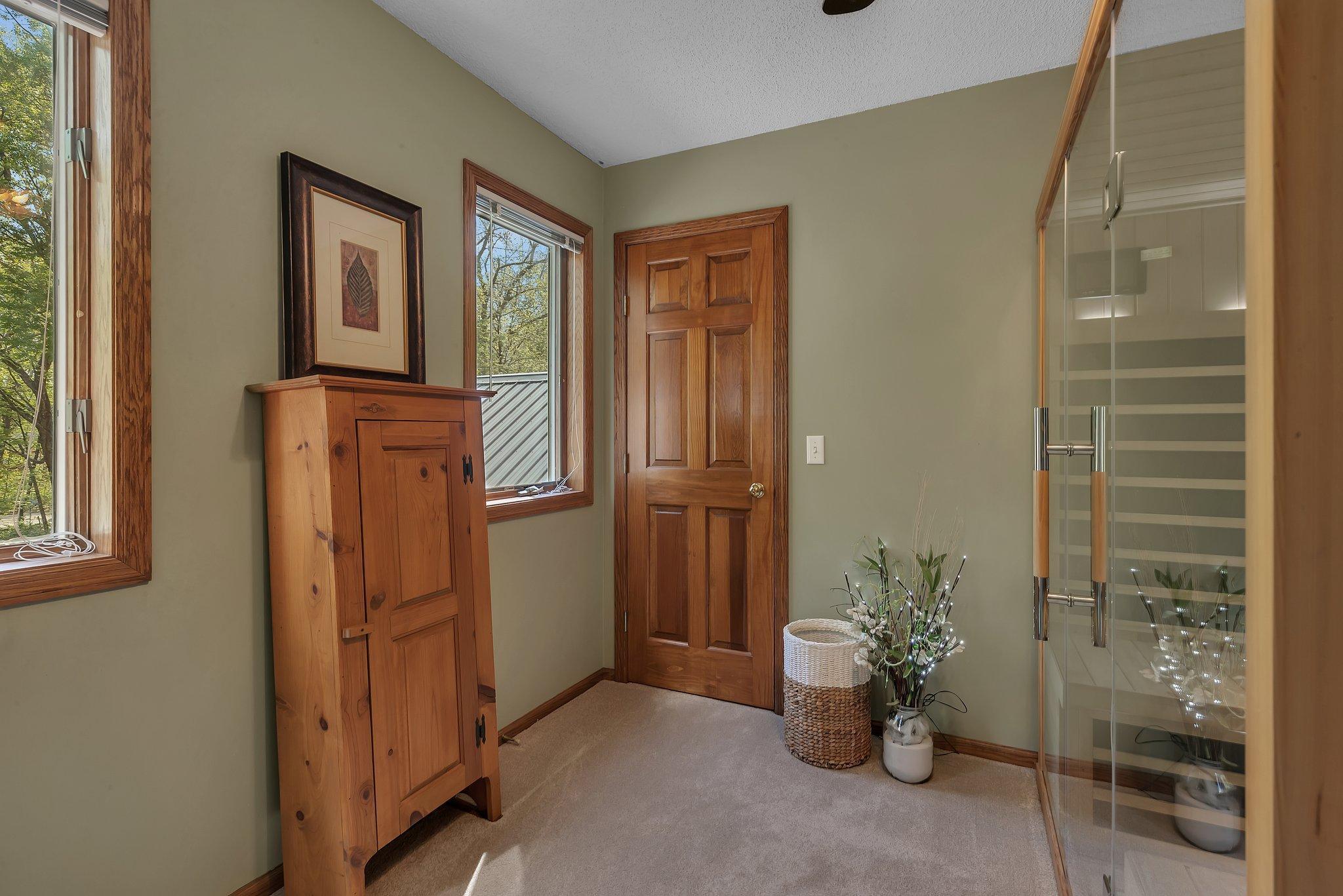 Everything you desire in lake living! Stunning sunsets! Reel Walleye in from the dock! Level lot leads gently to the sand beach. Lakeside paved patio, pool & pool house. Secluded location, quiet dead end paved road. Mature trees. New windows, siding, steel roof, patios, landscaping, quartz countertops & more! Open design flows between indoor to outdoor living spaces. The kitchen features a generous quartz-topped island, ensuring that the kitchen is indeed the heart of the home. The adjoining dining opens to the spacious porch & paved patio, inspiring gracious meals and entertaining. Holidays are a breeze: double induction oven & convenient 2nd under-the-counter oven! Living room offers floor-to-ceiling lake view windows & first fireplace. The Great Room transports you 'up north'! The log siding and wood-burning fireplace creates an environment sure to relax you. An upper level fifth bedroom and family room or den adjoins the great room, offering a secondary primary/guest room or Airbnb opportunity. Upstairs you will also find the spacious owner's suite with a full private bath & lake views, and the 2nd full bath as well as three more bedrooms, two of which have private vanities. The expansive office suite with a private entrance is perfect for the entrepreneur or for those who work remotely. Conversely, this area could be converted to a main floor bedroom suite/auxiliary living unit, game/billiards/bar, exercise room or even additional garage stalls. This home was built with quality elements, with an R value of 57 and ICF concrete forms that can withstand over 300 MPH wind. Attached three-stall heated garage with workshop, and a second detached one-stall 12x24 garage. 60 minutes from the west metro.