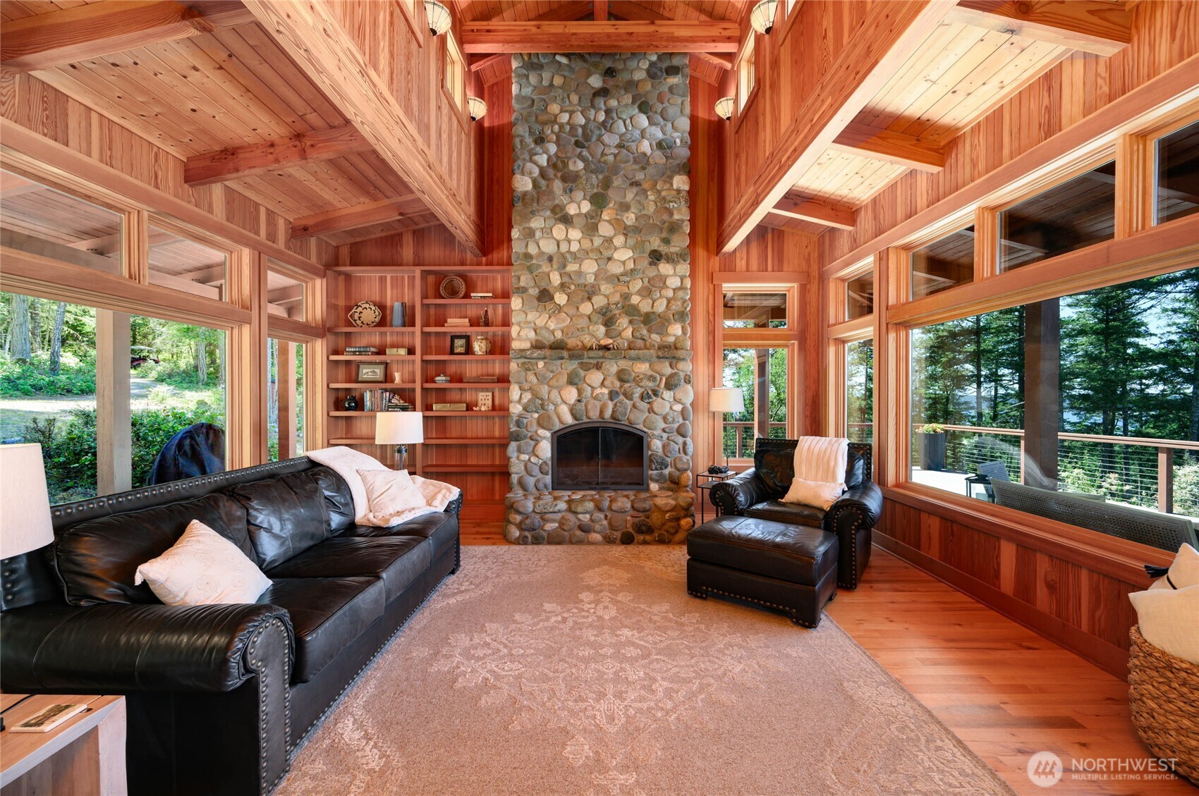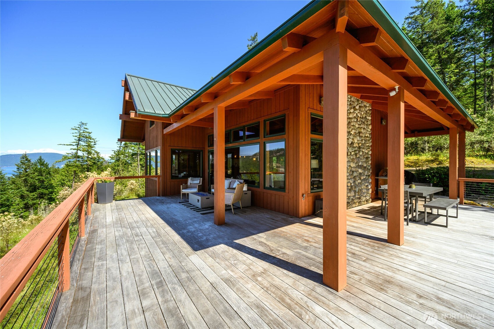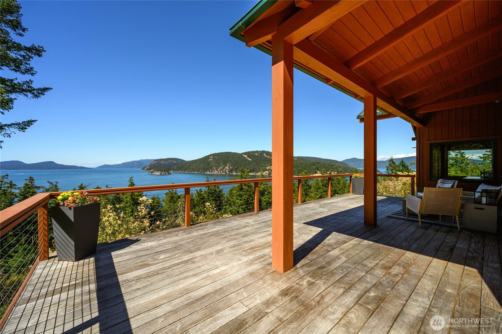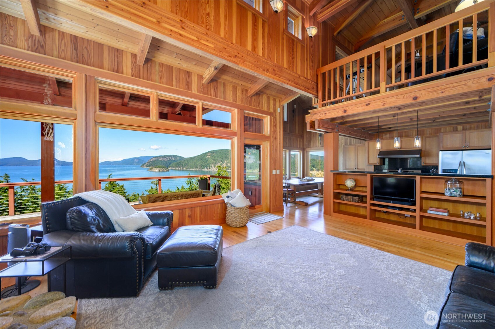 Welcome to an extraordinary lifestyle in the coveted Decatur Northwest Community. This custom designed retreat showcases sweeping views of sparkling waters, neighboring islands, and majestic mountains from nearly every room. Entertain on the expansive deck near the water's edge with golden island sunsets as your backdrop or unwind by the dramatic floor-to-ceiling stone fireplace. Adventures awaits: comb pristine beaches for sea glass, paddle across the serene lake, tend to your garden, or play a match on the tennis courts. Ownership includes over 600 acres of private forest and hiking trails, plus mainland parking and your exclusive twice-daily ferry service with arrival assistance, making every island escape seamless, and unforgettable.