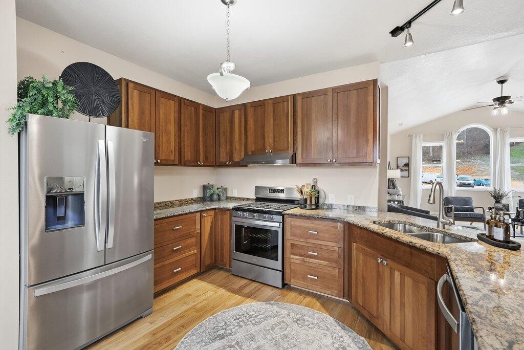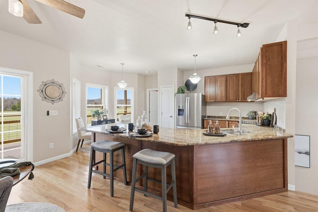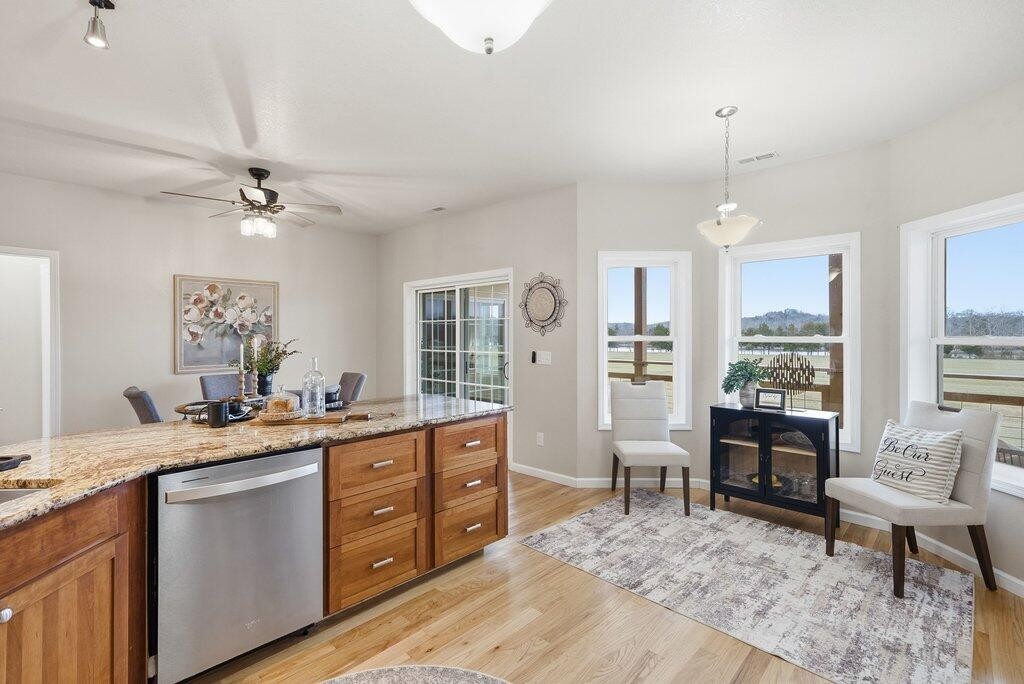 This lovely home features three bedrooms, three full baths, and a flexible bonus room that works well as a home office, media room, or additional guest space. The kitchen is thoughtfully designed with custom cabinetry, granite countertops, and stainless-steel appliances, opening seamlessly to the main living areas — perfect for entertaining and everyday living.