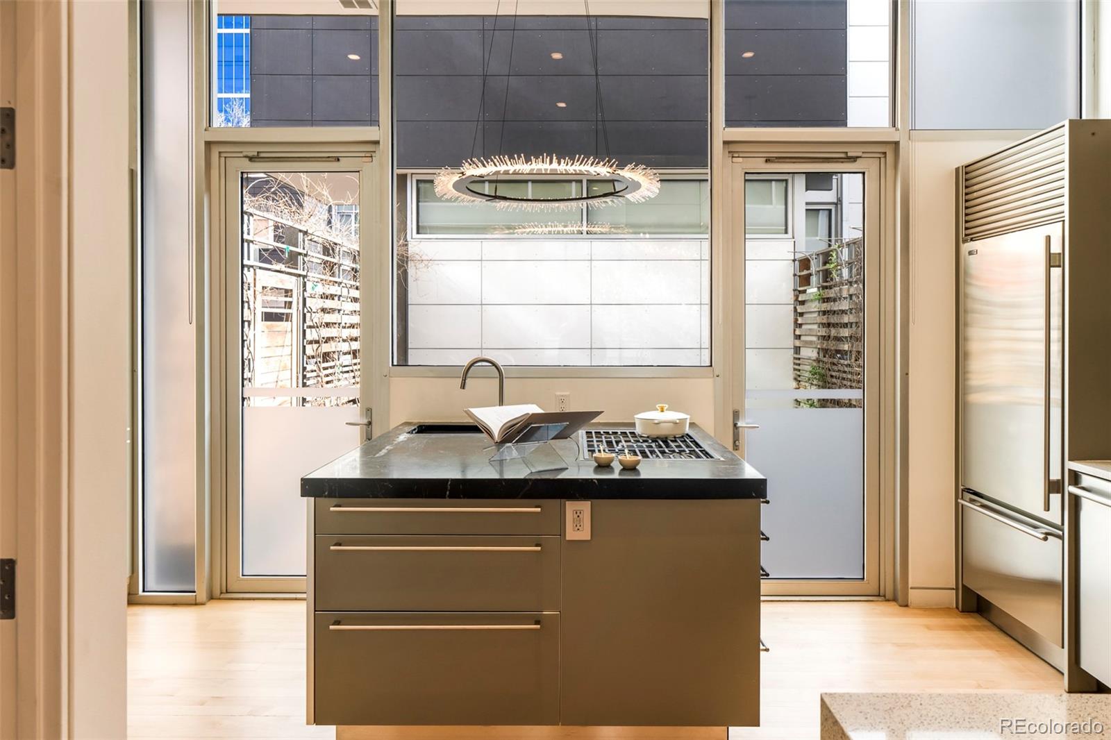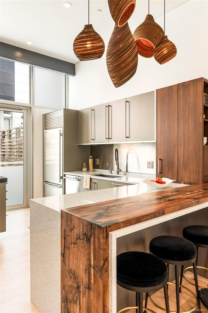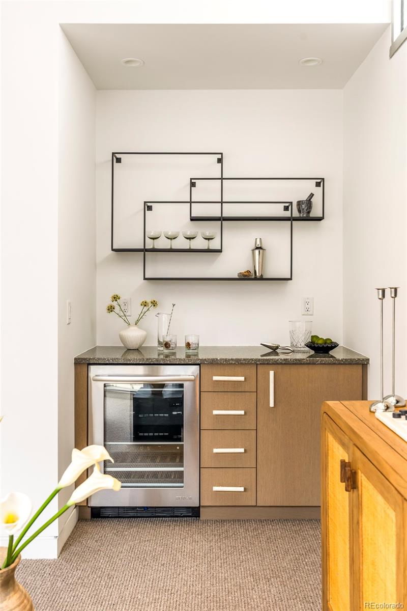 Set within the intimate 13-unit Art House Lofts community in Denver's Riverfront Park neighborhood, tucked directly behind the Museum of Contemporary Art, this 3-bedroom, 3.5-bathroom townhouse spans 3,288 square feet across four levels. The 2018 designer renovation was featured in Colorado Homes & Lifestyles, and the details make it clear why. The kitchen is anchored by bespoke Bulthaup cabinetry, a custom walnut waterfall butcher block island, Wolf gas cooktop, Miele speed oven, Thermador refrigerator, dual beverage fridges, and Blanco sinks in anthracite. Two doors open to a private fenced patio with a gas firepit and curated plantings. The entire top floor was reconceived as an owner's retreat: in-room bar, private atrium, Victoria & Albert soaking tub, dual vanity, Brizo fixtures, and a palatial custom dressing room full of built-in closet space. The second floor hosts a second primary suite with fireplace, spacious bath complete with wet shower and walk-in closet, and a third bedroom with designer wallpaper and an attached 3/4 bath. The lower level offers a large flex room perfect for a fitness room or additional living space. Direct garage access from the lower level out to two dedicated garage spaces and a third private and secure space for a car or additional storage with no elevator required. Every detail was considered: leather-wrapped stair railings, designer wallpaper, designer light fixtures in nearly every room, hardwood floors, wool carpeting, whole-home speaker wiring, and a dumbwaiter servicing all four levels for maximum ease of living. Developed by Continuum Partners and designed by Studio Completiva, completed in 2006 as one of Riverfront Park's most architecturally distinctive addresses. The HOA is comprehensive and includes water, sewer, gas, grounds maintenance, 2 professional window cleanings annually, and on-call Riverfront Park security. For the buyer who knows exactly what they’re looking for, and refuses to settle for ordinary!