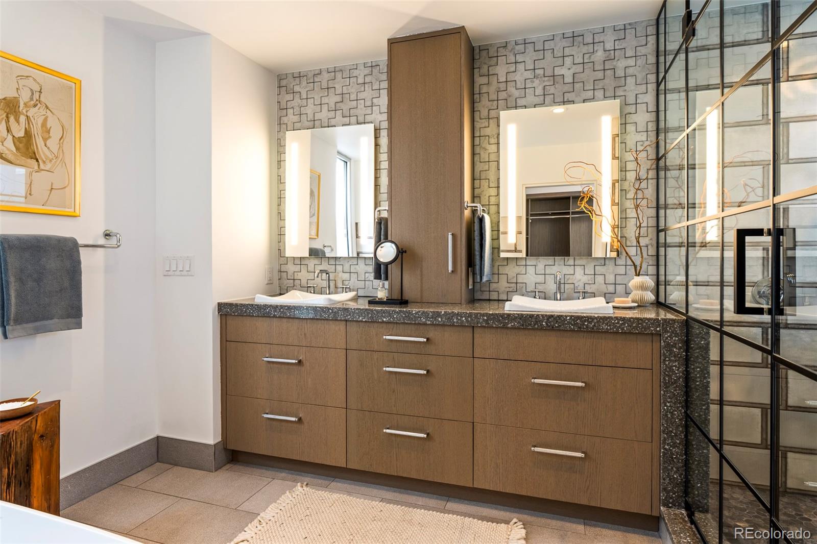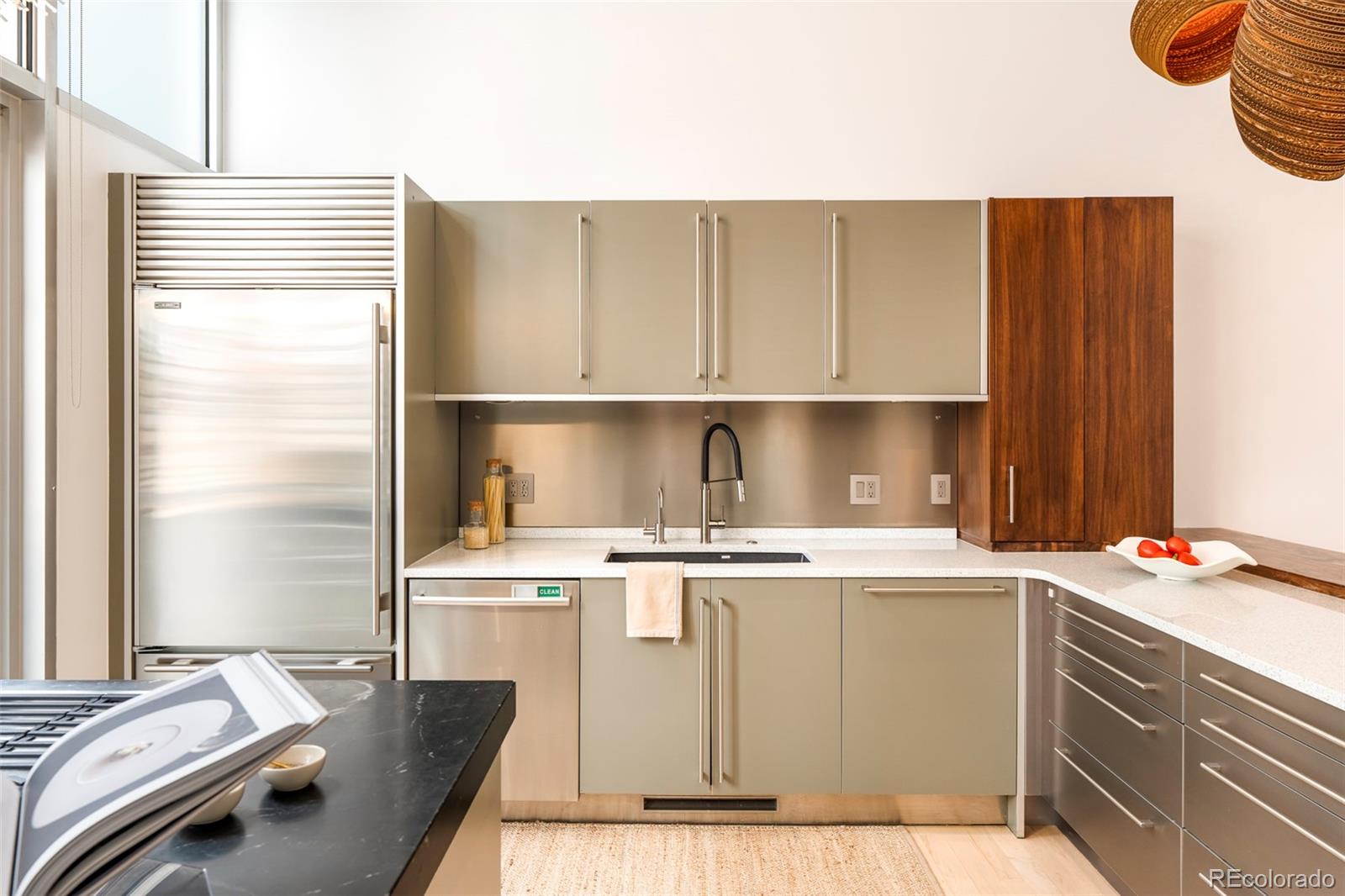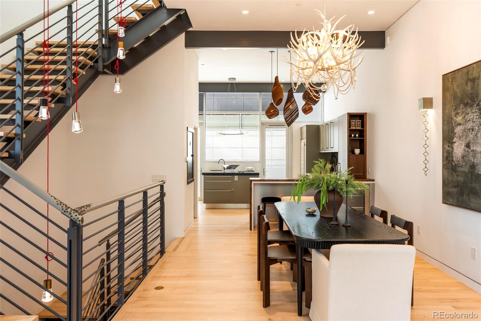 Set within the intimate 13-unit Art House Lofts community in Denver's Riverfront Park neighborhood, tucked directly behind the Museum of Contemporary Art, this 3-bedroom, 3.5-bathroom townhouse spans 3,288 square feet across four levels. The 2018 designer renovation was featured in Colorado Homes & Lifestyles, and the details make it clear why. The kitchen is anchored by bespoke Bulthaup cabinetry, a custom walnut waterfall butcher block island, Wolf gas cooktop, Miele speed oven, Thermador refrigerator, dual beverage fridges, and Blanco sinks in anthracite. Two doors open to a private fenced patio with a gas firepit and curated plantings. The entire top floor was reconceived as an owner's retreat: in-room bar, private atrium, Victoria & Albert soaking tub, dual vanity, Brizo fixtures, and a palatial custom dressing room full of built-in closet space. The second floor hosts a second primary suite with fireplace, spacious bath complete with wet shower and walk-in closet, and a third bedroom with designer wallpaper and an attached 3/4 bath. The lower level offers a large flex room perfect for a fitness room or additional living space. Direct garage access from the lower level out to two dedicated garage spaces and a third private and secure space for a car or additional storage with no elevator required. Every detail was considered: leather-wrapped stair railings, designer wallpaper, designer light fixtures in nearly every room, hardwood floors, wool carpeting, whole-home speaker wiring, and a dumbwaiter servicing all four levels for maximum ease of living. Developed by Continuum Partners and designed by Studio Completiva, completed in 2006 as one of Riverfront Park's most architecturally distinctive addresses. The HOA is comprehensive and includes water, sewer, gas, grounds maintenance, 2 professional window cleanings annually, and on-call Riverfront Park security. For the buyer who knows exactly what they’re looking for, and refuses to settle for ordinary!