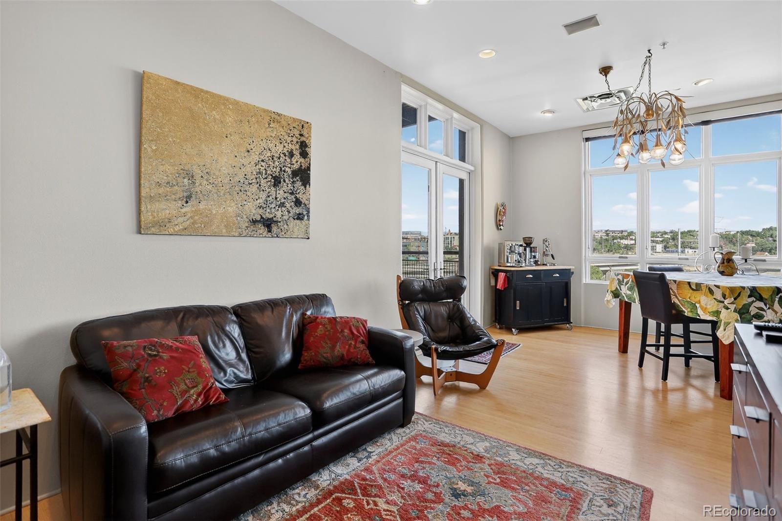 $10,000 SELLER CONCESSION being offer for loan buydown or other options. Welcome to one of Denver’s most coveted residences in the Flour Mill Lofts, a nationally recognized project developed by preservationist and visionary Dana Crawford—the force behind Union Station, Larimer Square, and much of Denver’s historic revival. This northwest-facing 5th floor loft offers unobstructed views of the Rocky Mountains and Cuernavaca Park, creating a truly rare and peaceful retreat in the heart of the city. With over 1,400 square feet of light-filled living space, soaring ceilings, and floor-to-ceiling windows, this home blends contemporary elegance with architectural integrity. Inside, you'll find a gourmet kitchen outfitted with high-end stainless steel appliances, custom cabinetry, granite counters, and a generous eat-in island—perfect for casual mornings or entertaining guests. The open-concept layout flows seamlessly into the expansive living area, complete with a gas fireplace and private balcony for enjoying Colorado’s epic sunsets. The primary suite functions as a true sanctuary, featuring an en-suite bath, ample closet space, and an attached flex area ideal for a home office or guest lounge. The second bedroom is non-conforming but offers exceptional versatility for a creative studio, library, or overnight visitors. Additional features include two assigned parking spaces, a storage unit, in-unit laundry, and smart upgrades like a Nest thermostat. Located in the heart of LoDo (Lower Downtown Denver), this boutique building offers direct access to the Platte River trail system, Cuernavaca Park, and Denver’s top destinations—just a short stroll to Union Station, Coors Field, Riverfront Park, and the Lower Highlands (LoHi). Rarely do homes like this become available in one of Denver’s most historic and architecturally significant buildings. If you’re looking for a one-of-a-kind loft that offers design, location, and legacy, this is the one to see.