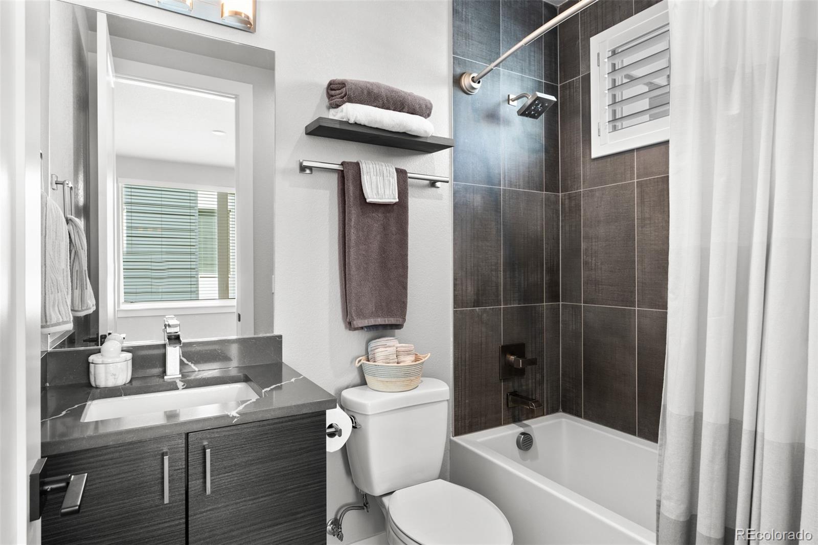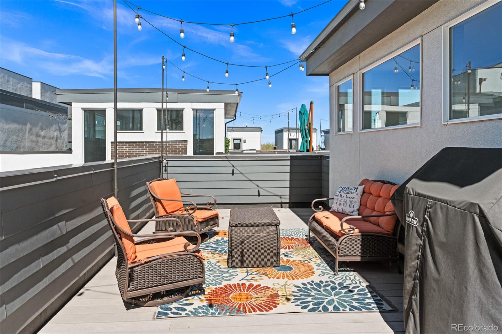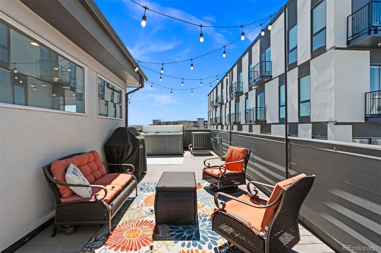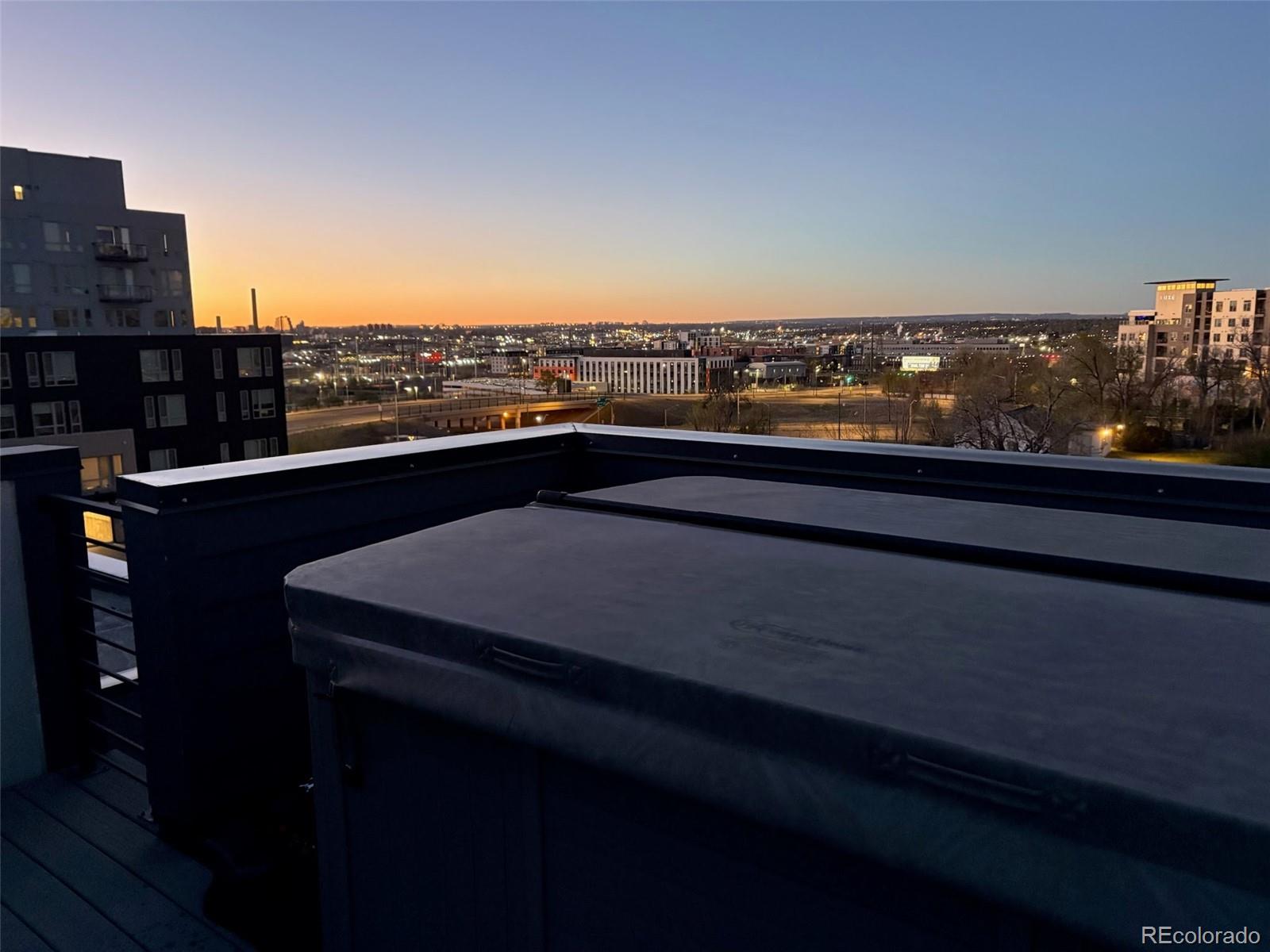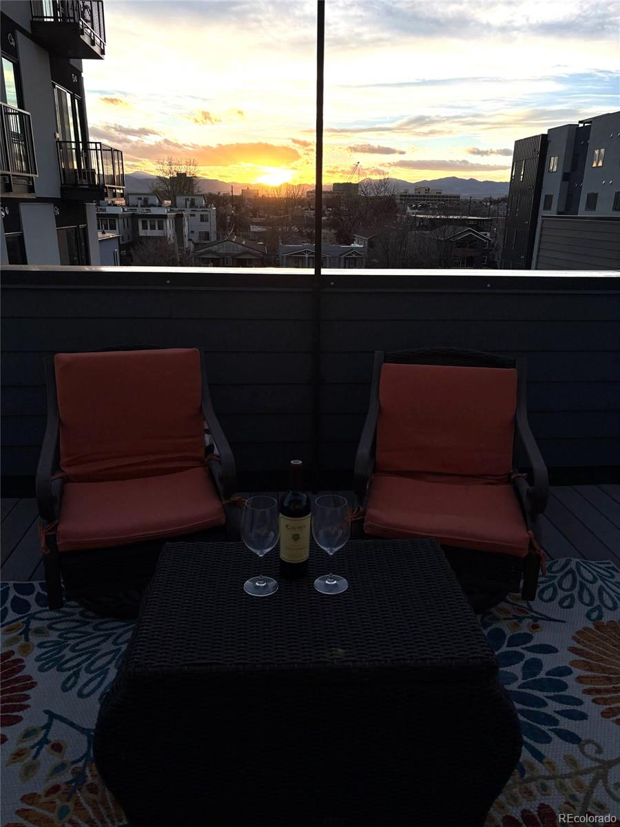 MUST SEE TO BELIEVE! From its rooftop deck with sweeping mountain and city views to its gorgeous interior, this Sloan's Lake townhome is absolutely exceptional and ready for its next owner! Step inside to a ground-level foyer with a powder room and direct access to the attached 2-car garage. Upstairs, the main living level is open and well-proportioned with high ceilings, hardwood floors, 8 ft. doors, and a large south-facing window that fills the space with natural light. The kitchen features quartz countertops, stainless steel appliances, soft-close drawers, and opens to the dining and living areas. A 2nd powder room is also located on this level. The upper level features 2 private bedroom suites: the primary bedroom includes a custom walk-in closet and en suite bathroom, and the 2nd bedroom also has its own full en suite bathroom. Laundry is conveniently located on the bedroom level (washer/dryer included). The rooftop deck is incredible--originally noted as having “the best views in the complex"--with mountain views to the west, uninterrupted views extending south across Denver, long sightlines, the ability to view sunrises and sunsets, and a sense of openness that is rare in this location. It features outdoor furniture (included), string lighting, a gas hookup for a grill, and is home to a high end custom Wind River hot tub (negotiable). Recent upgrades include a fully replaced central A/C system with a whole-house humidifier (2025), a smart thermostat, an Insinkerator instant hot faucet (2024), a MyQ garage door opener, Nest doorbell, WiFi extender, and a 240V dedicated circuit with 50A breaker for EV charging. Unlike most homes in the community, this unit also offers rare space for a 3rd guest vehicle to park in front of the garage. Excellent insulation and privacy from neighbors! Fantastic location between Sloan's Lake and Empower Field with easy access to downtown Denver, I-25, great restaurants/shops, and the light rail! Buyer to verify all information.