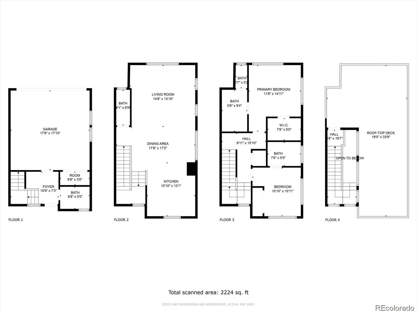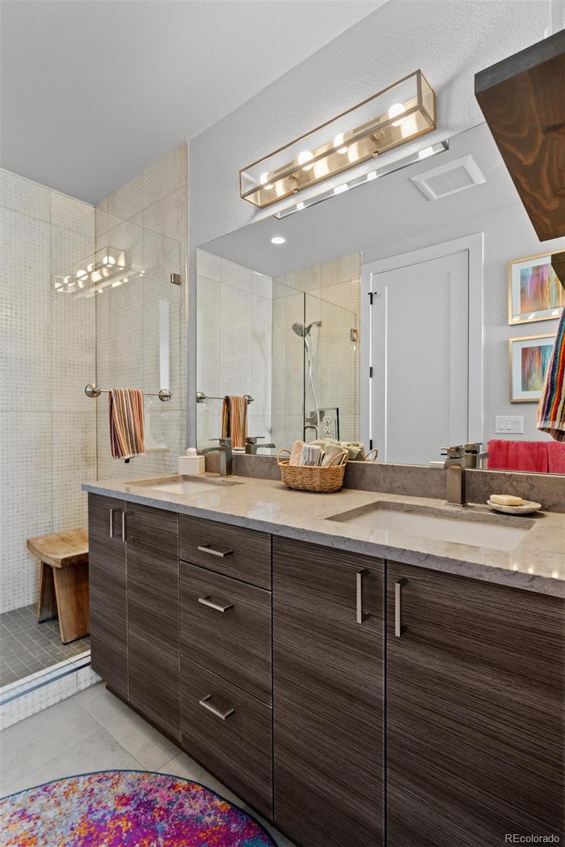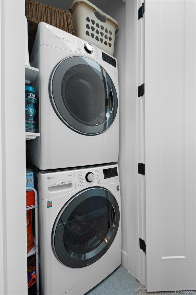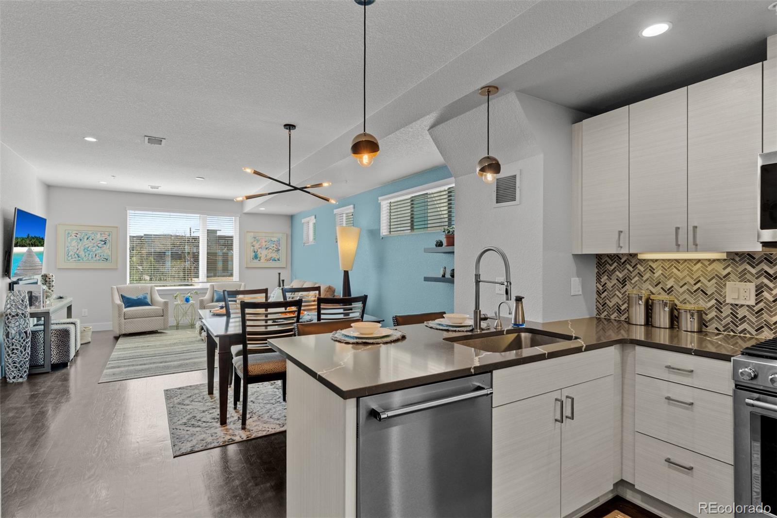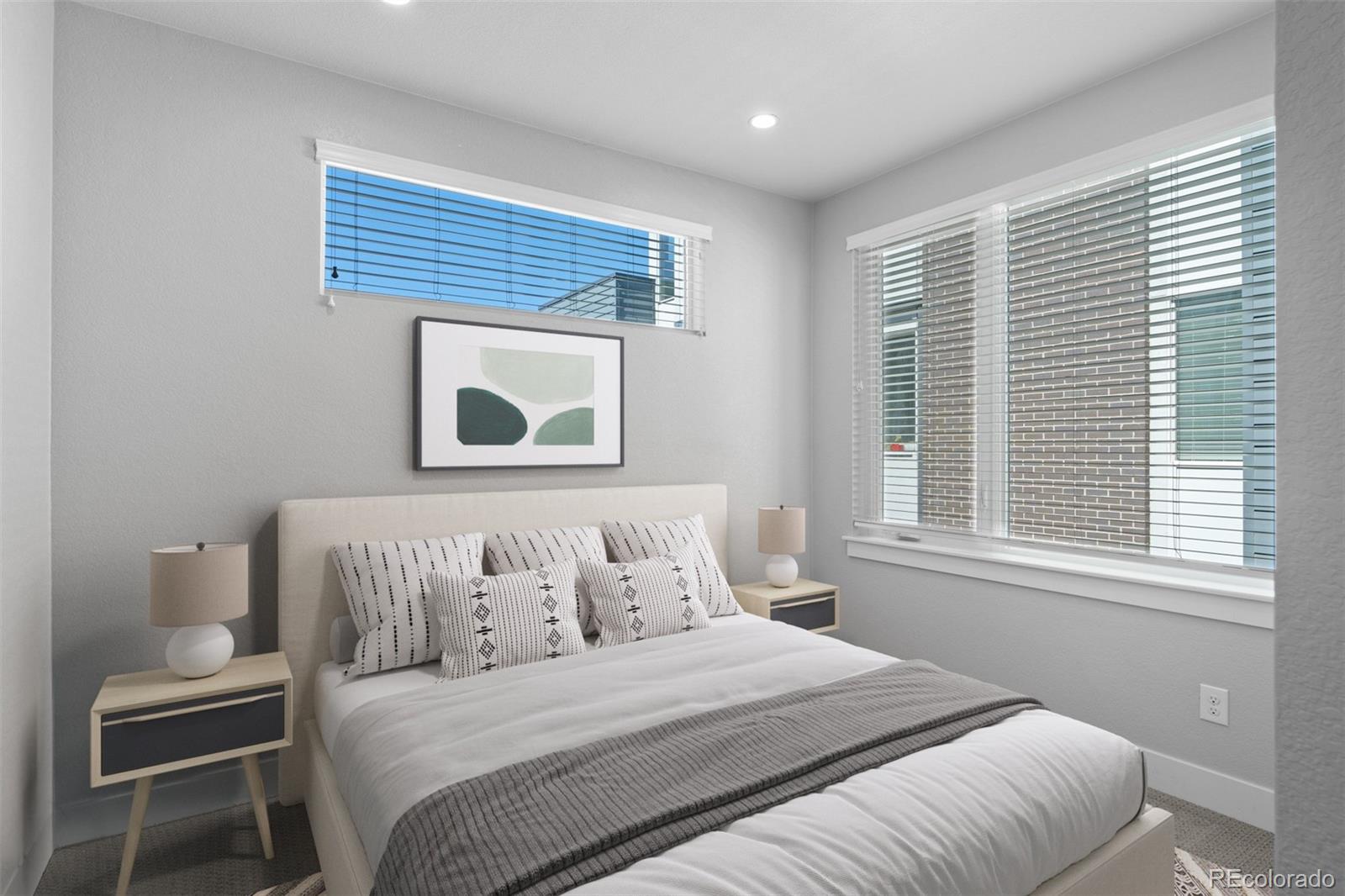MUST SEE TO BELIEVE! From its rooftop deck with sweeping mountain and city views to its gorgeous interior, this Sloan's Lake townhome is absolutely exceptional and ready for its next owner! Step inside to a ground-level foyer with a powder room and direct access to the attached 2-car garage. Upstairs, the main living level is open and well-proportioned with high ceilings, hardwood floors, 8 ft. doors, and a large south-facing window that fills the space with natural light. The kitchen features quartz countertops, stainless steel appliances, soft-close drawers, and opens to the dining and living areas. A 2nd powder room is also located on this level. The upper level features 2 private bedroom suites: the primary bedroom includes a custom walk-in closet and en suite bathroom, and the 2nd bedroom also has its own full en suite bathroom. Laundry is conveniently located on the bedroom level (washer/dryer included). The rooftop deck is incredible--originally noted as having “the best views in the complex"--with mountain views to the west, uninterrupted views extending south across Denver, long sightlines, the ability to view sunrises and sunsets, and a sense of openness that is rare in this location. It features outdoor furniture (included), string lighting, a gas hookup for a grill, and is home to a high end custom Wind River hot tub (negotiable). Recent upgrades include a fully replaced central A/C system with a whole-house humidifier (2025), a smart thermostat, an Insinkerator instant hot faucet (2024), a MyQ garage door opener, Nest doorbell, WiFi extender, and a 240V dedicated circuit with 50A breaker for EV charging. Unlike most homes in the community, this unit also offers rare space for a 3rd guest vehicle to park in front of the garage. Excellent insulation and privacy from neighbors! Fantastic location between Sloan's Lake and Empower Field with easy access to downtown Denver, I-25, great restaurants/shops, and the light rail! Buyer to verify all information.