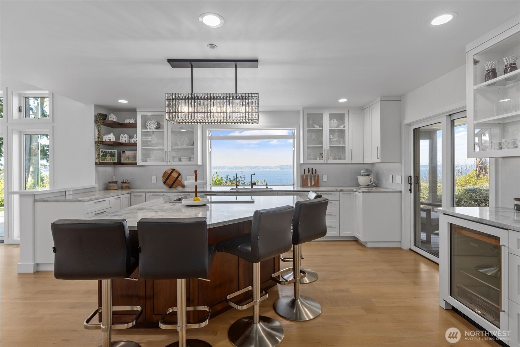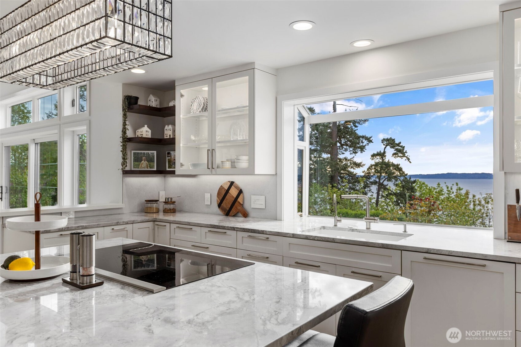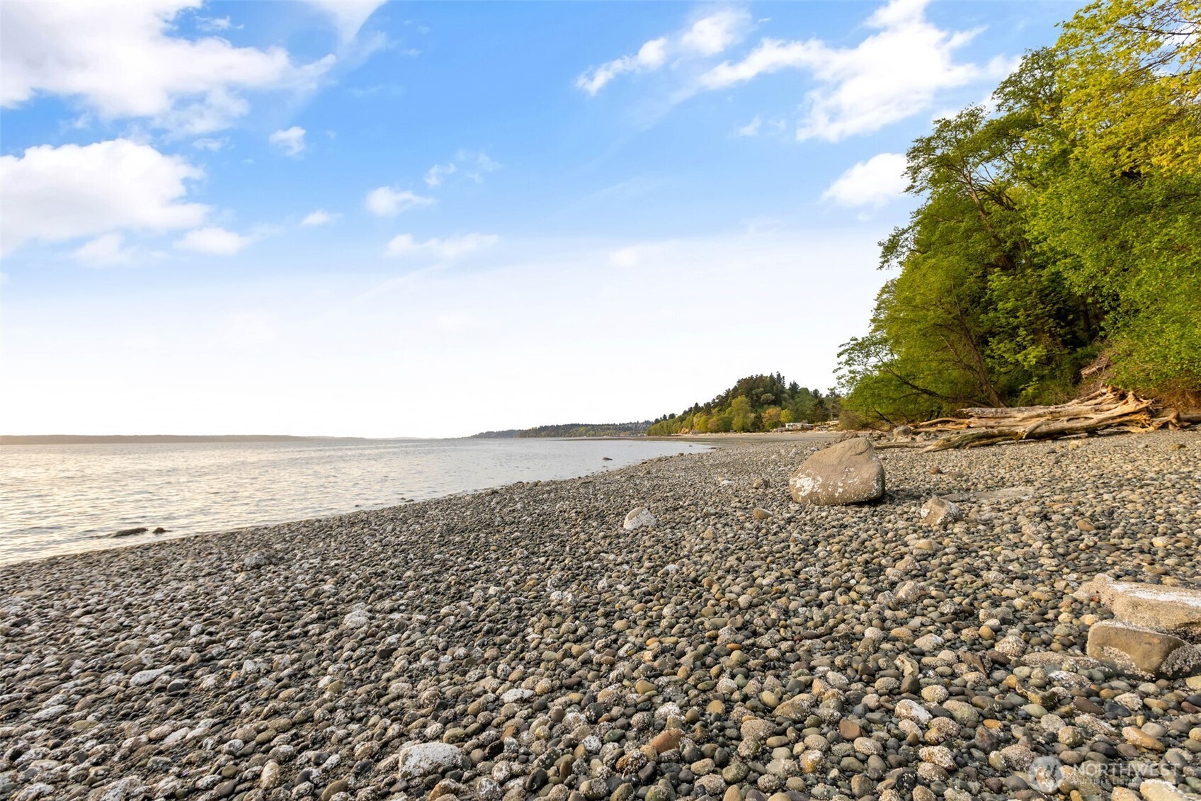 Waterfront with over $400K in improvements, this home offers unrivaled views that stretch across Puget Sound, framing the majesty of the Olympics & Maury Island. Upon entering, you will be greeted by soaring ceilings and white oak floors that flow seamlessly throughout the open concept home. The first floor offers a junior suite with views and its own private entrance. The chef’s kitchen is a focal point, with custom cabinetry, oversized island, quartzite countertops, and top-tier appliances. The primary suite features a modern spa-like bath and a custom walk-in closet. All just a short walk to your own private beach! Whether you want to take a kayak, walk to Saltwater Park, or play tennis at the North Beach CC, this house has it all!