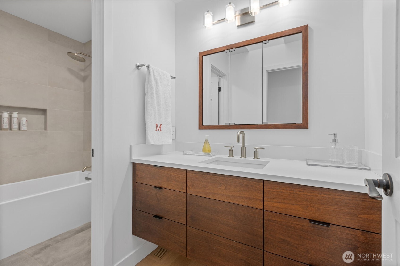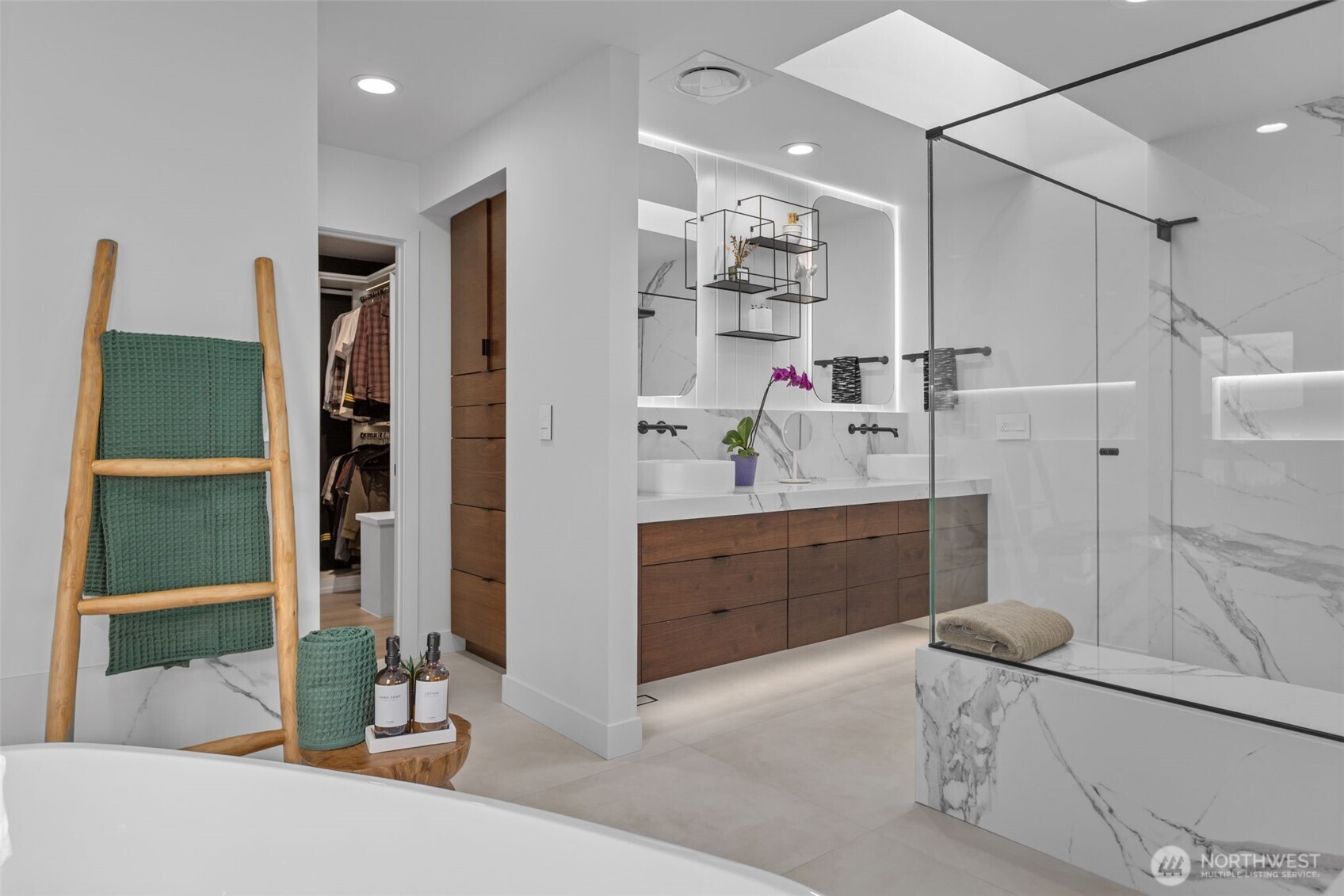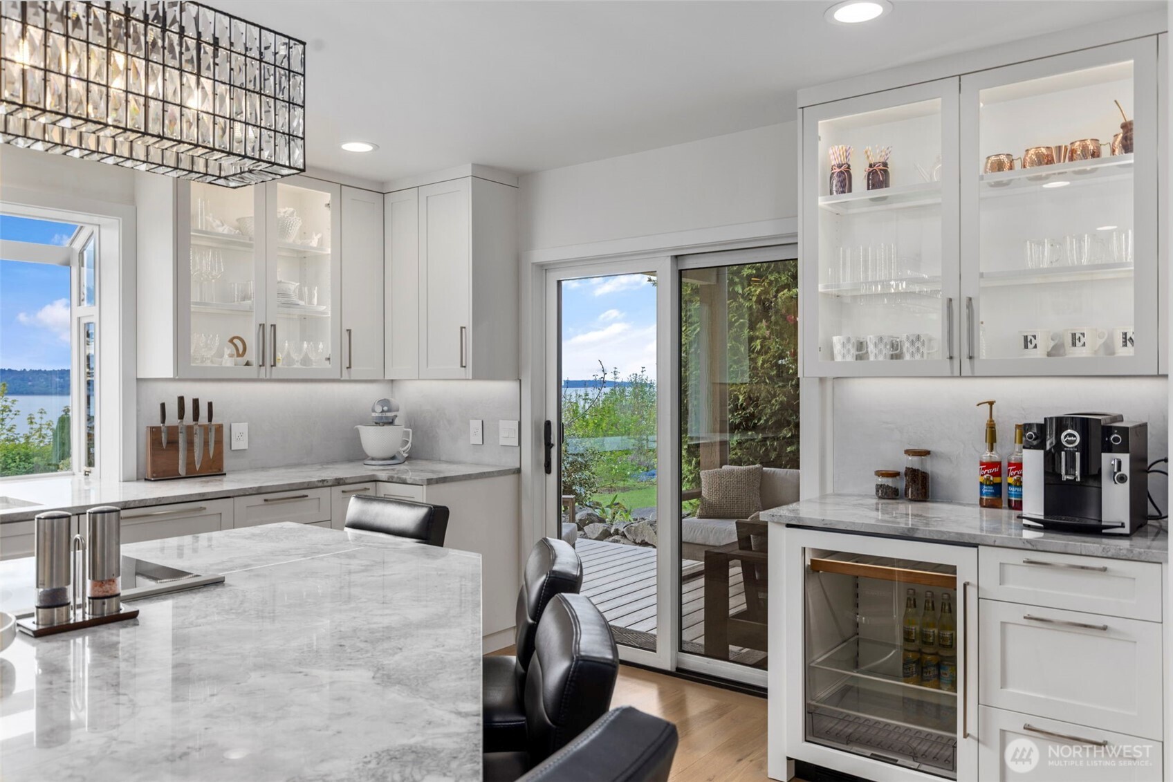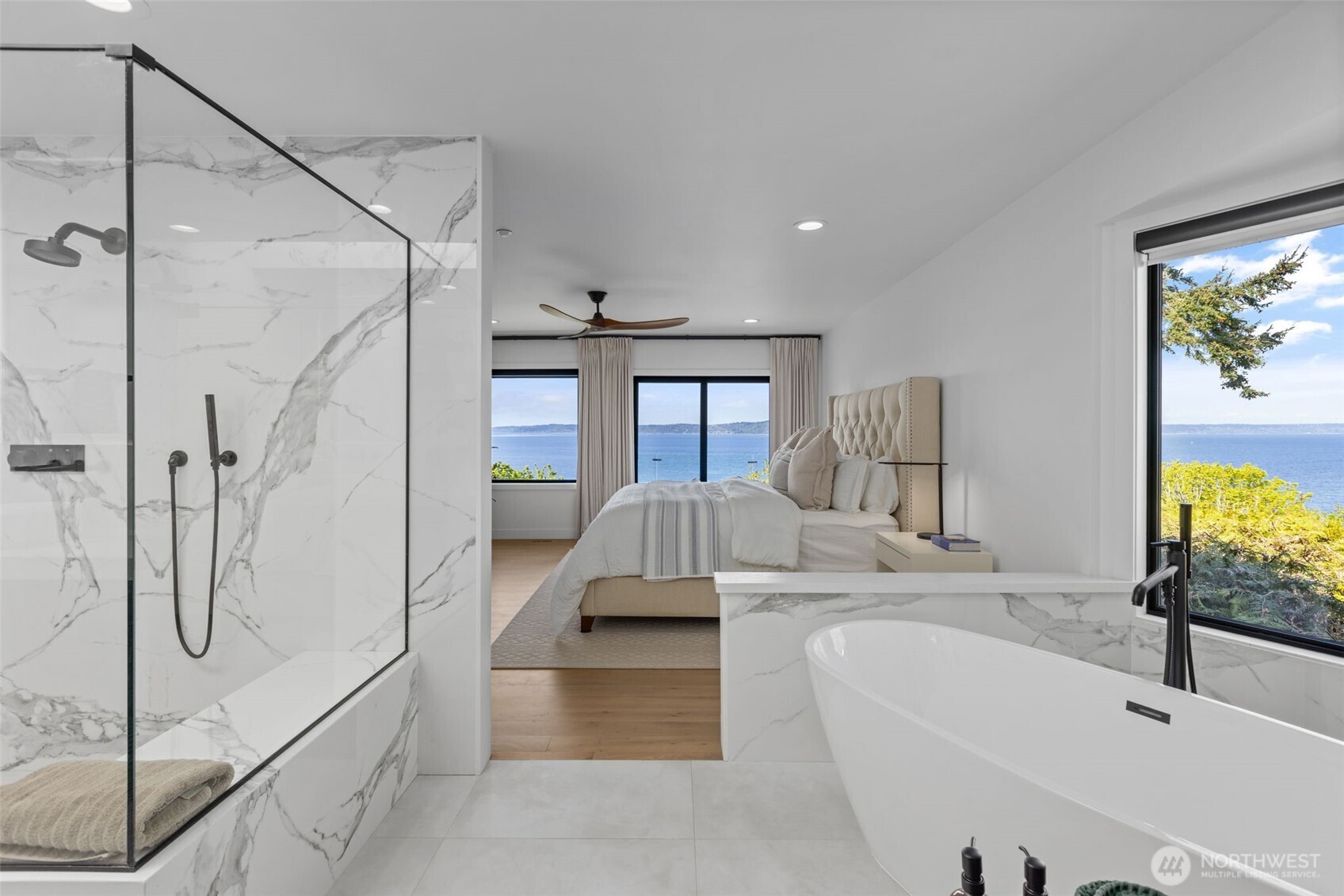 Waterfront with over $400K in improvements, this home offers unrivaled views that stretch across Puget Sound, framing the majesty of the Olympics & Maury Island. Upon entering, you will be greeted by soaring ceilings and white oak floors that flow seamlessly throughout the open concept home. The first floor offers a junior suite with views and its own private entrance. The chef’s kitchen is a focal point, with custom cabinetry, oversized island, quartzite countertops, and top-tier appliances. The primary suite features a modern spa-like bath and a custom walk-in closet. All just a short walk to your own private beach! Whether you want to take a kayak, walk to Saltwater Park, or play tennis at the North Beach CC, this house has it all!