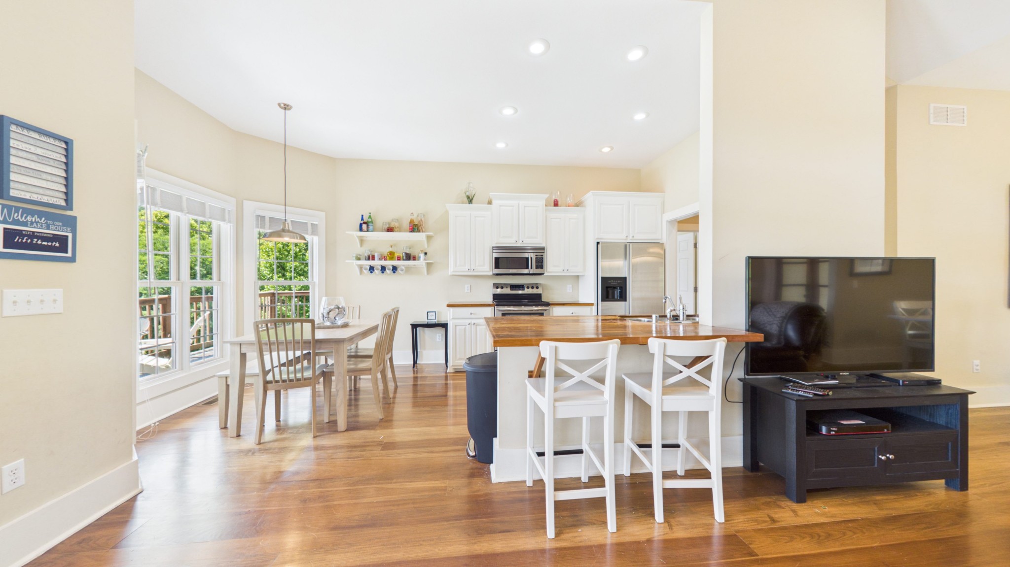 Welcome to 295 Kipling Circle S, an artisanal masterpiece nestled on the serene shores of Lake Barkley in Eddyville, KY. This exquisite waterfront property offers the perfect blend of luxury, comfort, and nature, making it an ideal retreat for home buyers and a lucrative opportunity for vacation rental investors. Crafted by the renowned John Logan, whose creations have graced the pages of Better Homes and Gardens and Coastal Living, this home is a testament to quality and design. Spanning 4.63 acres with ample parking for 6 vehicles, the estate boasts 5 bedrooms, 4 bathrooms, including a main level that features 4 bedrooms and 3 full baths alongside a grand great room. Every inch of the house reflects Logan's dedication to craftsmanship. From the poplar floors to the custom-made black walnut doors, this residence is a showcase of hand-crafted elegance. The bespoke countertops in the kitchen and baths, all fashioned in Logan's own mill shop, add a touch of bespoke luxury. The kitchen is a chef's dream, custom-designed with a lakeside breakfast nook that offers tranquil views with your morning coffee. The covered deck and patio provide the perfect spaces for entertaining or simply soaking in the panoramic views of Eddy Creek on Lake Barkley. Residents can also take advantage of the 2 slips in the covered community dock, making it easy to set sail on aquatic adventures or enjoy a peaceful day fishing on the water. Lots L5 & L-6 are dockable Per COE. With its unique blend of custom features, breathtaking views, and coveted location, 295 Kipling Circle S is more than just a homeit's a waterfront sanctuary waiting for you.