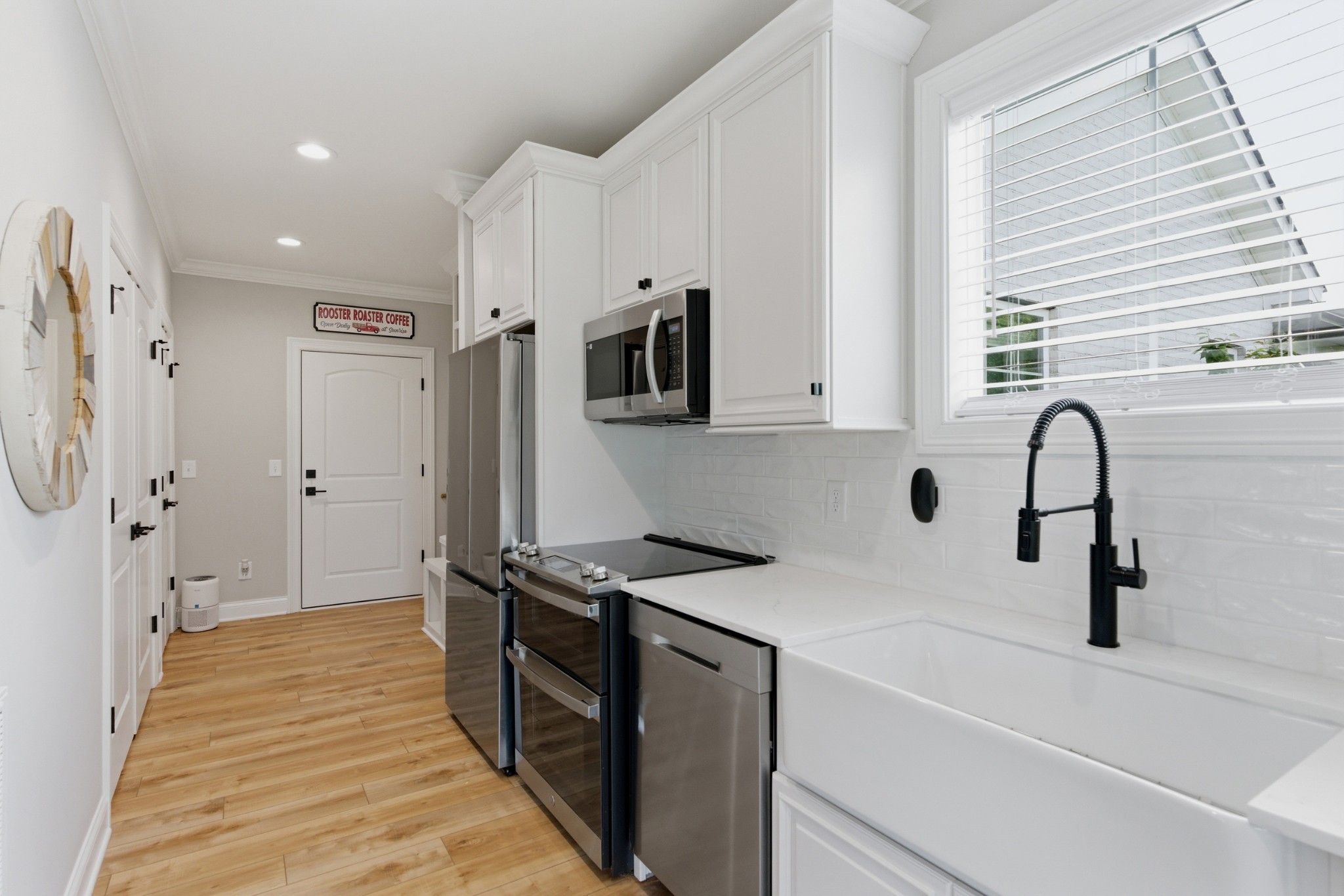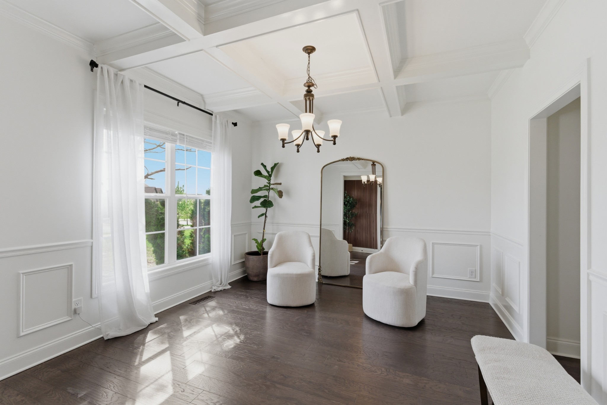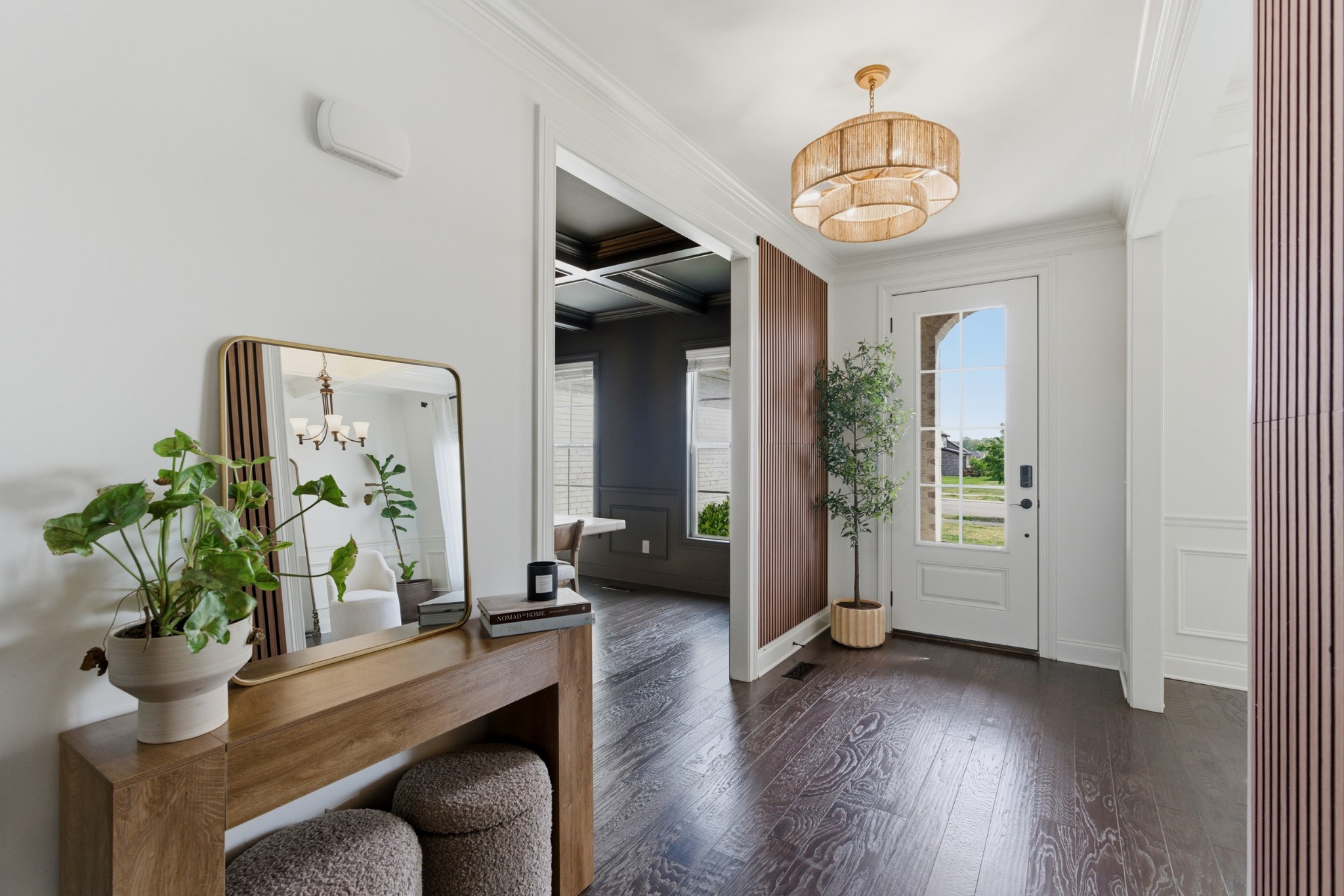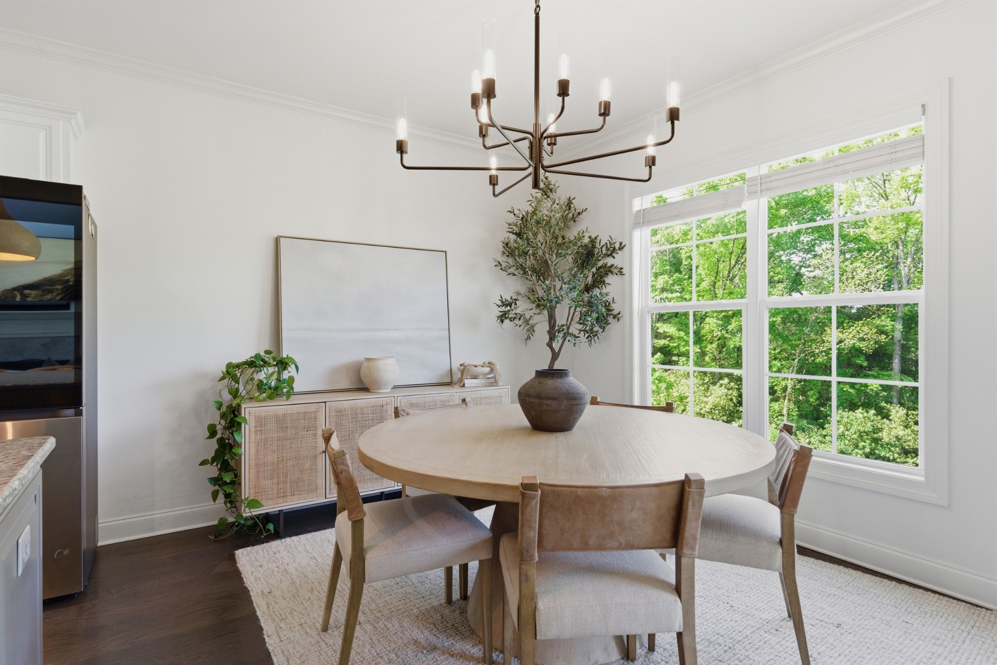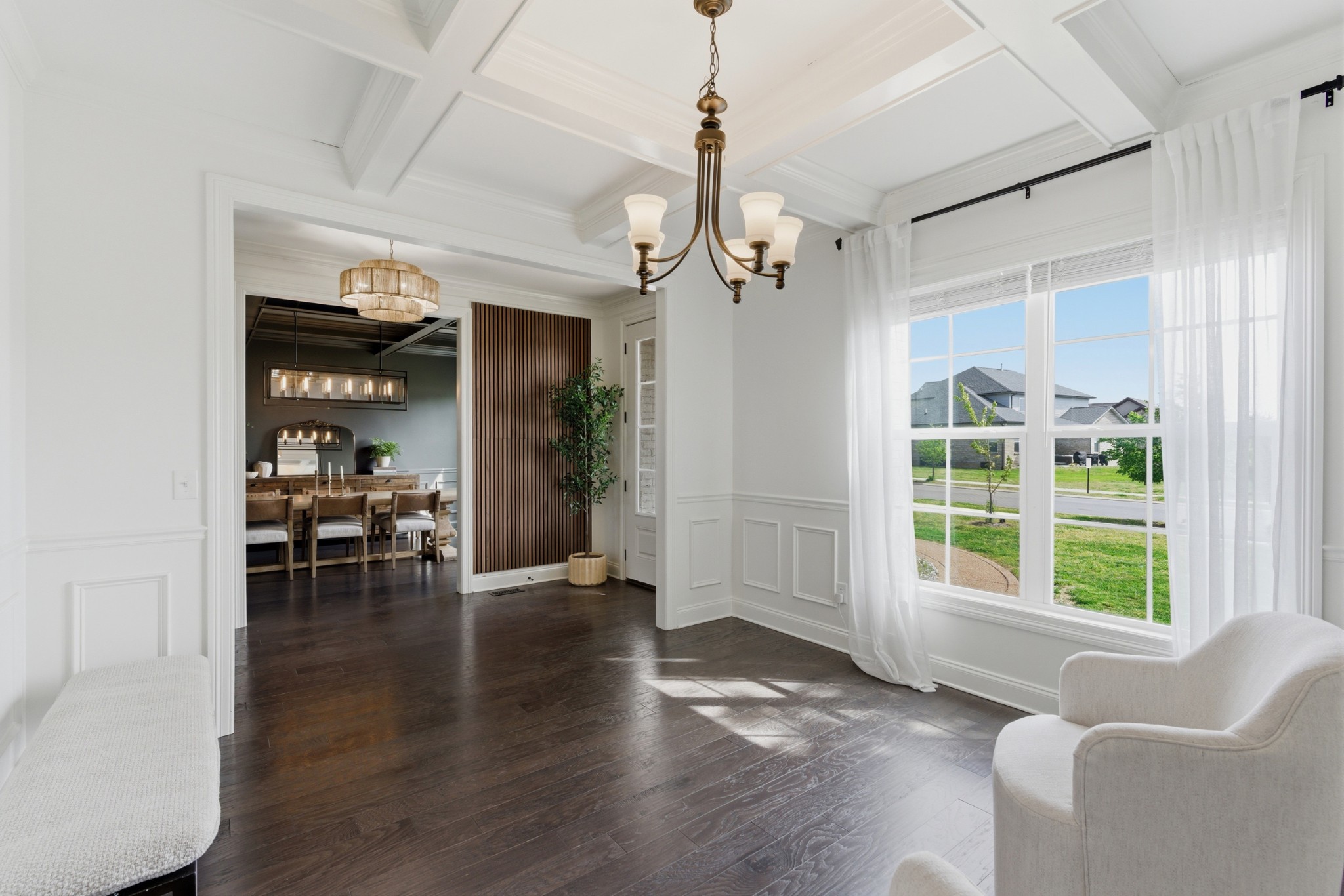 Inside, you’ll find exquisite custom woodwork, rich hardwood floors, and elegant finishes that create a warm yet refined atmosphere throughout. The chef-inspired kitchen is the heart of the home, featuring smart appliances, abundant cabinetry, and an expansive granite island perfect for gathering and entertaining. Multiple living and dining areas provide a flexible layout suited for both everyday living and hosting.